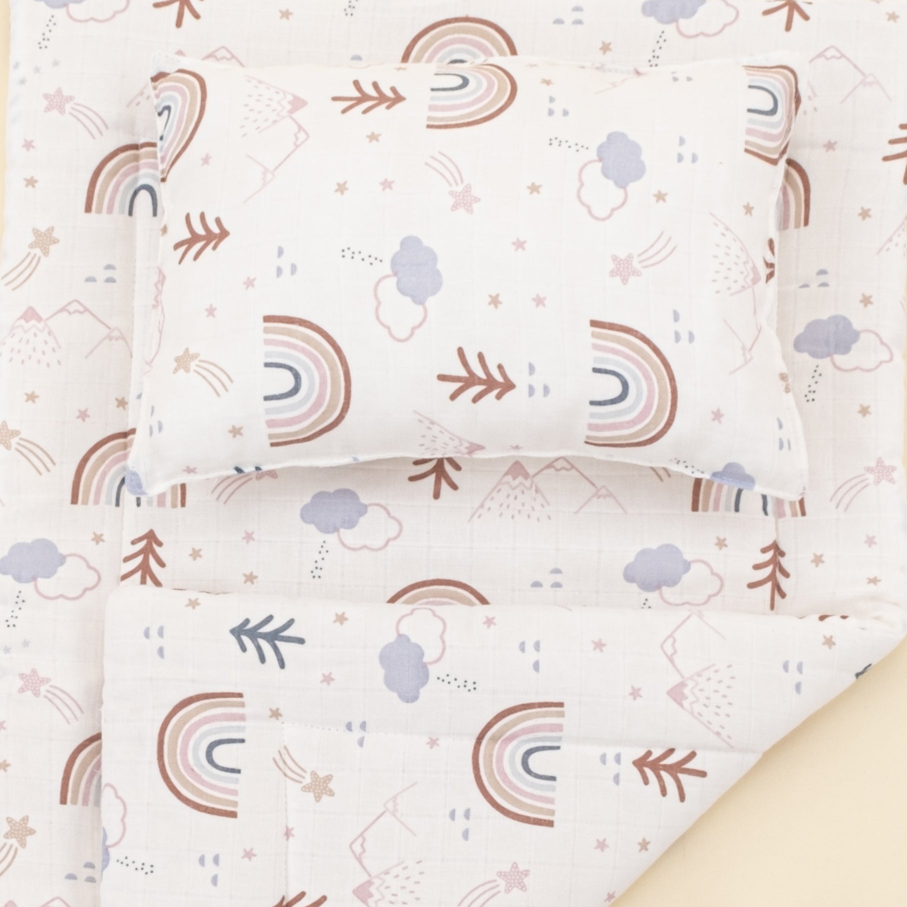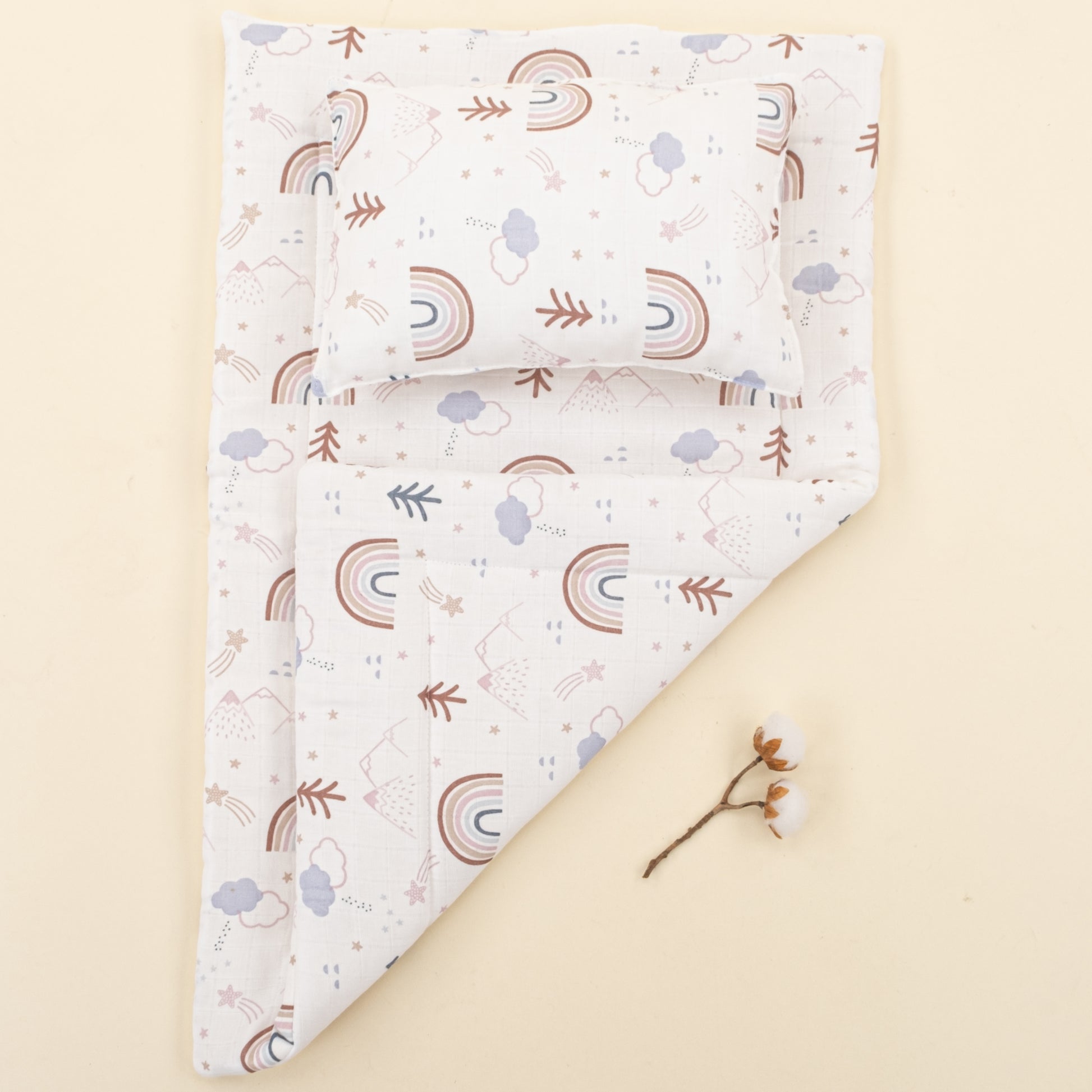 Alt Açma Matı ve Yastık - Çift Taraflı - Pastel Gökkuşağı