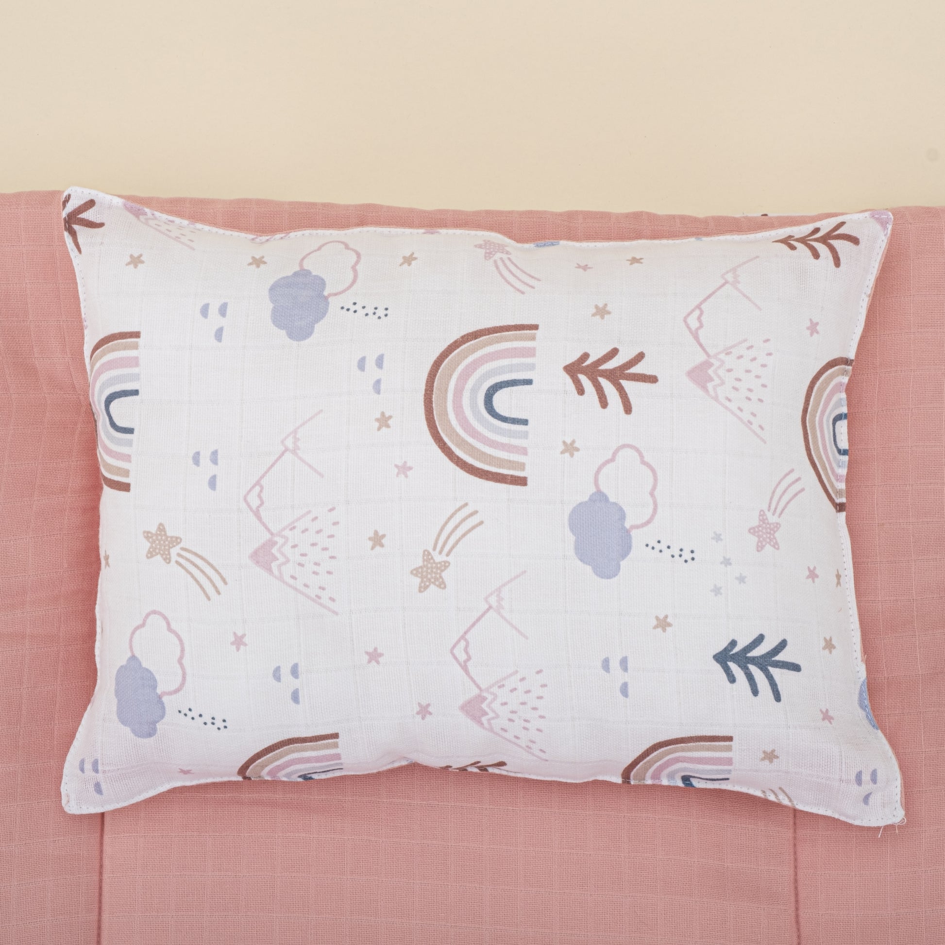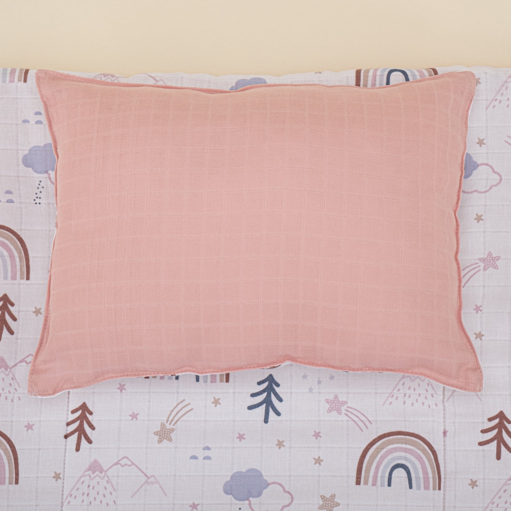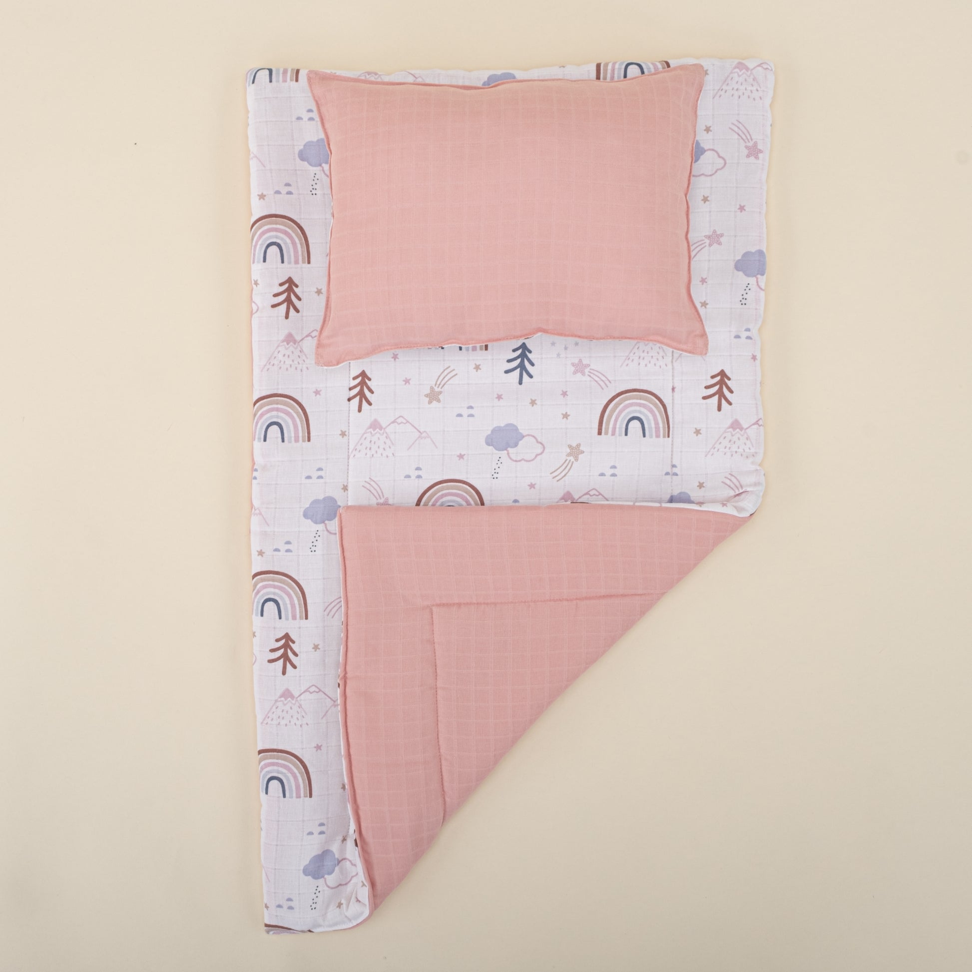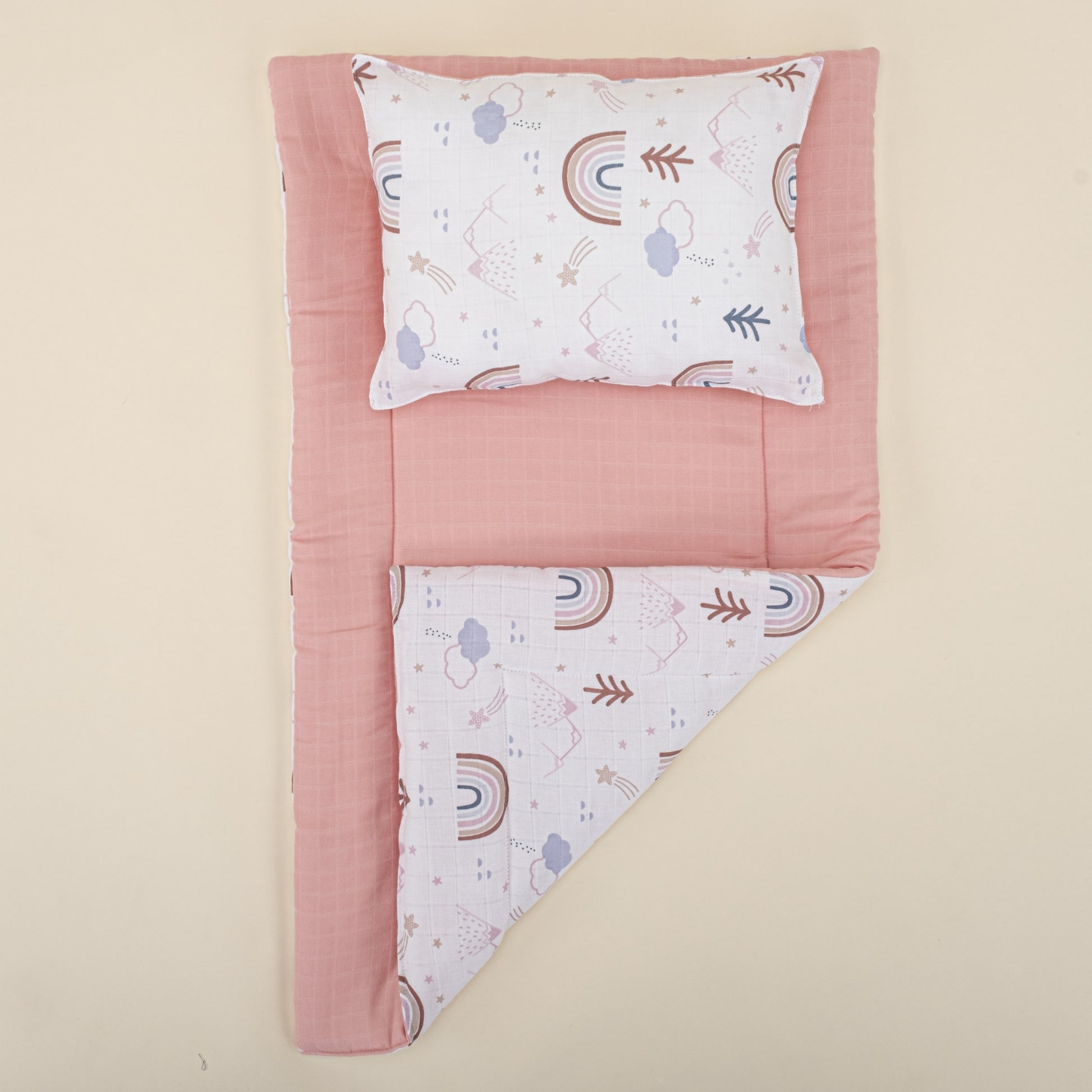 Alt Açma Matı ve Yastık - Çift Taraflı - Pudra Muslin - Pastel Gökkuşağı