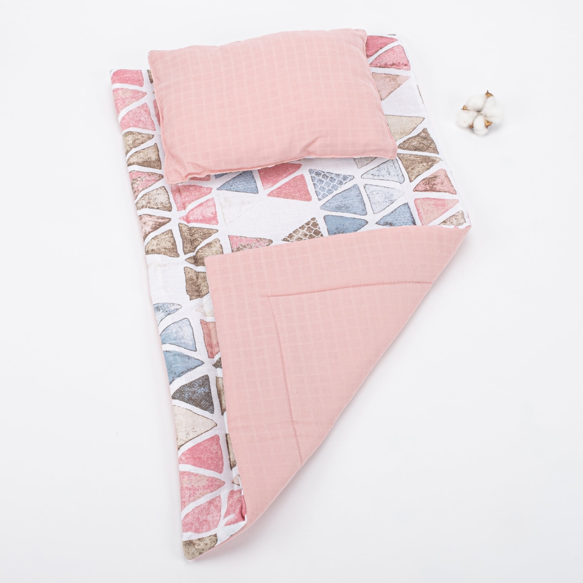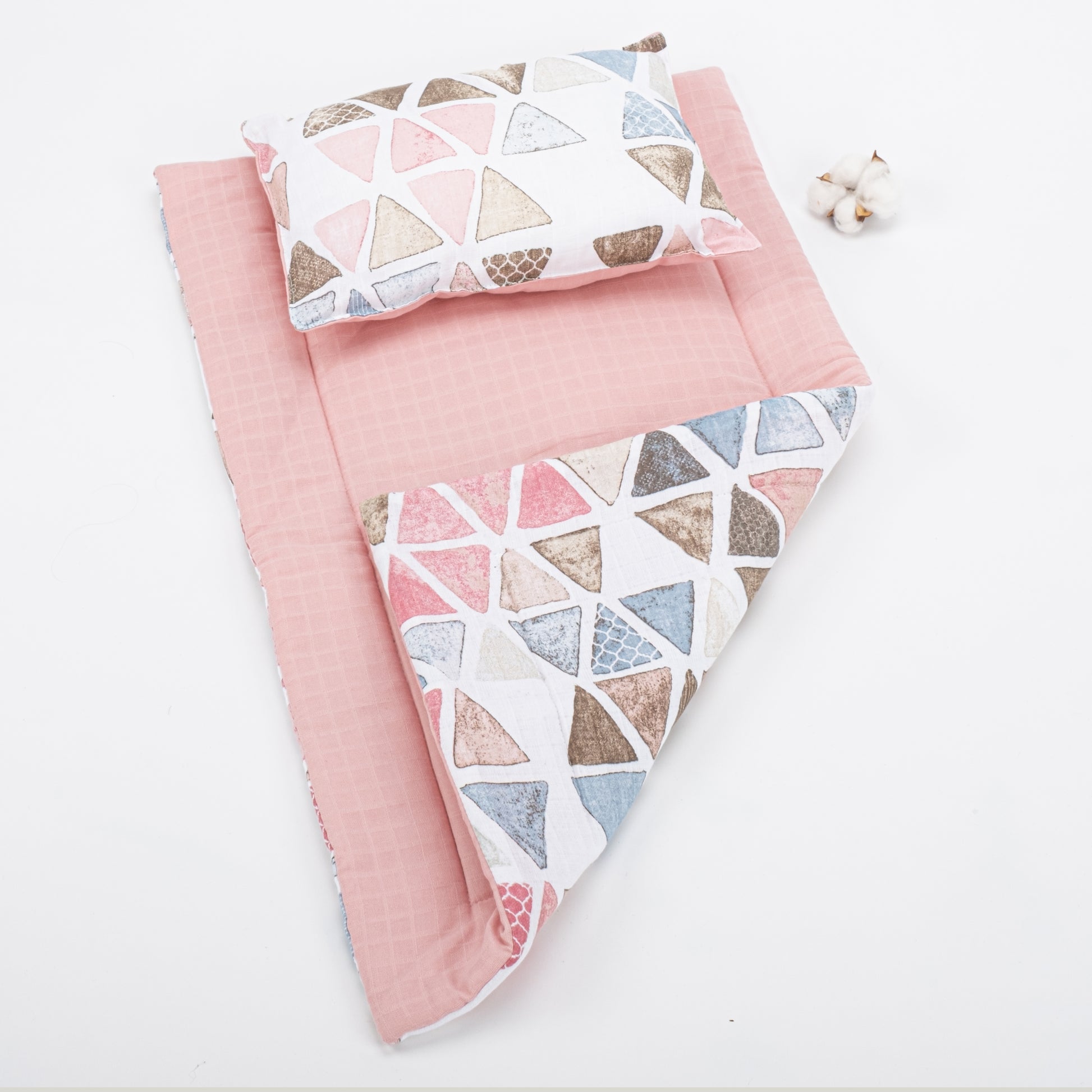 Alt Açma Matı ve Yastık - Çift Taraflı - Pudra Muslin - Retro