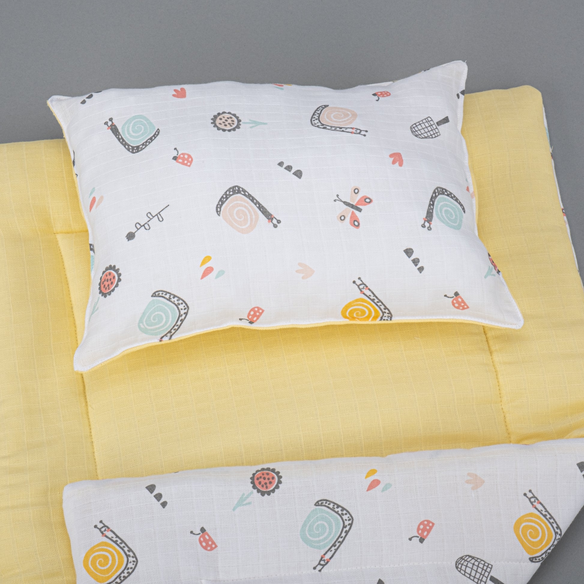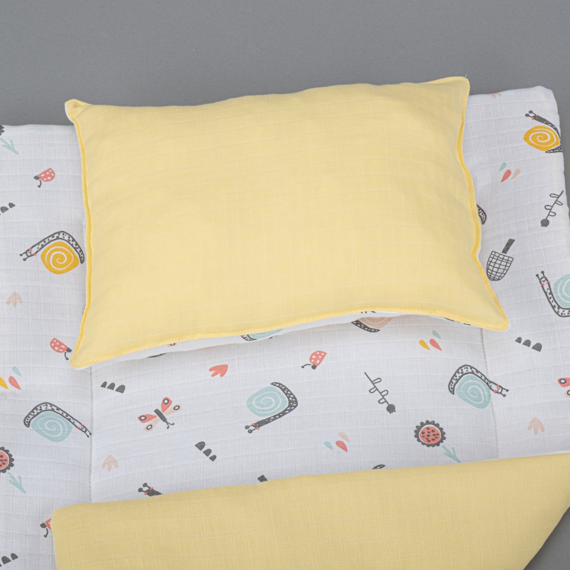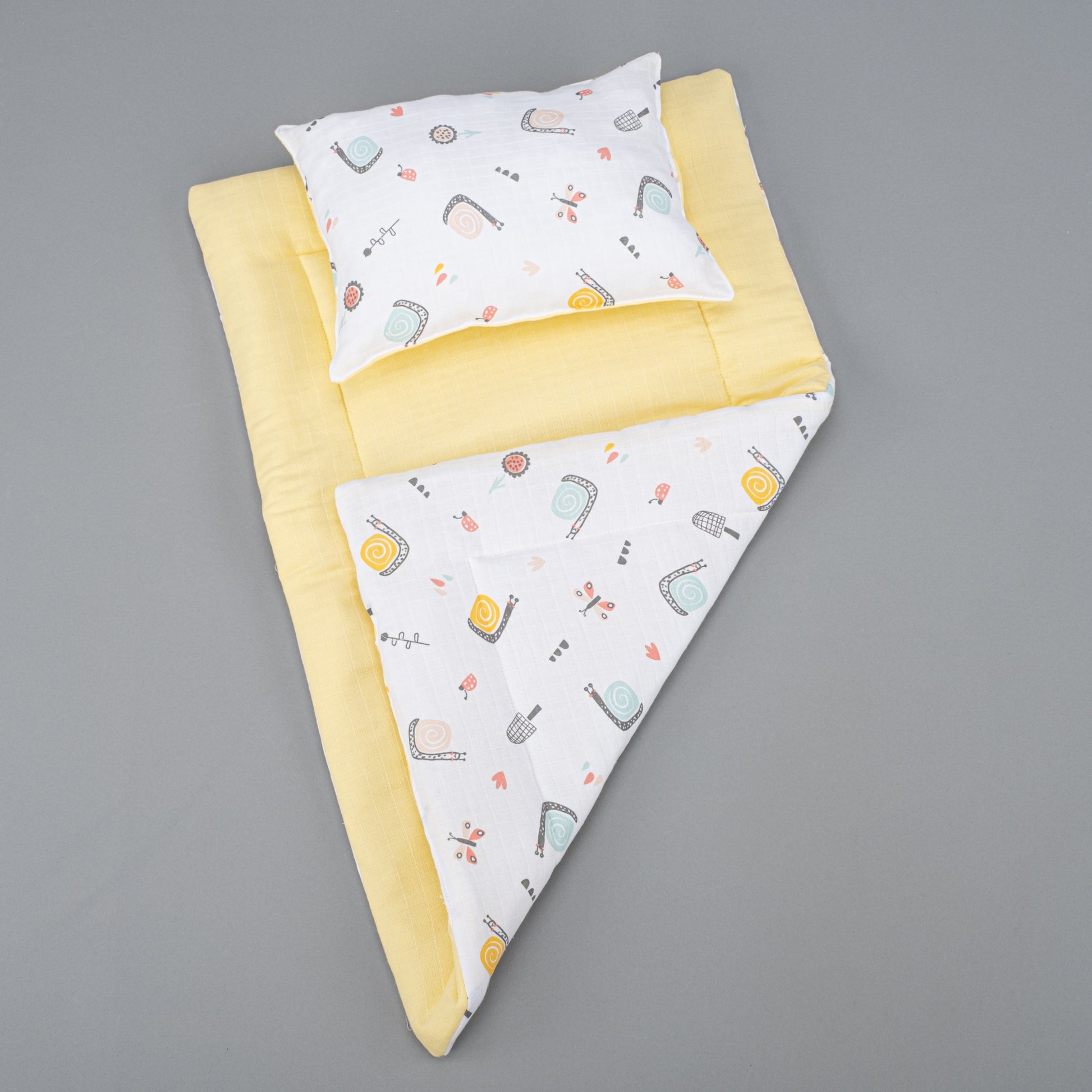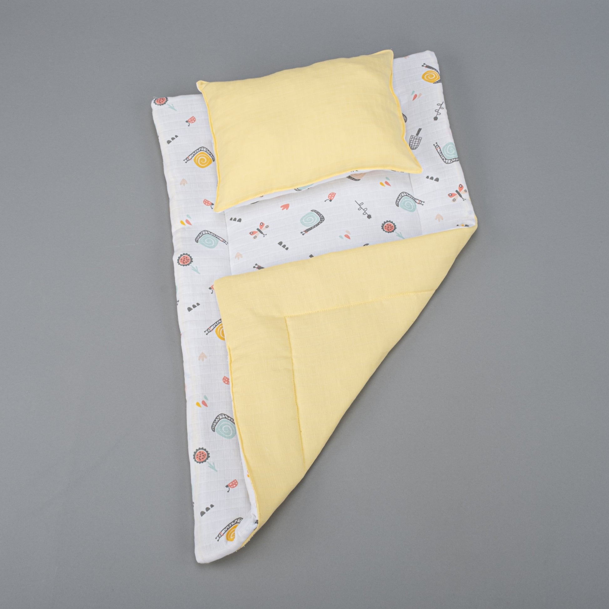 Alt Açma Matı ve Yastık - Çift Taraflı - Sarı Muslin - Salyangoz