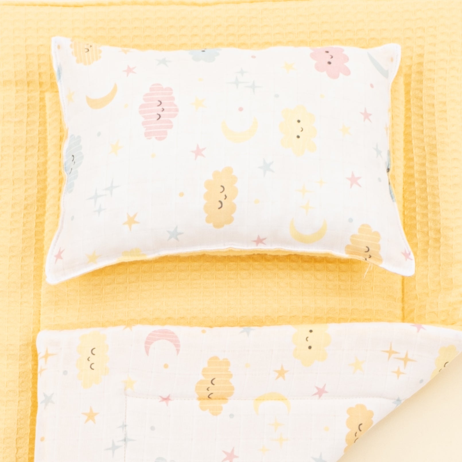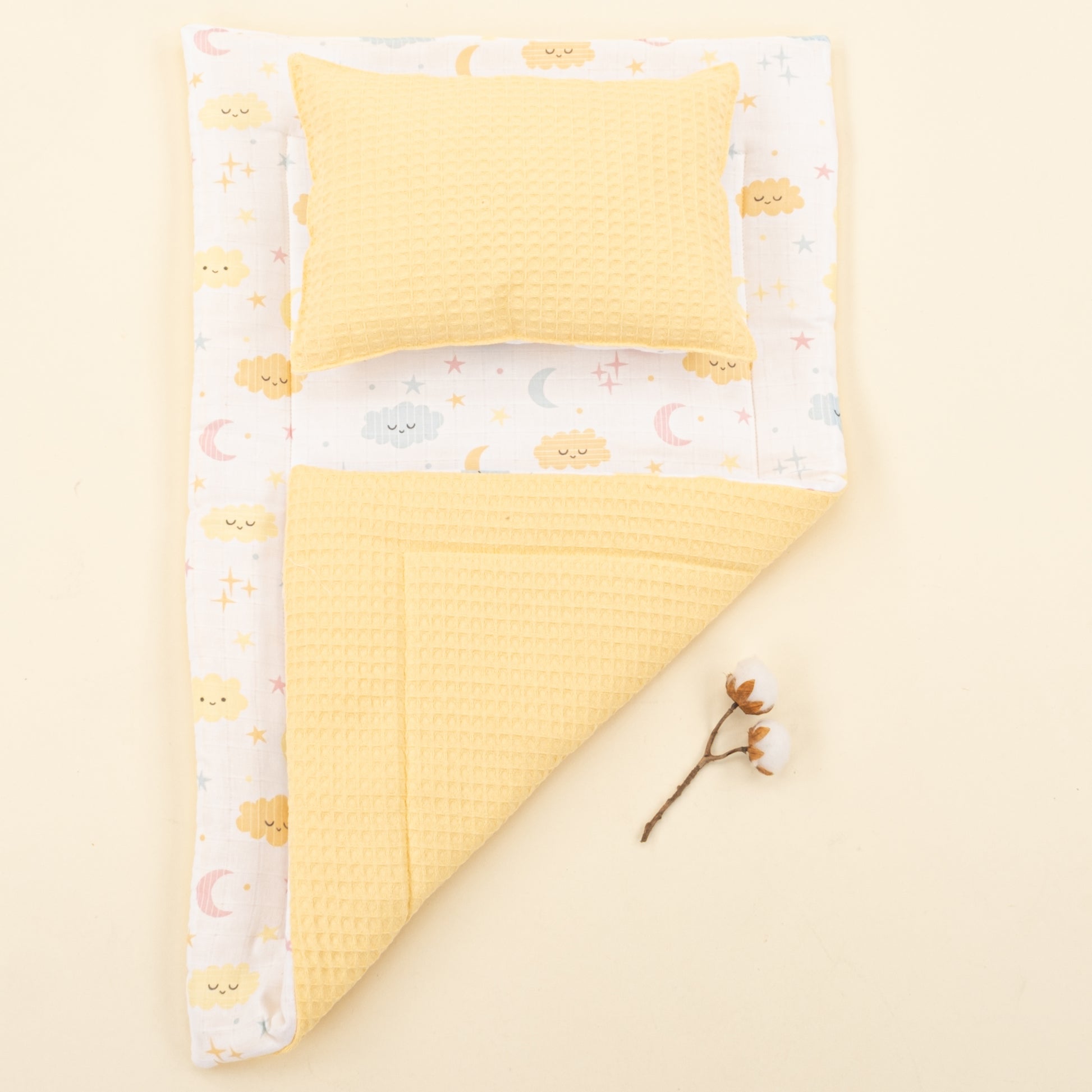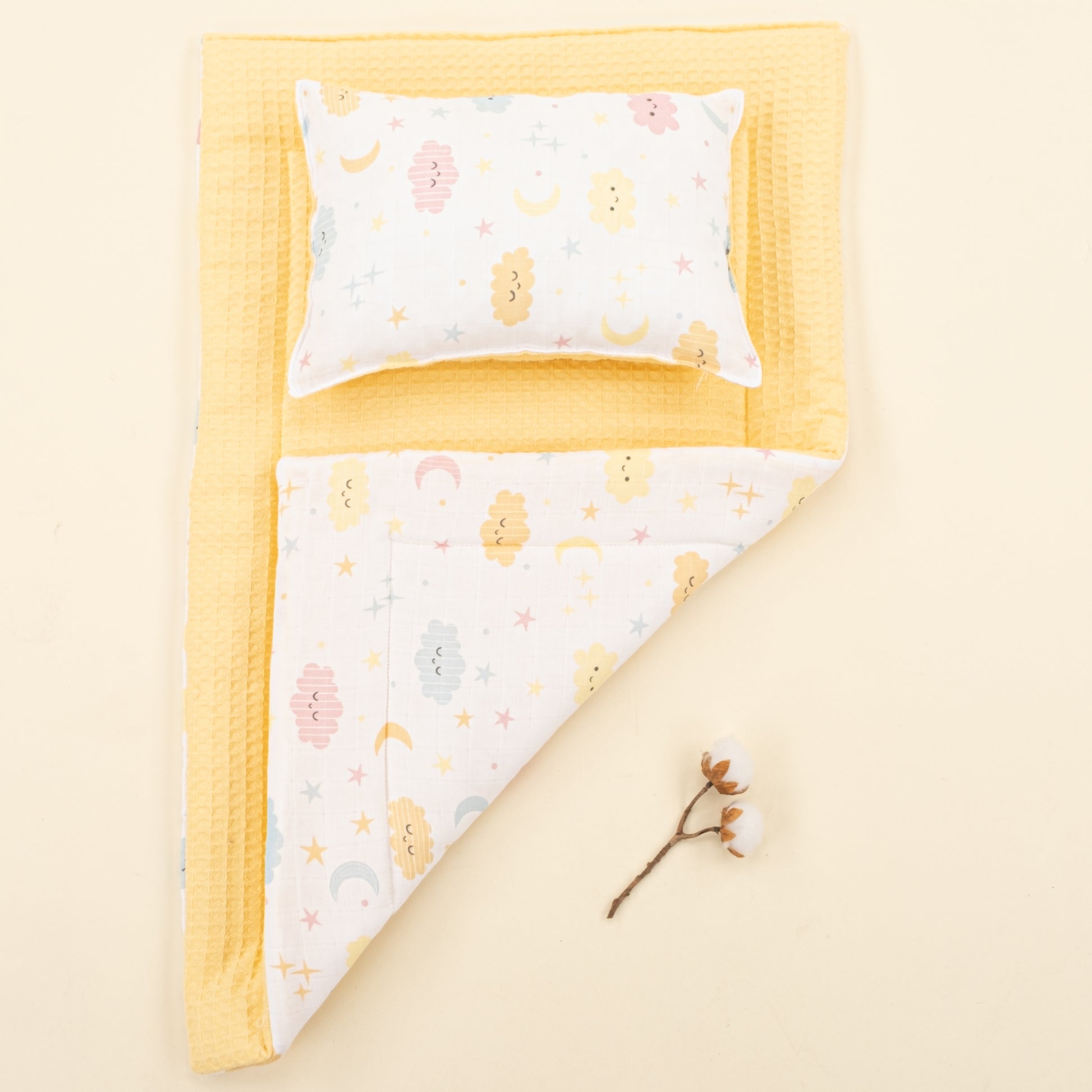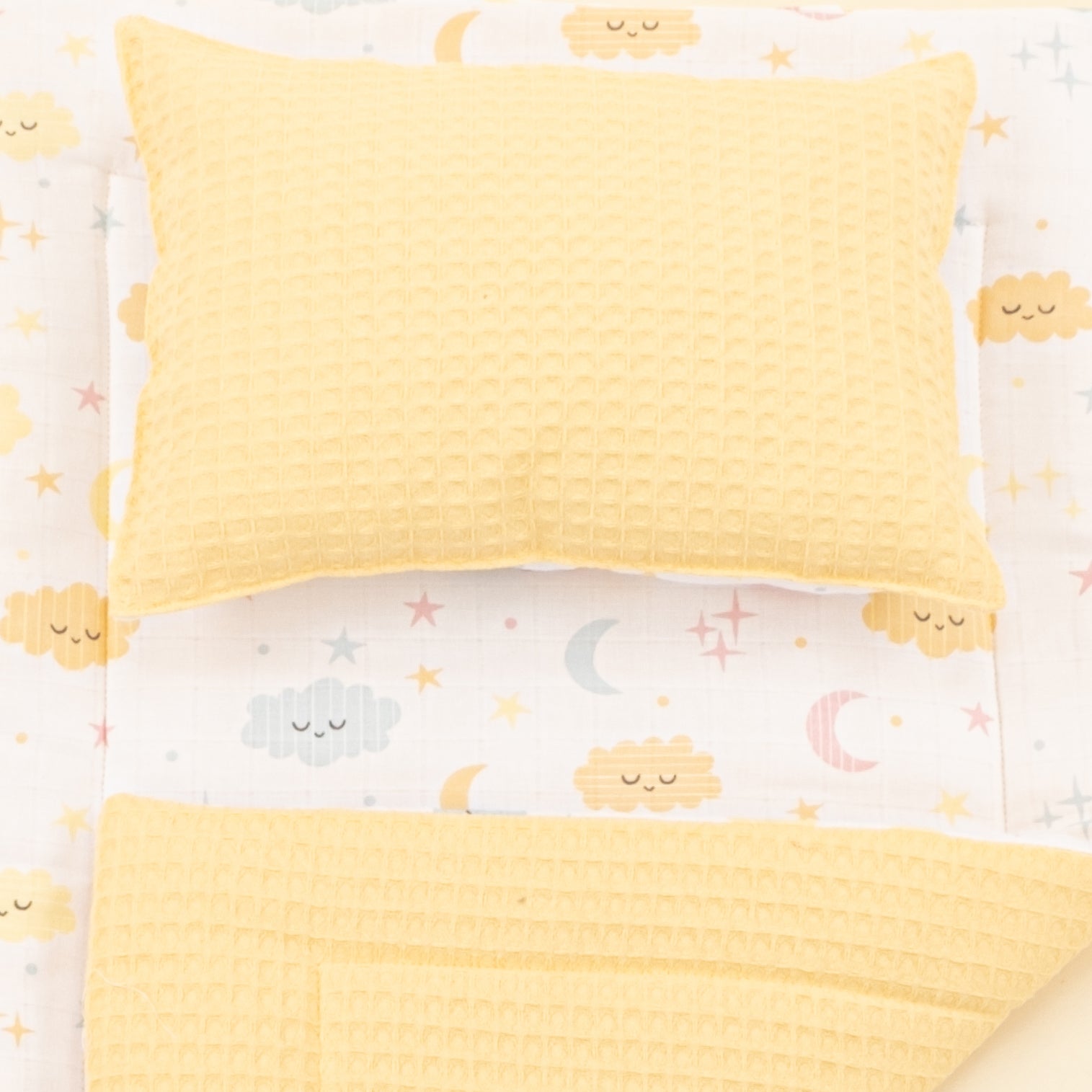 Alt Açma Matı ve Yastık - Çift Taraflı - Sarı Petek - Sarı Bulut
