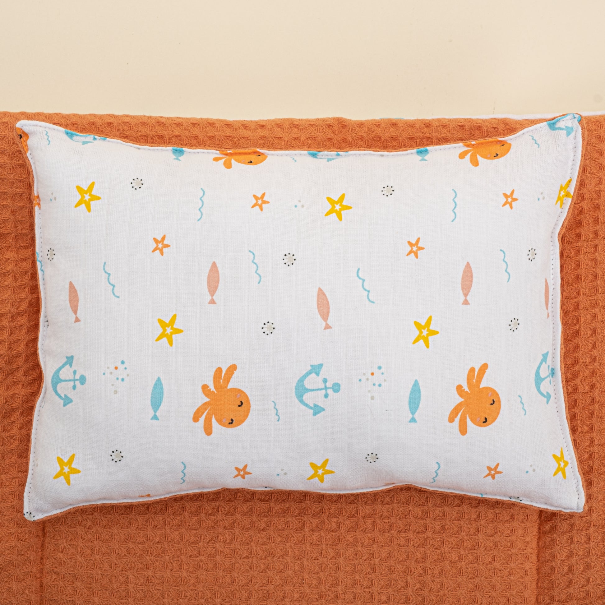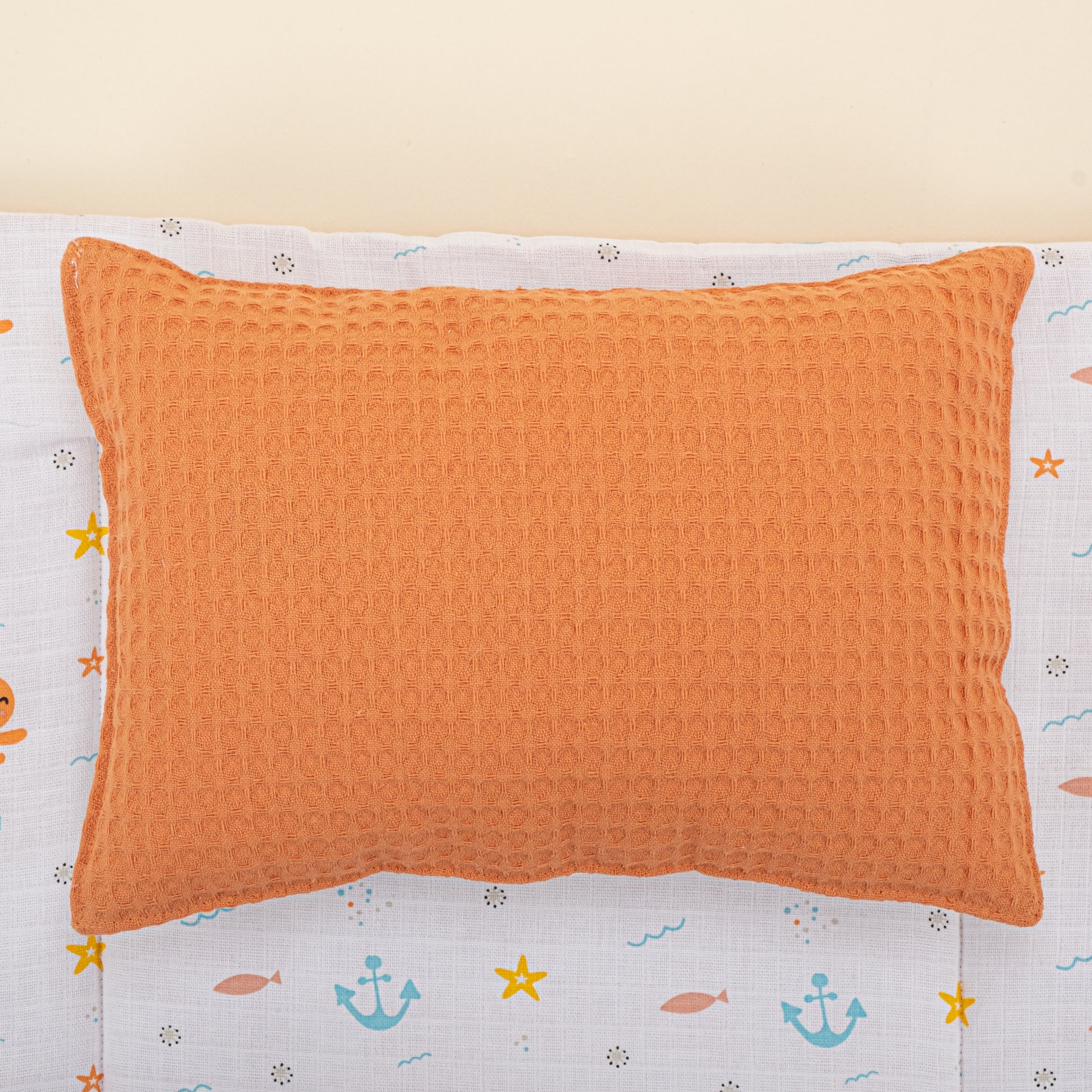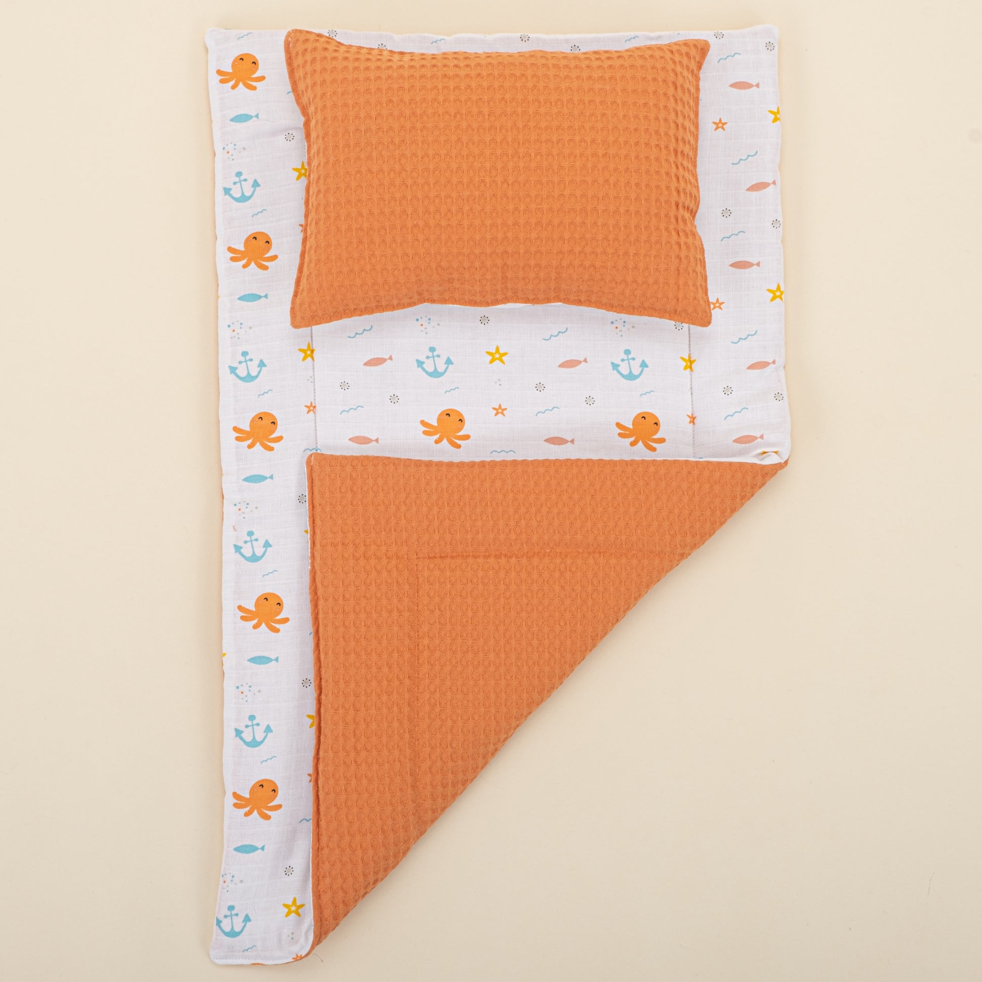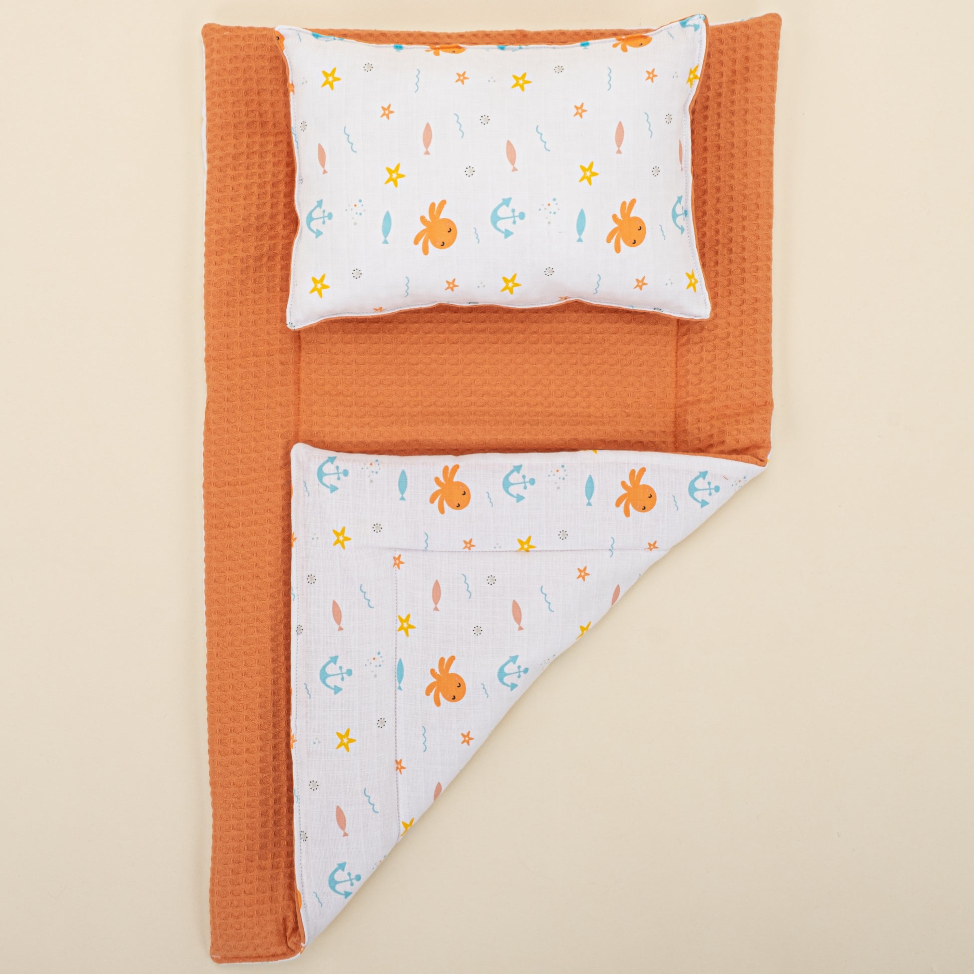 Alt Açma Matı ve Yastık - Çift Taraflı - Turuncu Petek - Ahtapot