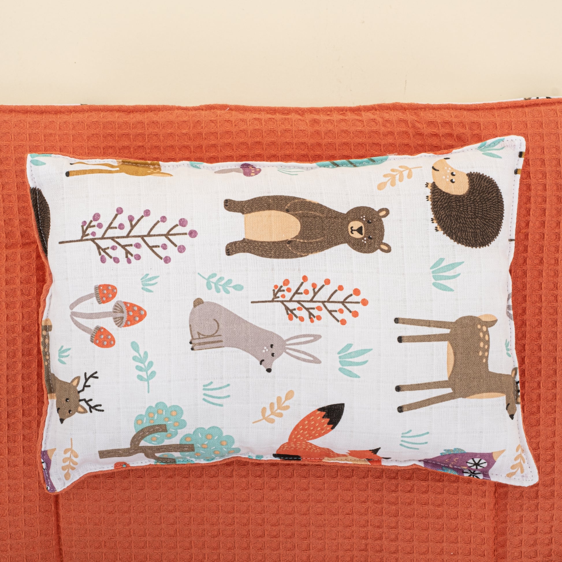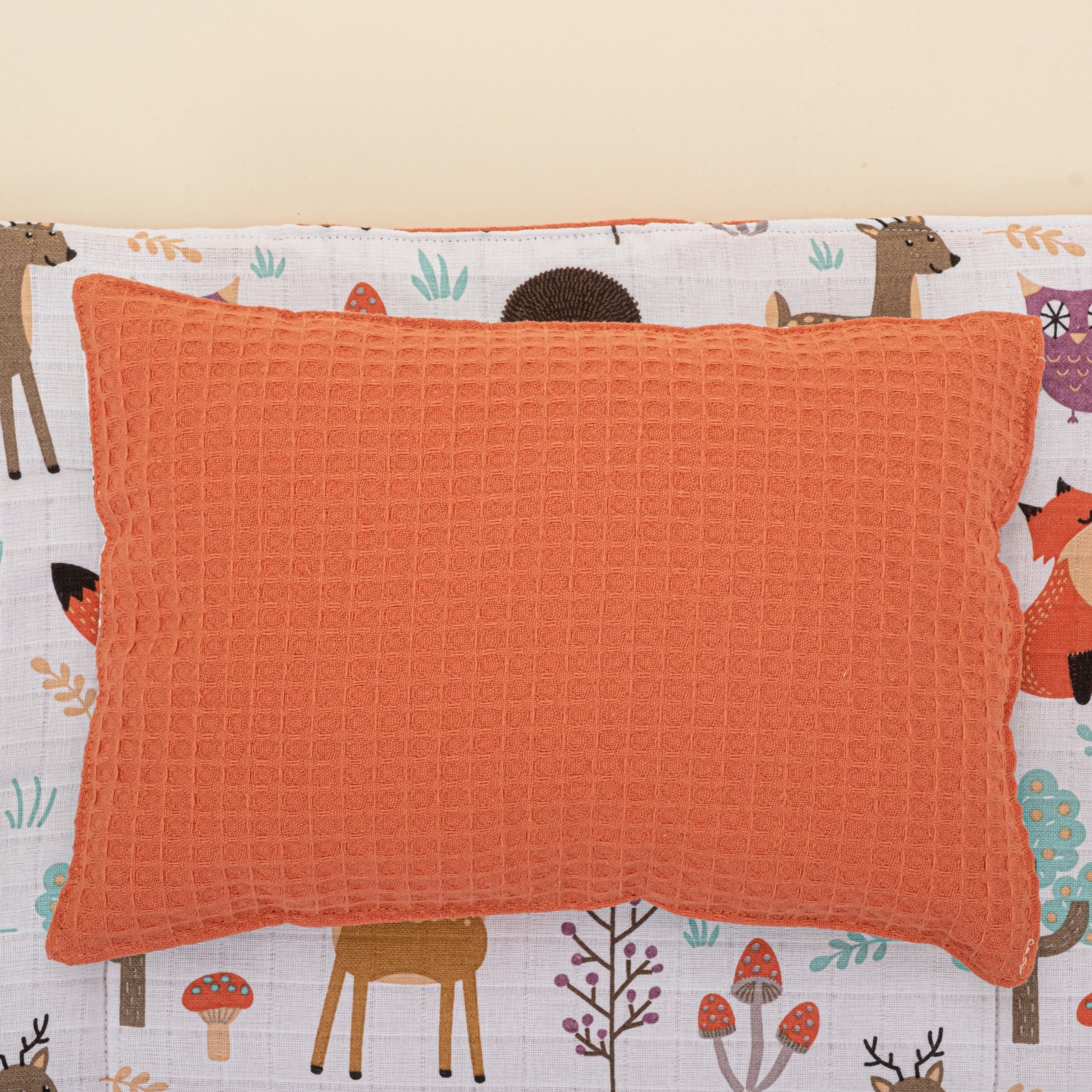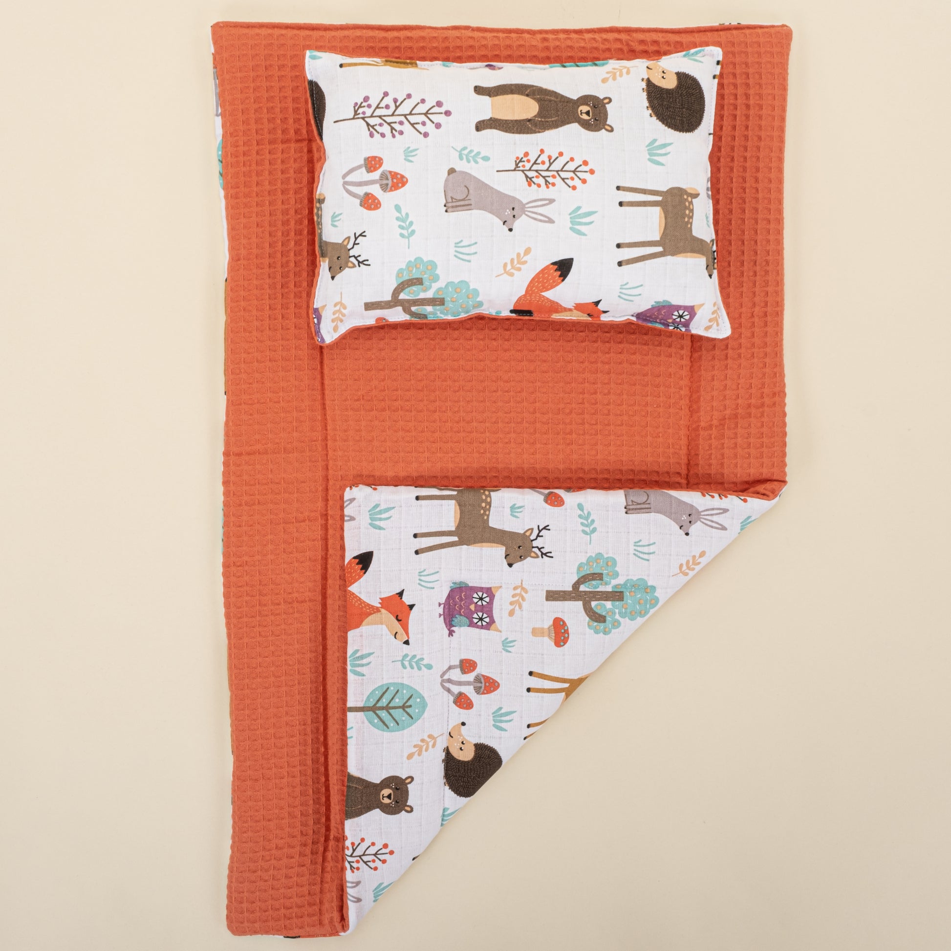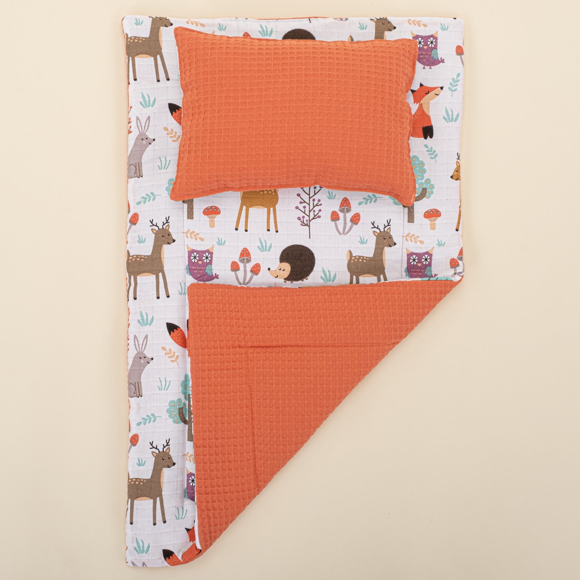 Alt Açma Matı ve Yastık - Çift Taraflı - Turuncu Petek - Orman
