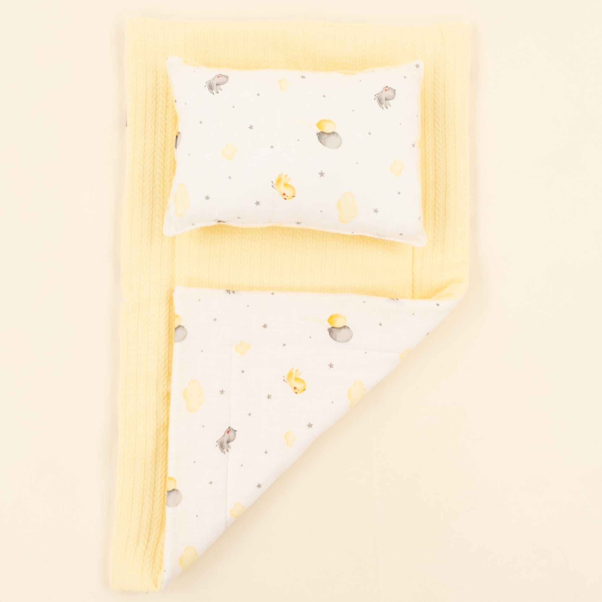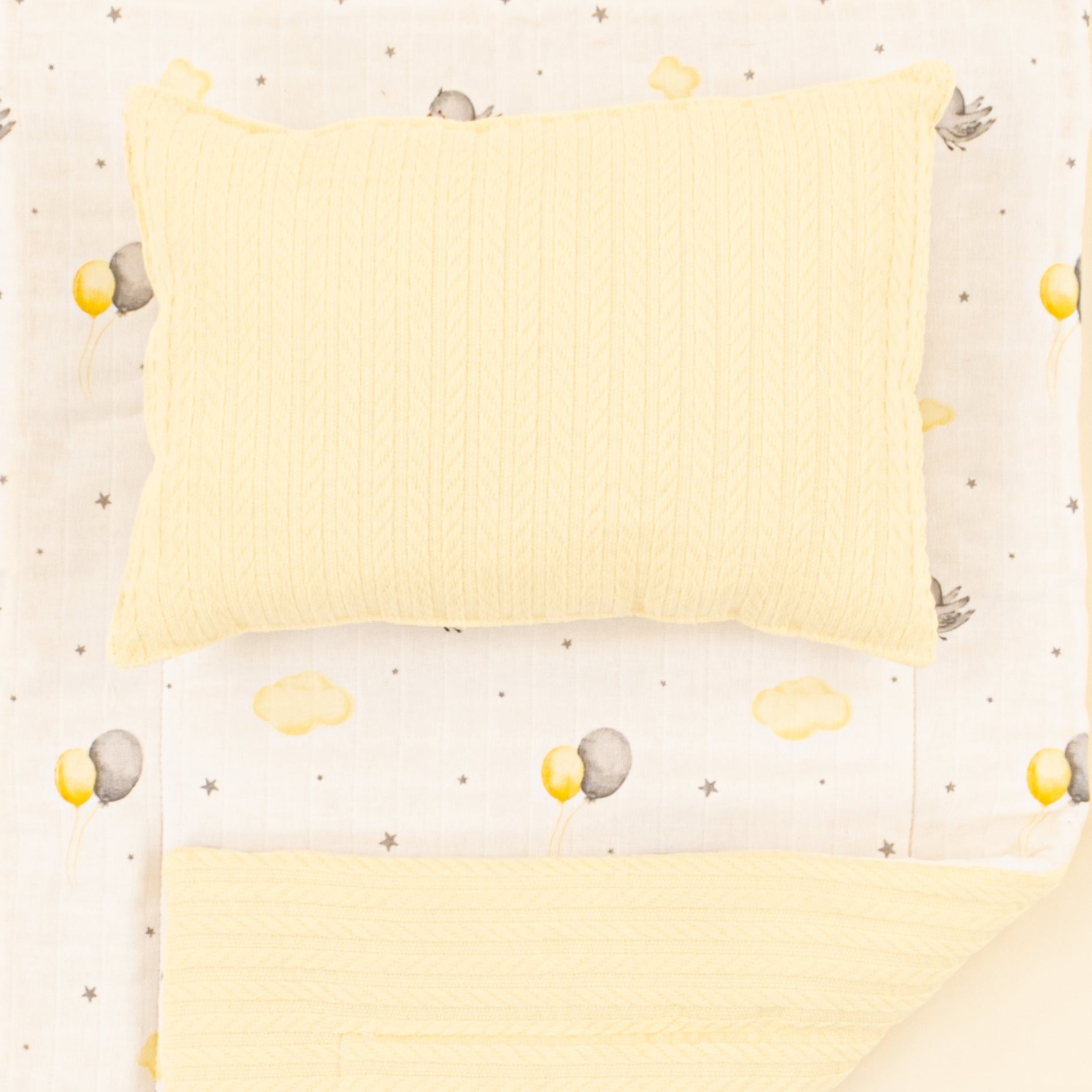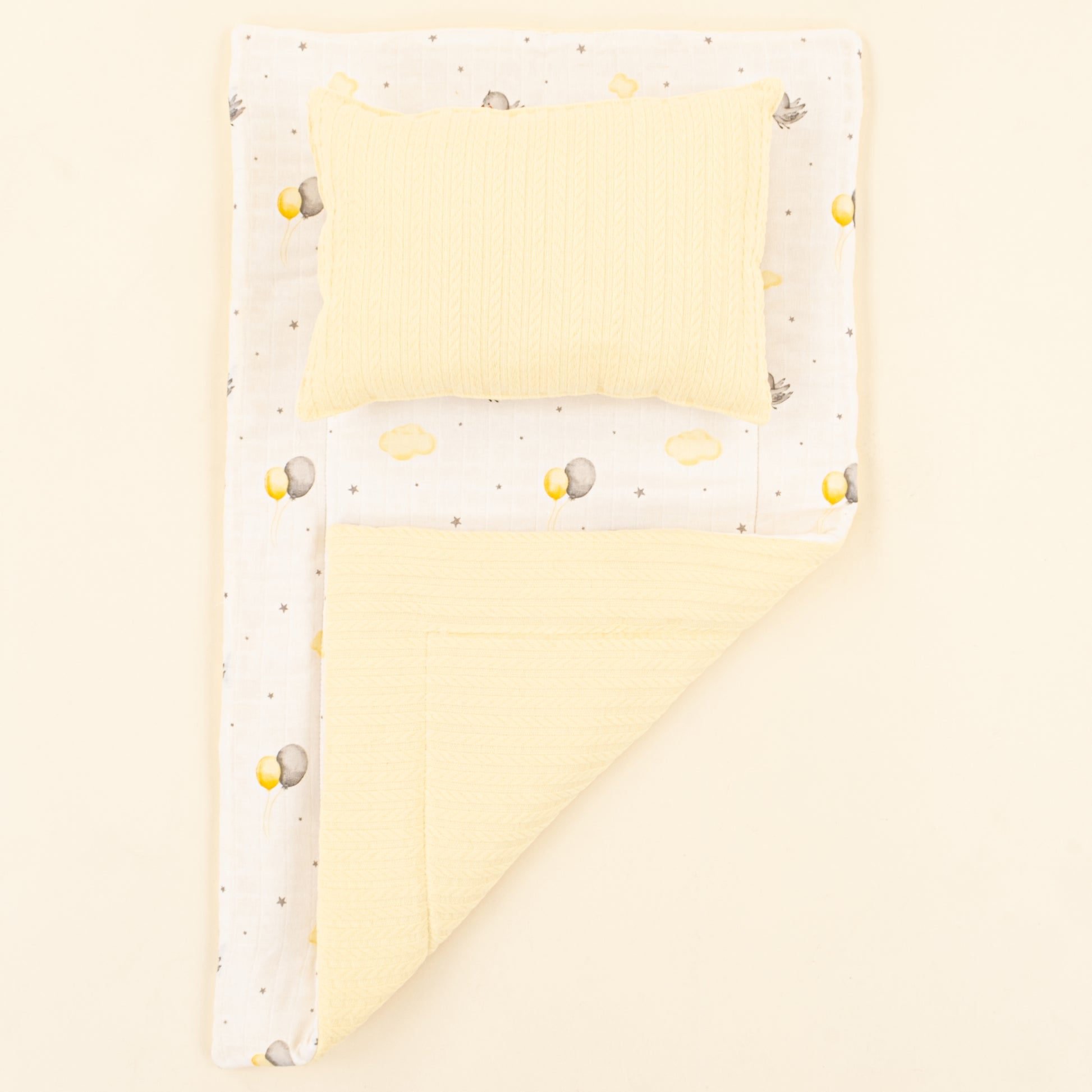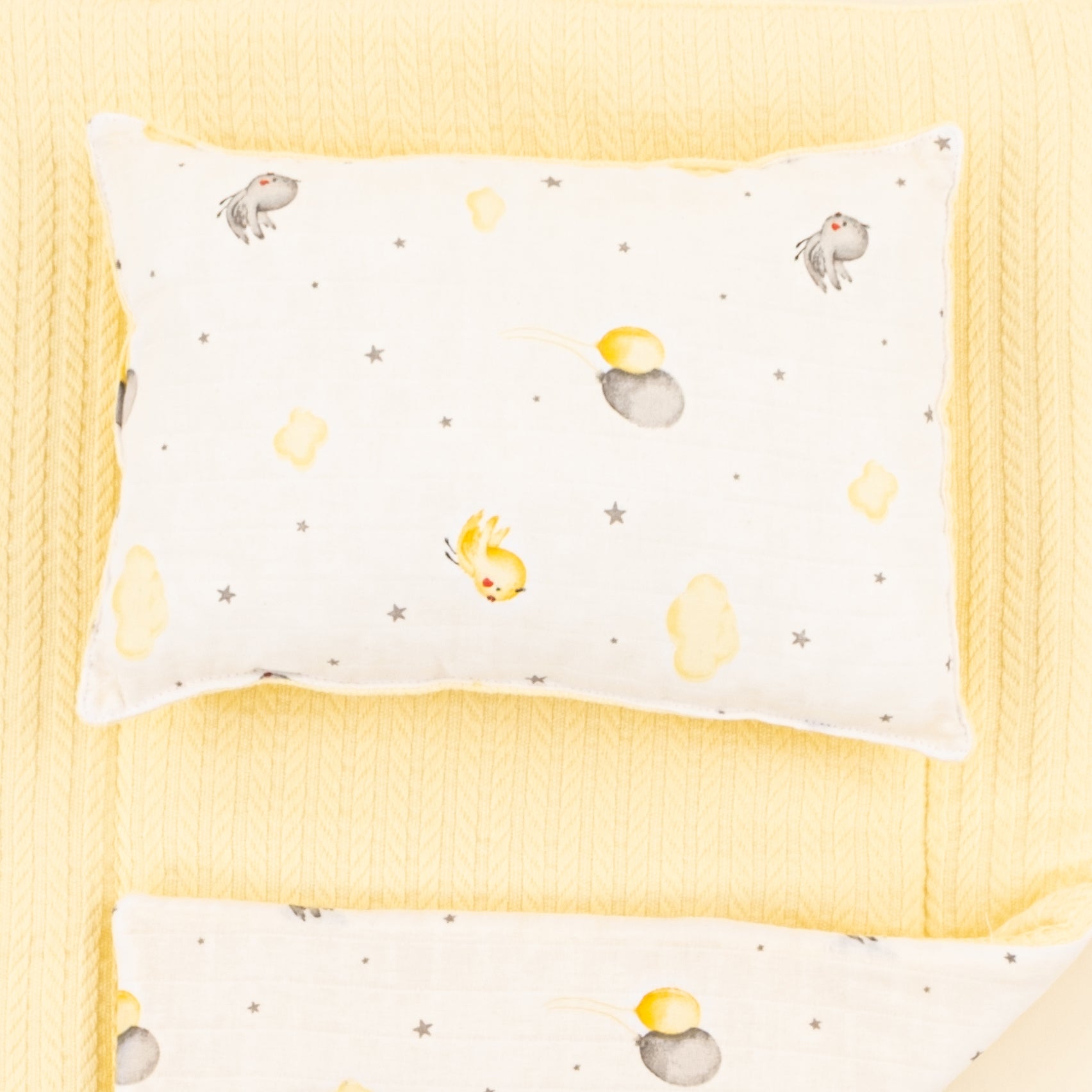Alt Açma Matı ve Yastık - Çift Taraflı - Sarı Örgü - Sarı Kuş