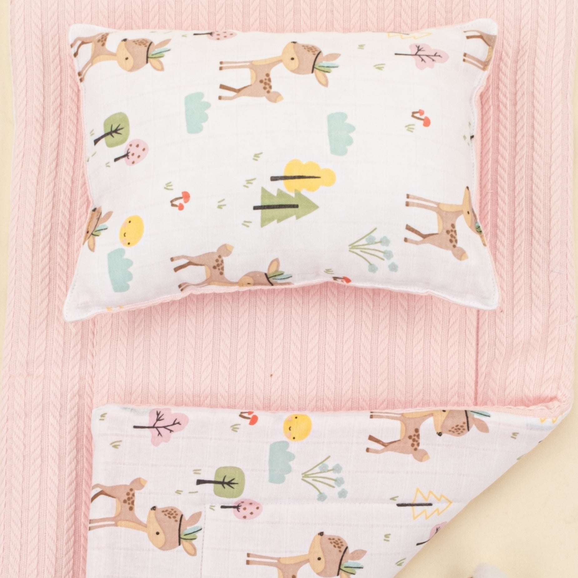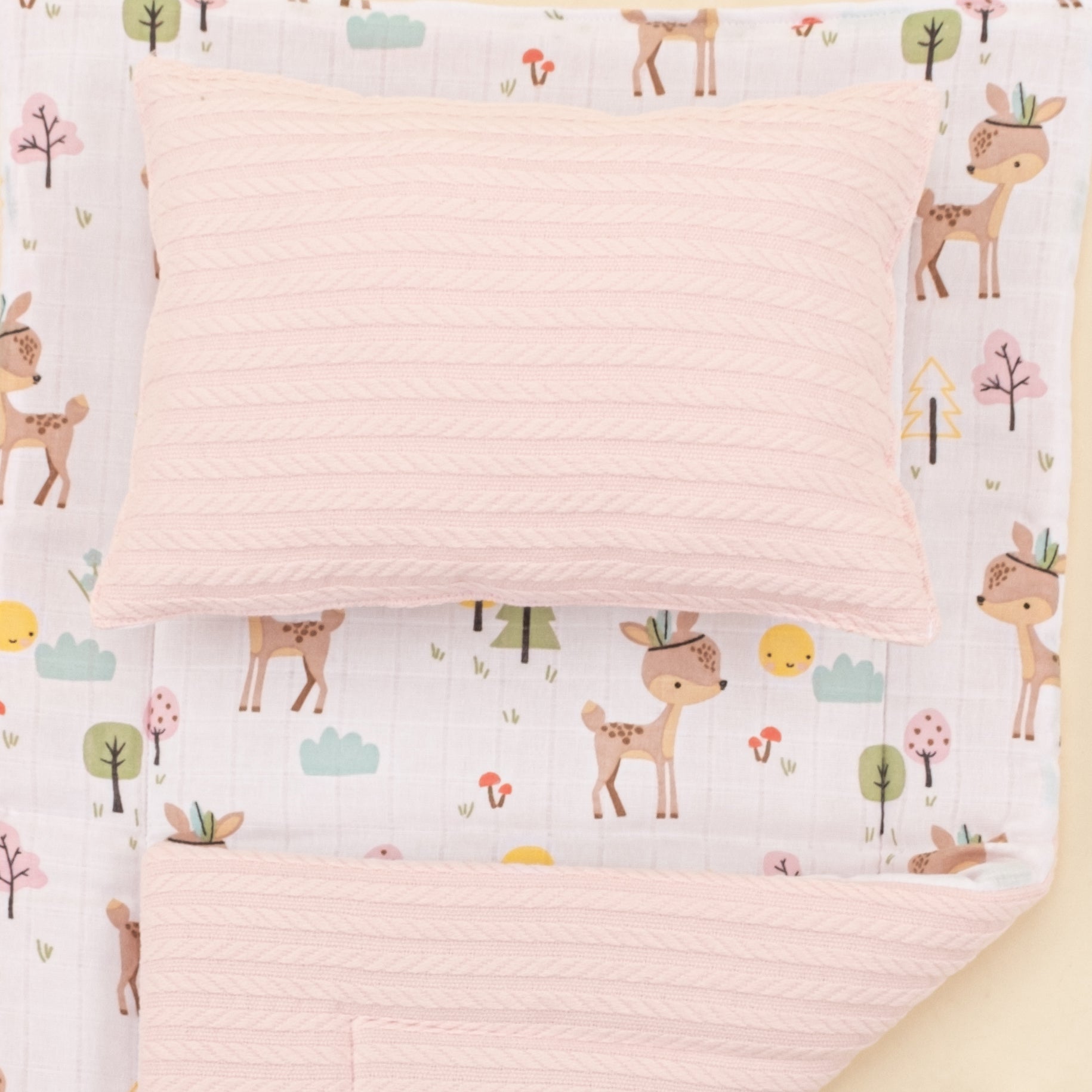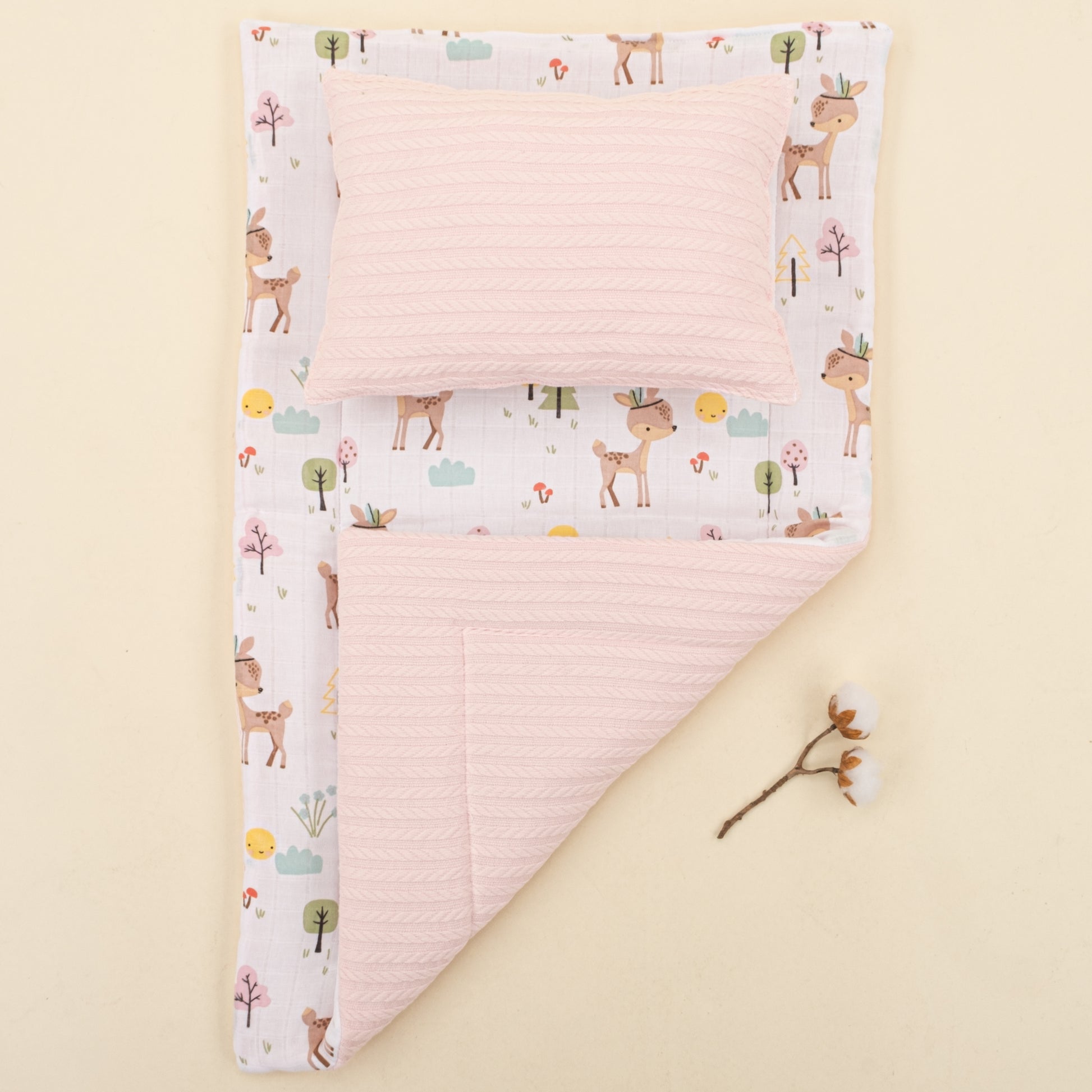 Alt Açma Matı ve Yastık - Çift Taraflı - Şeker Pembe Örgü - Ceylan