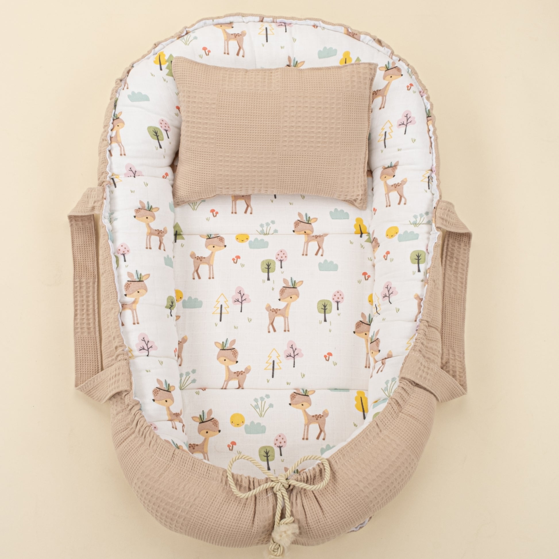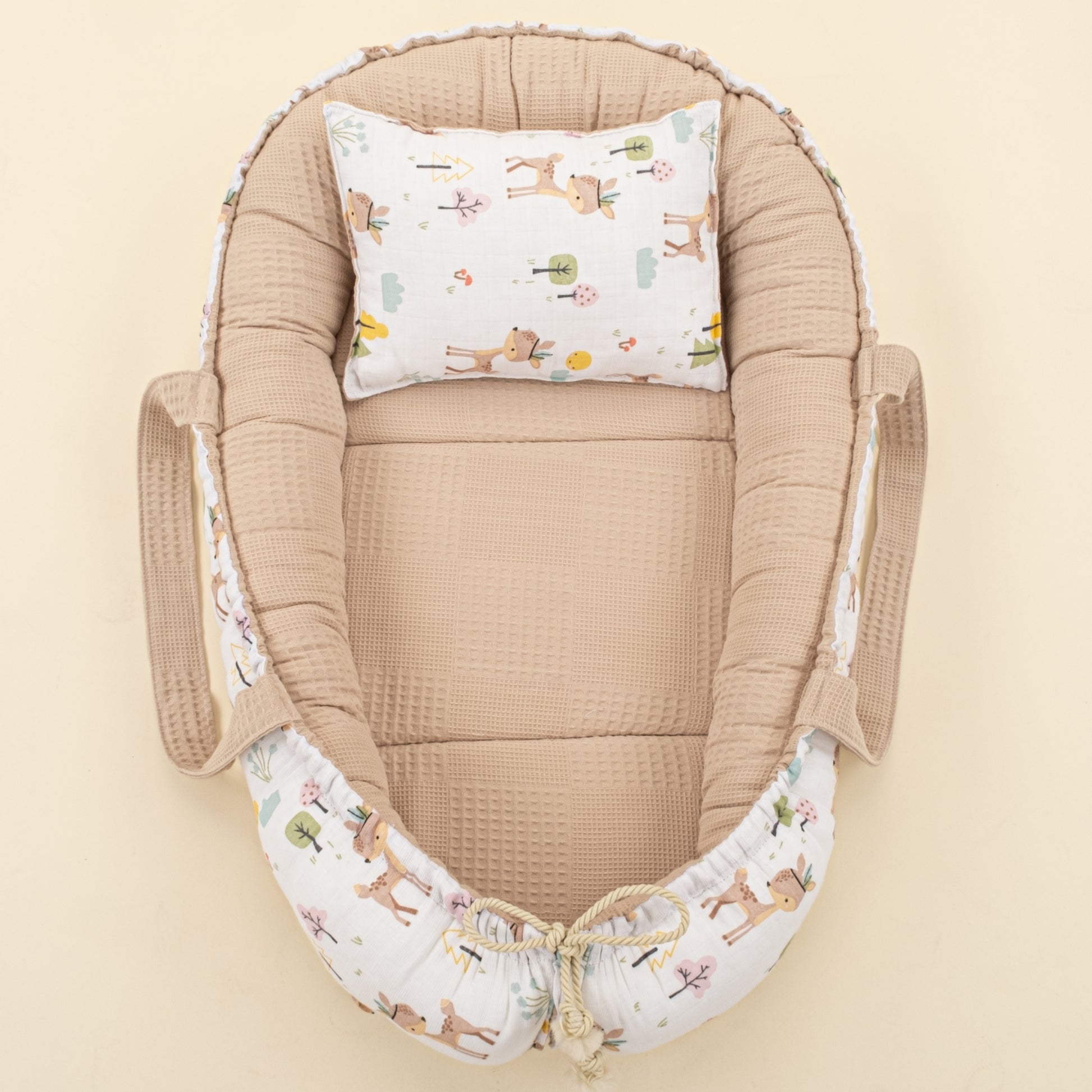Babynest ve Yastık - Çift Taraflı - Bej Waffle - Ceylan
