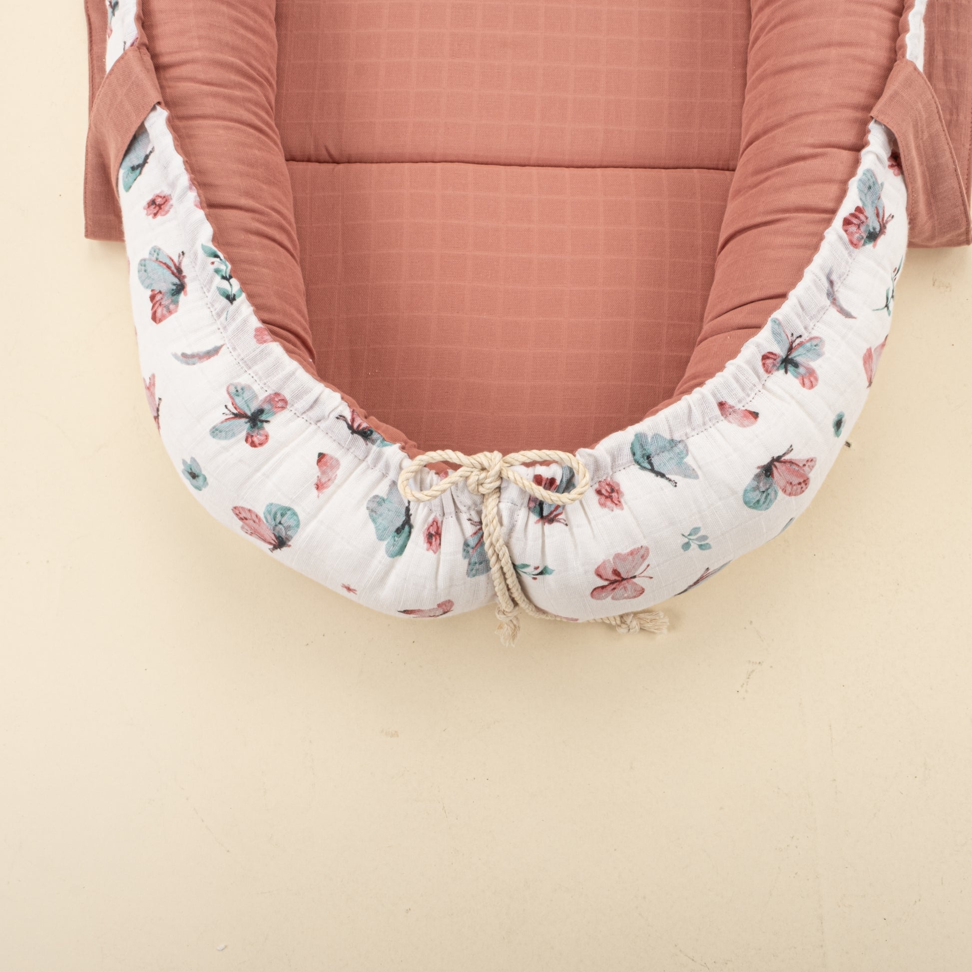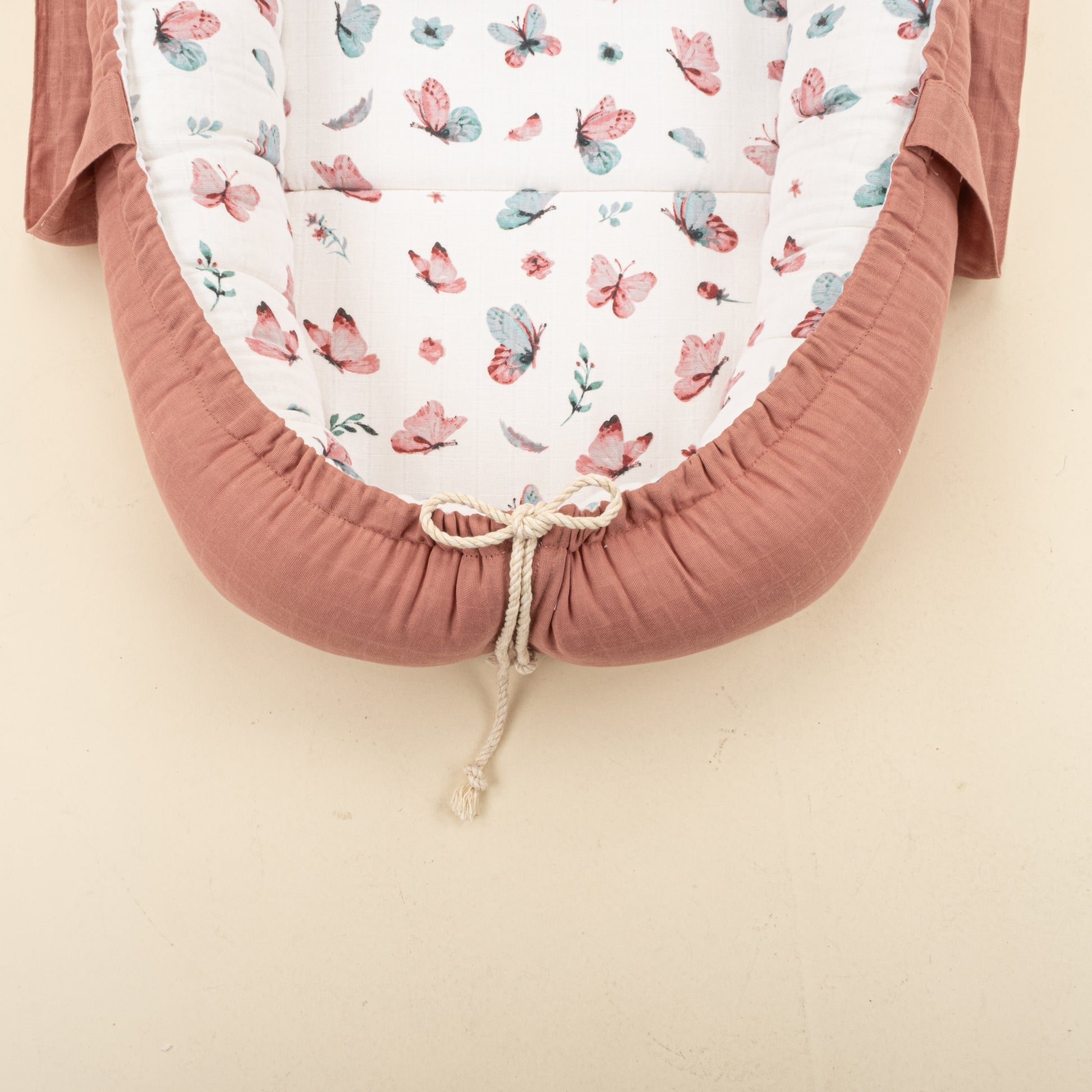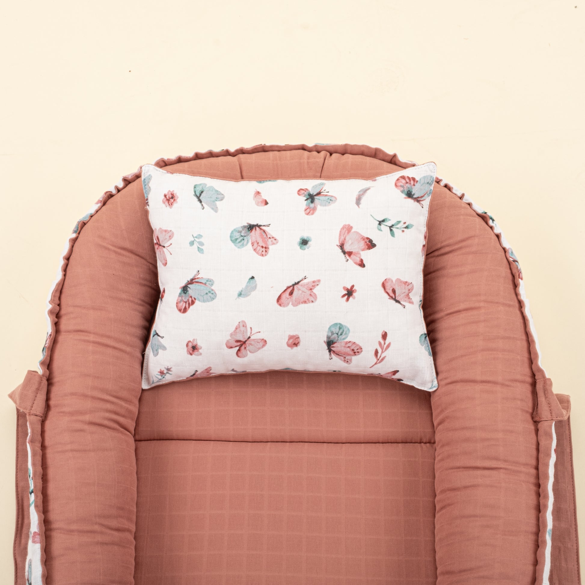 Babynest ve Yastık - Çift Taraflı - Gül Kurusu Muslin - Kelebekler