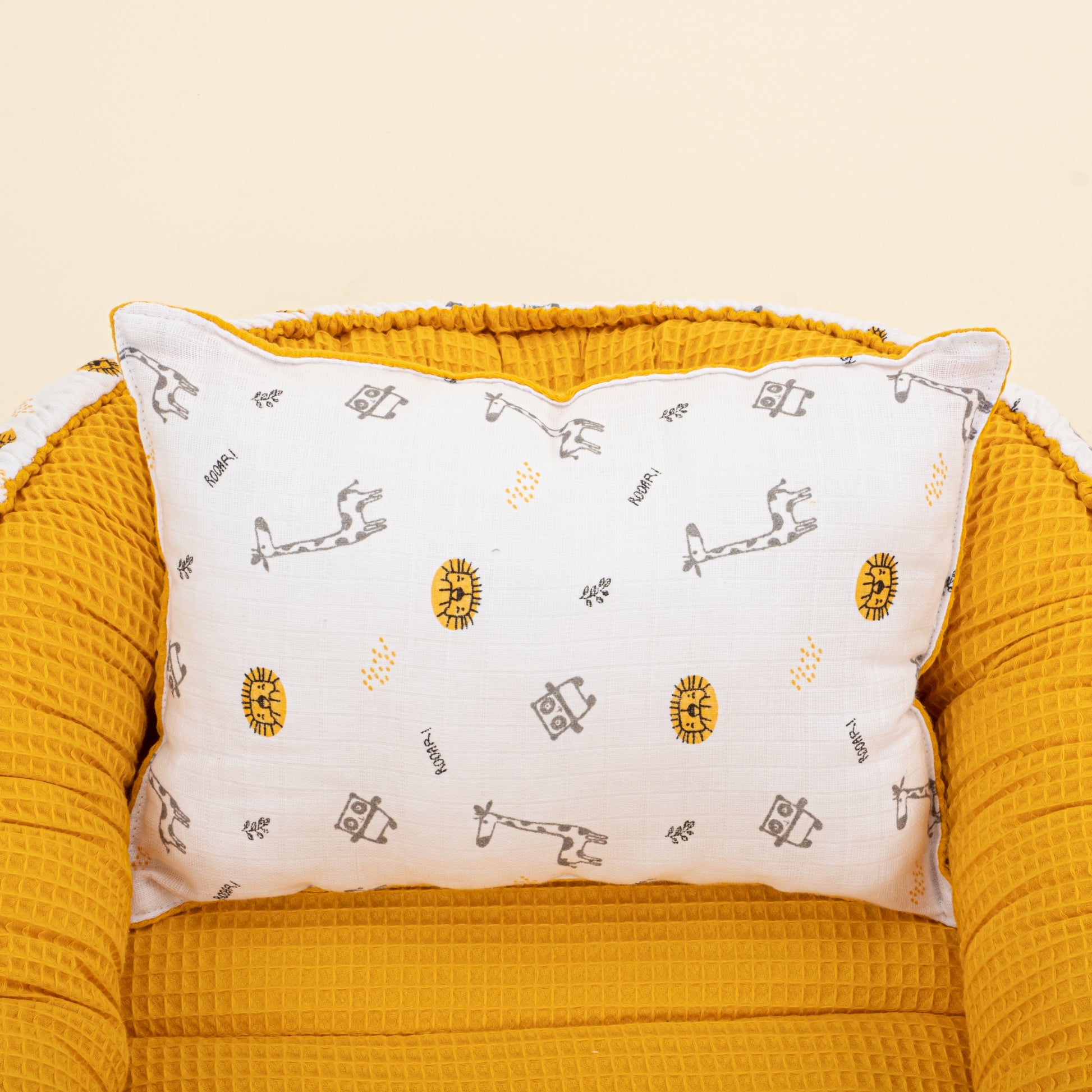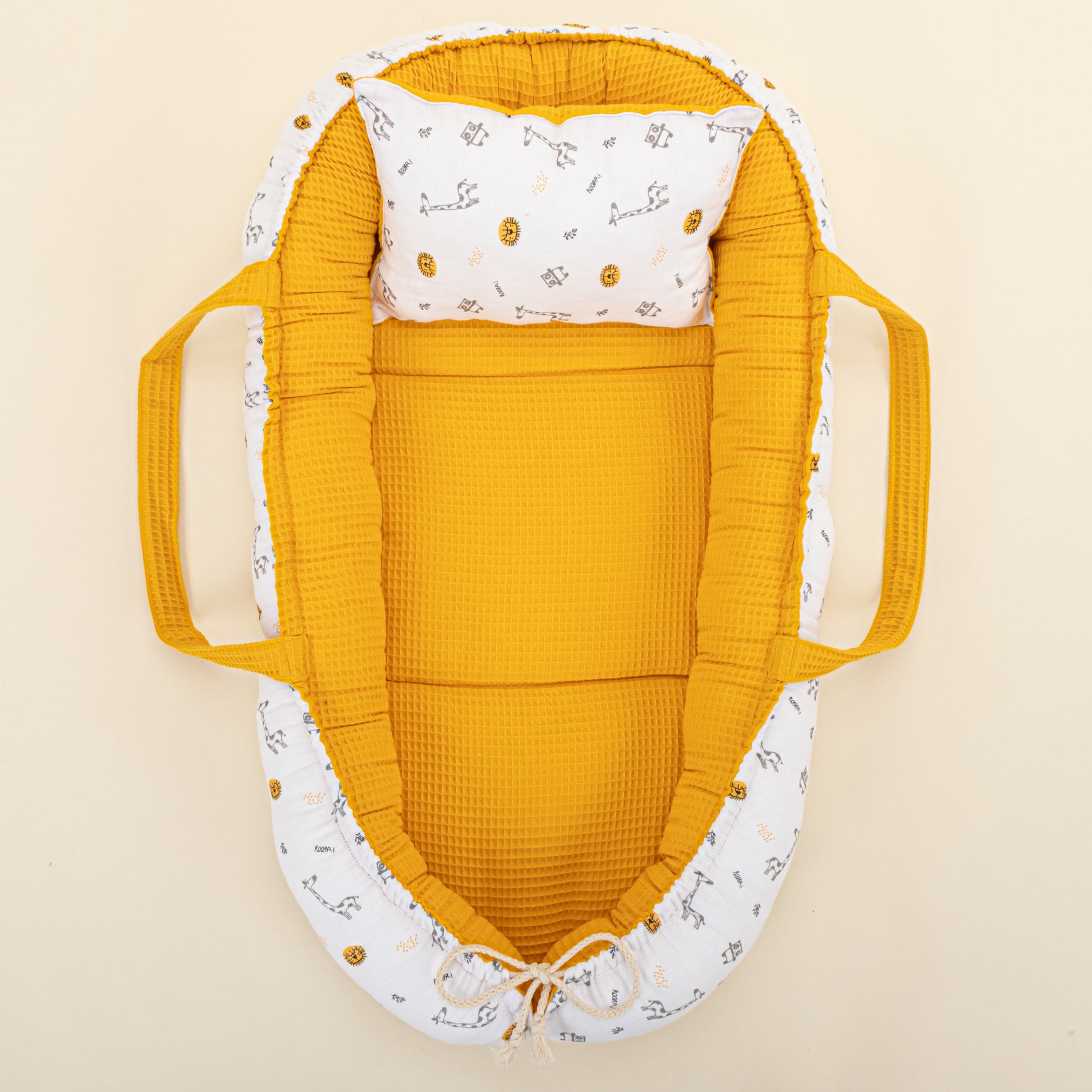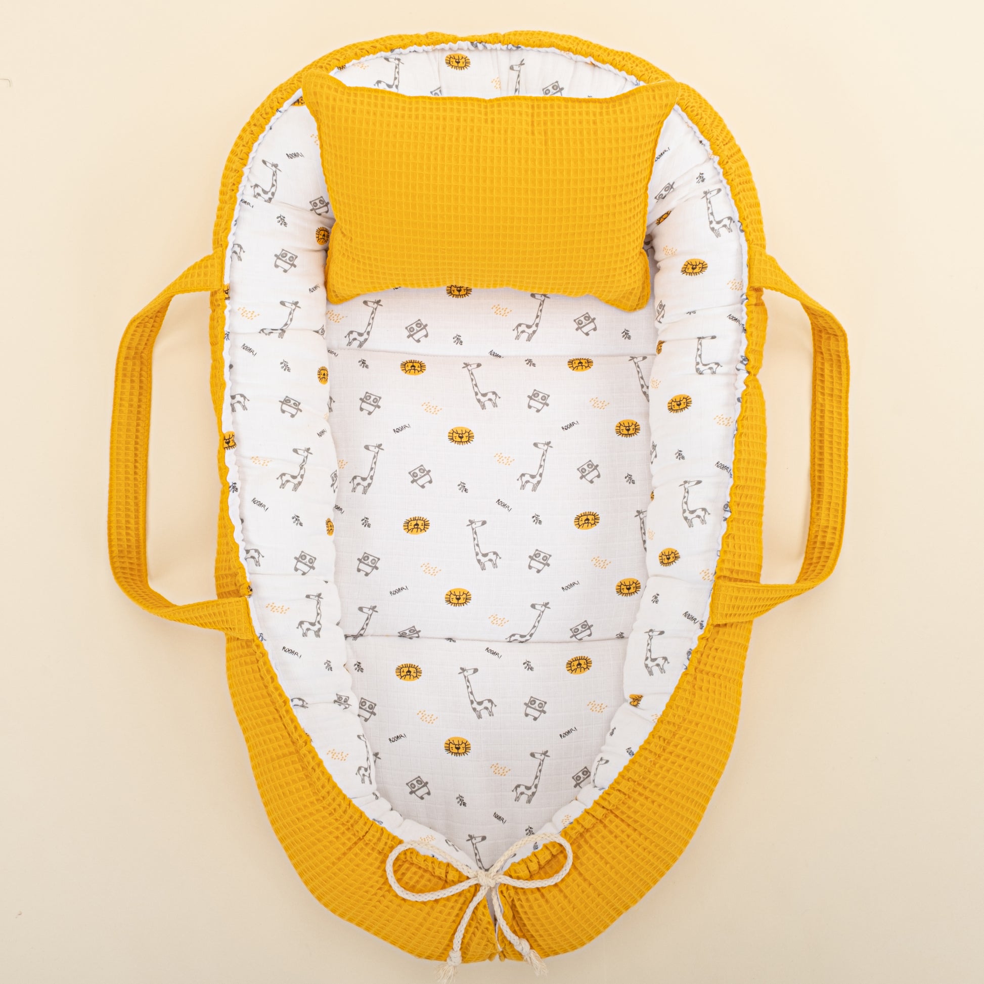 Babynest ve Yastık - Çift Taraflı - Hardal Petek - Zürafa
