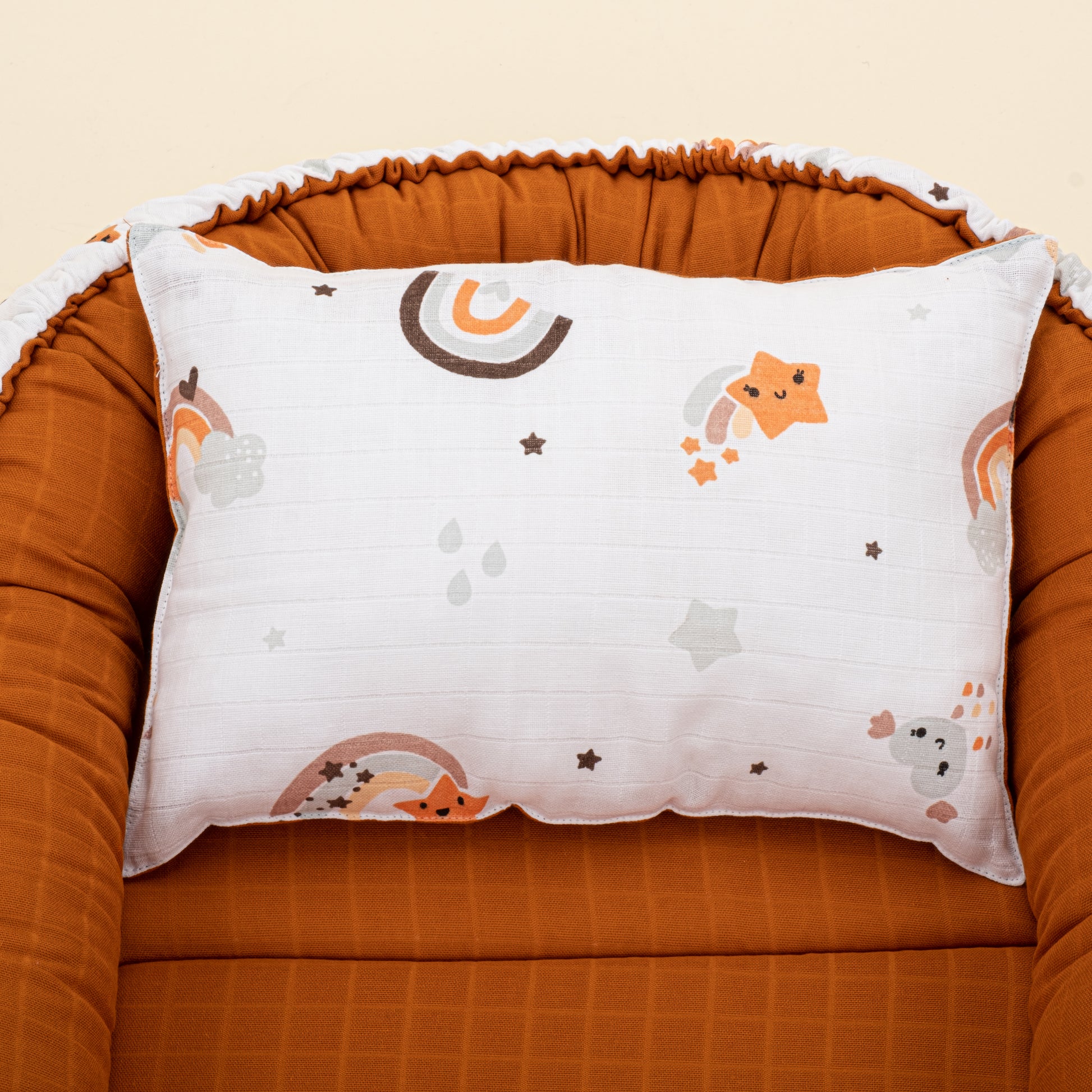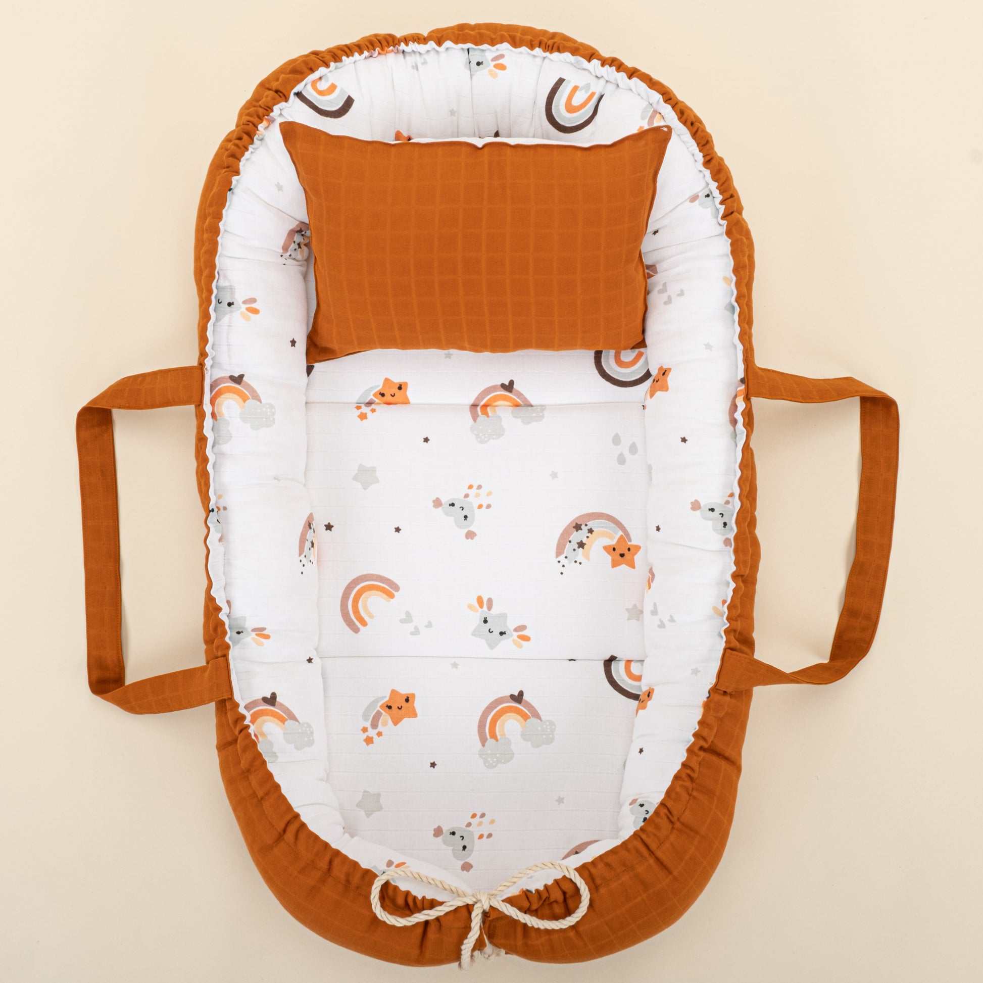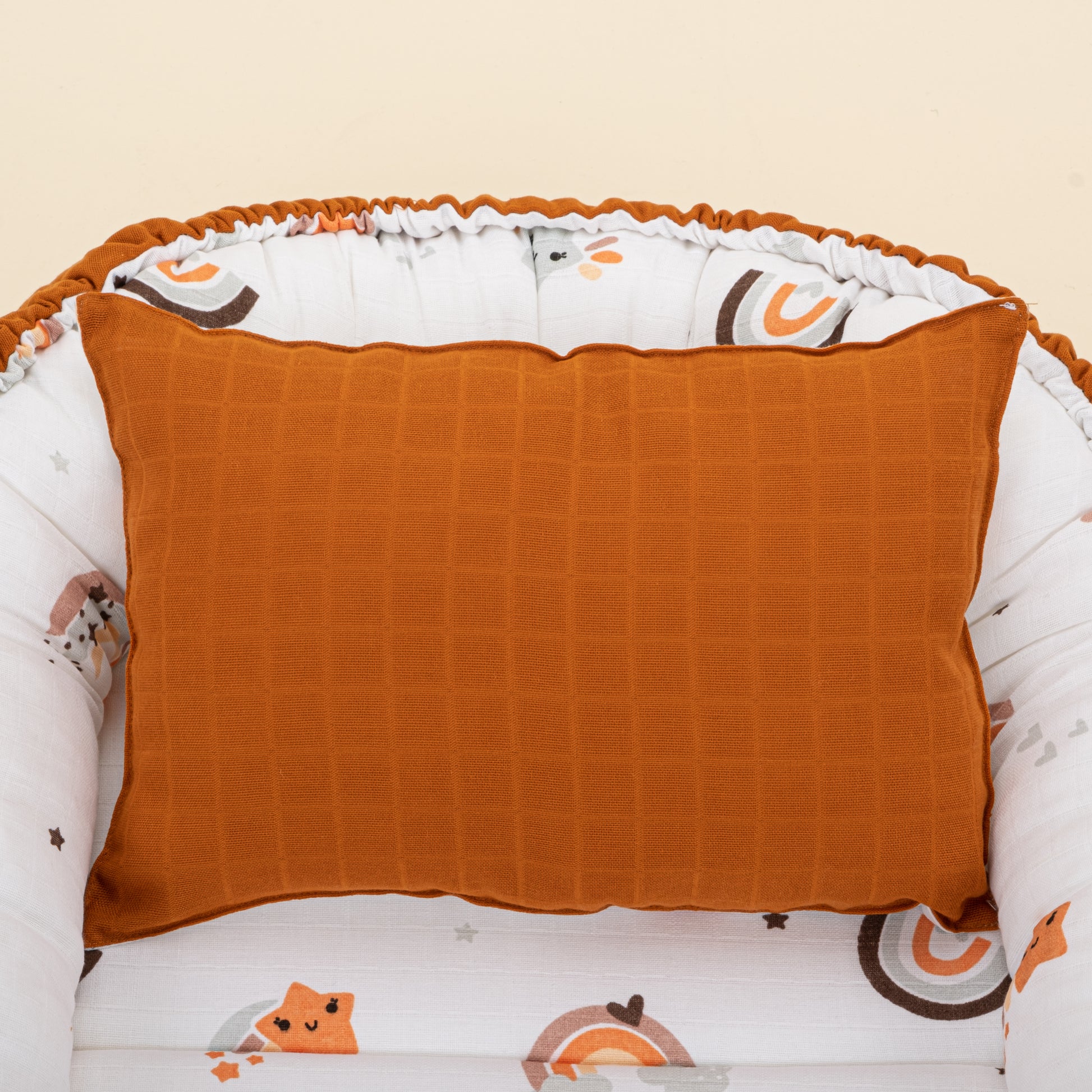 Babynest ve Yastık- Çift Taraflı - Kiremit Muslin - Turuncu Gökkuşağı