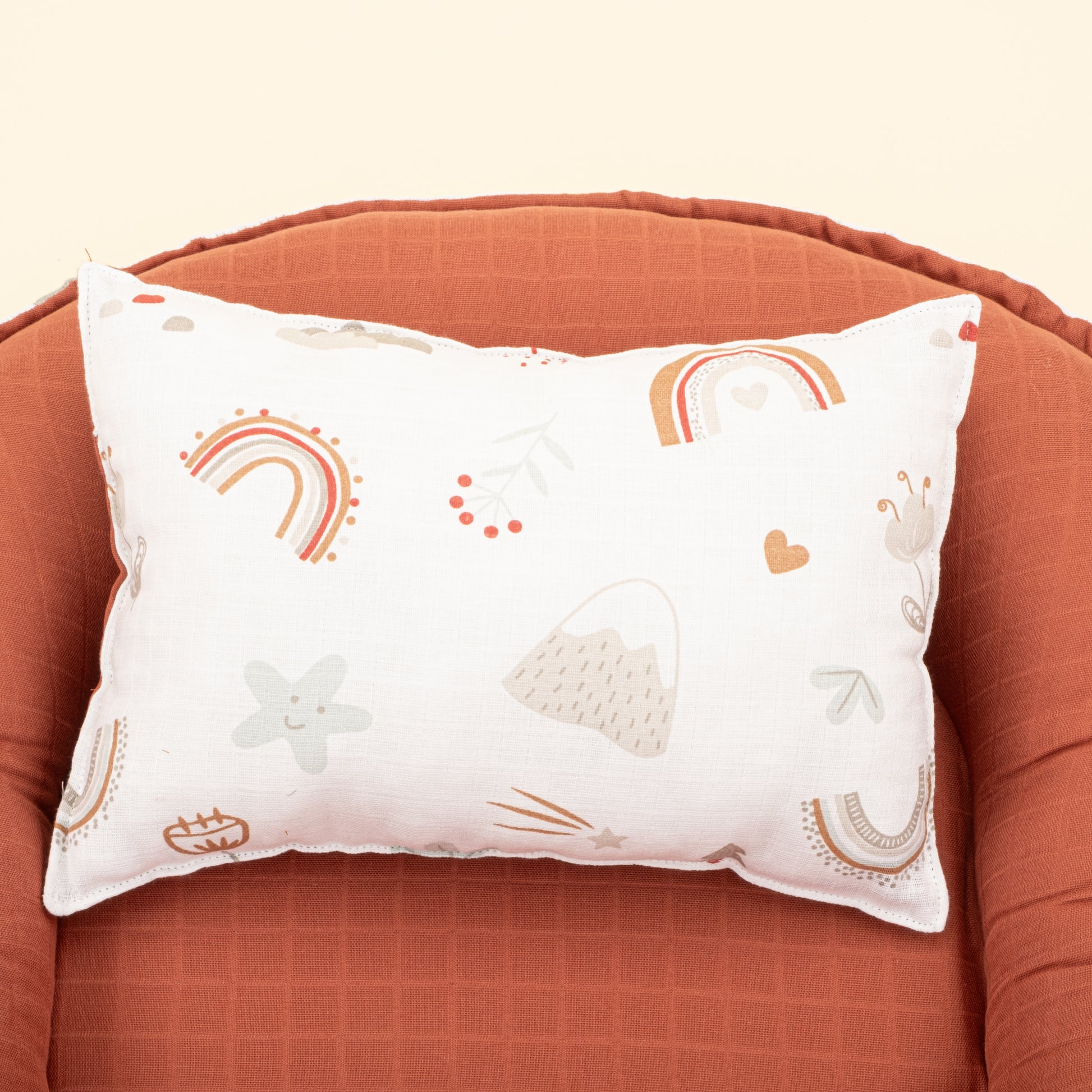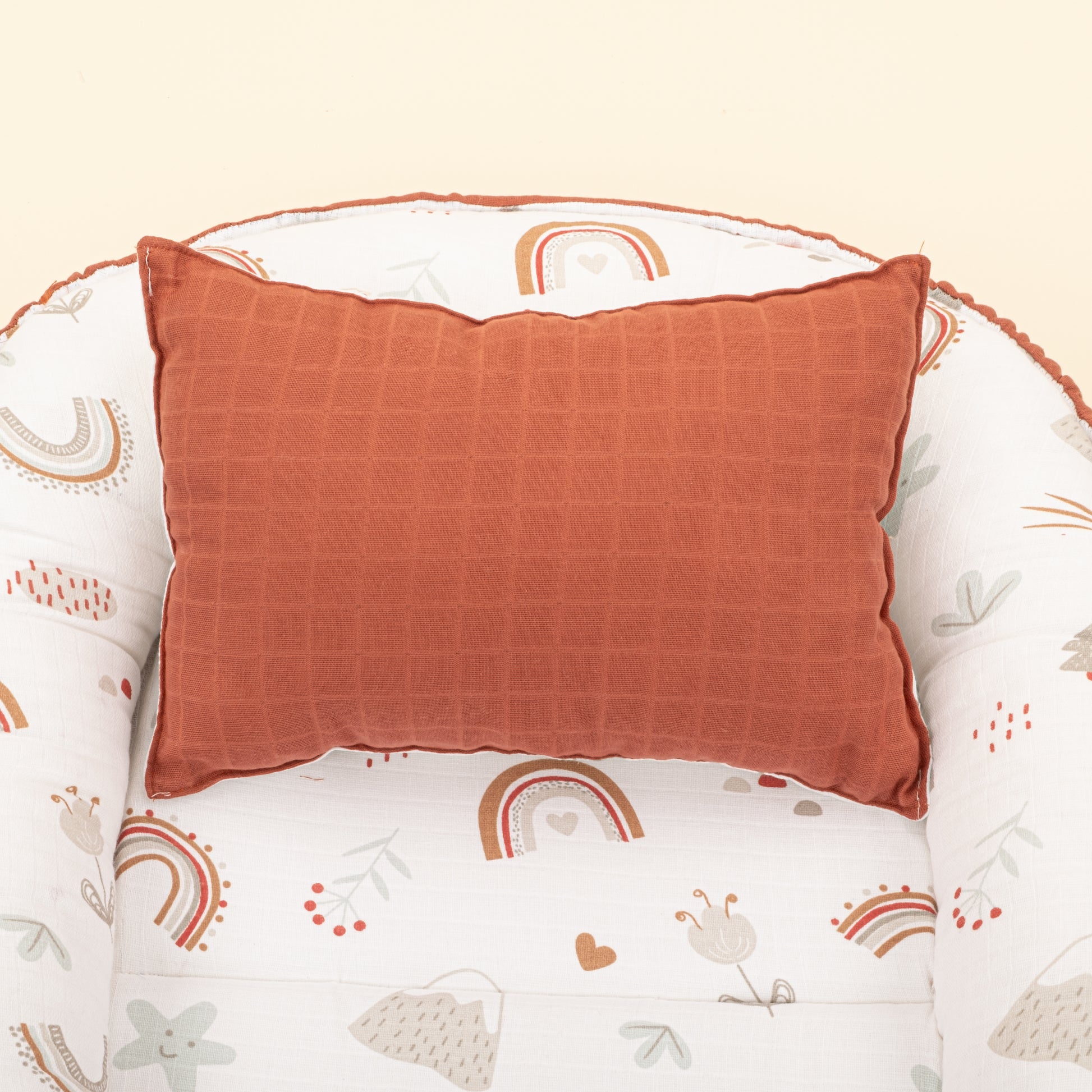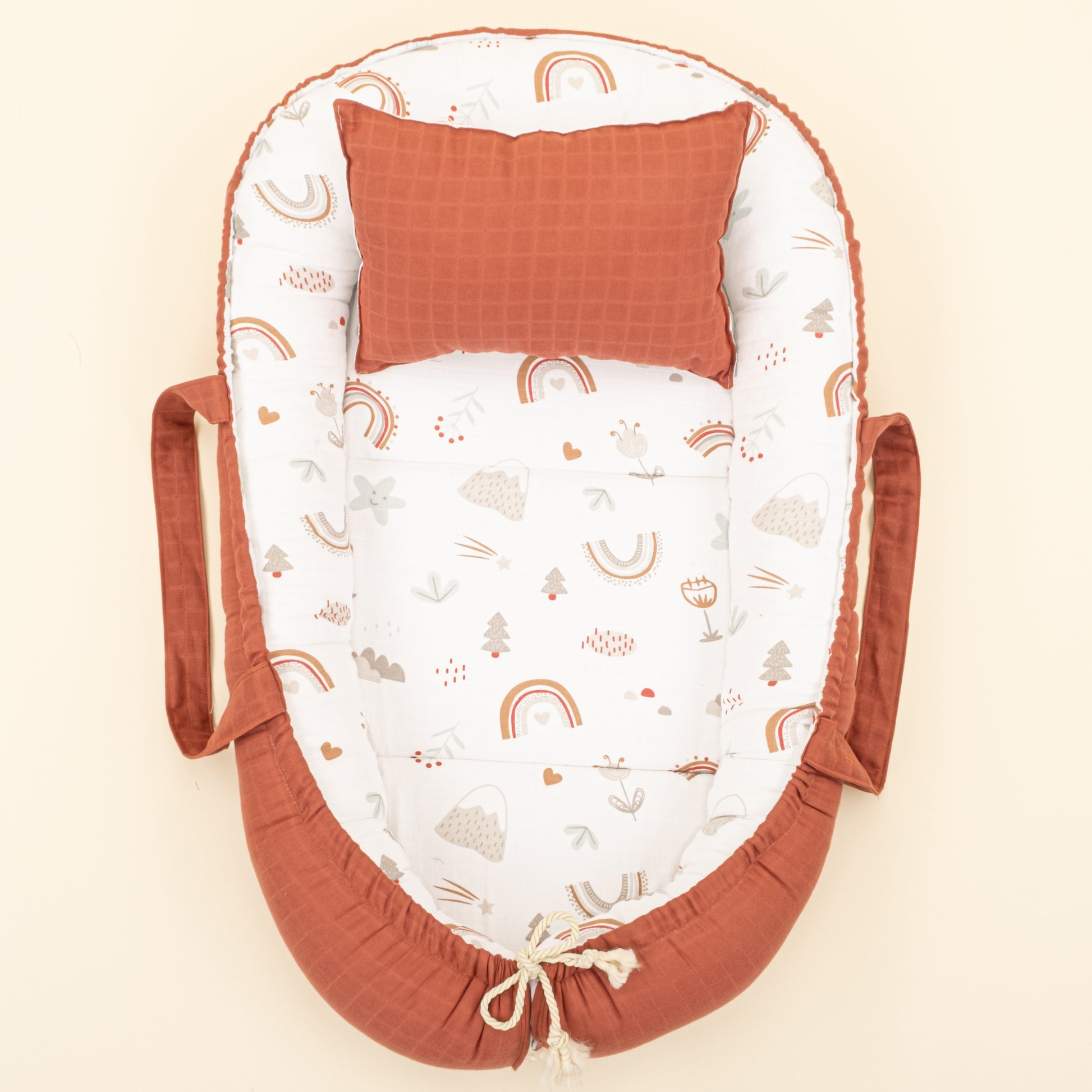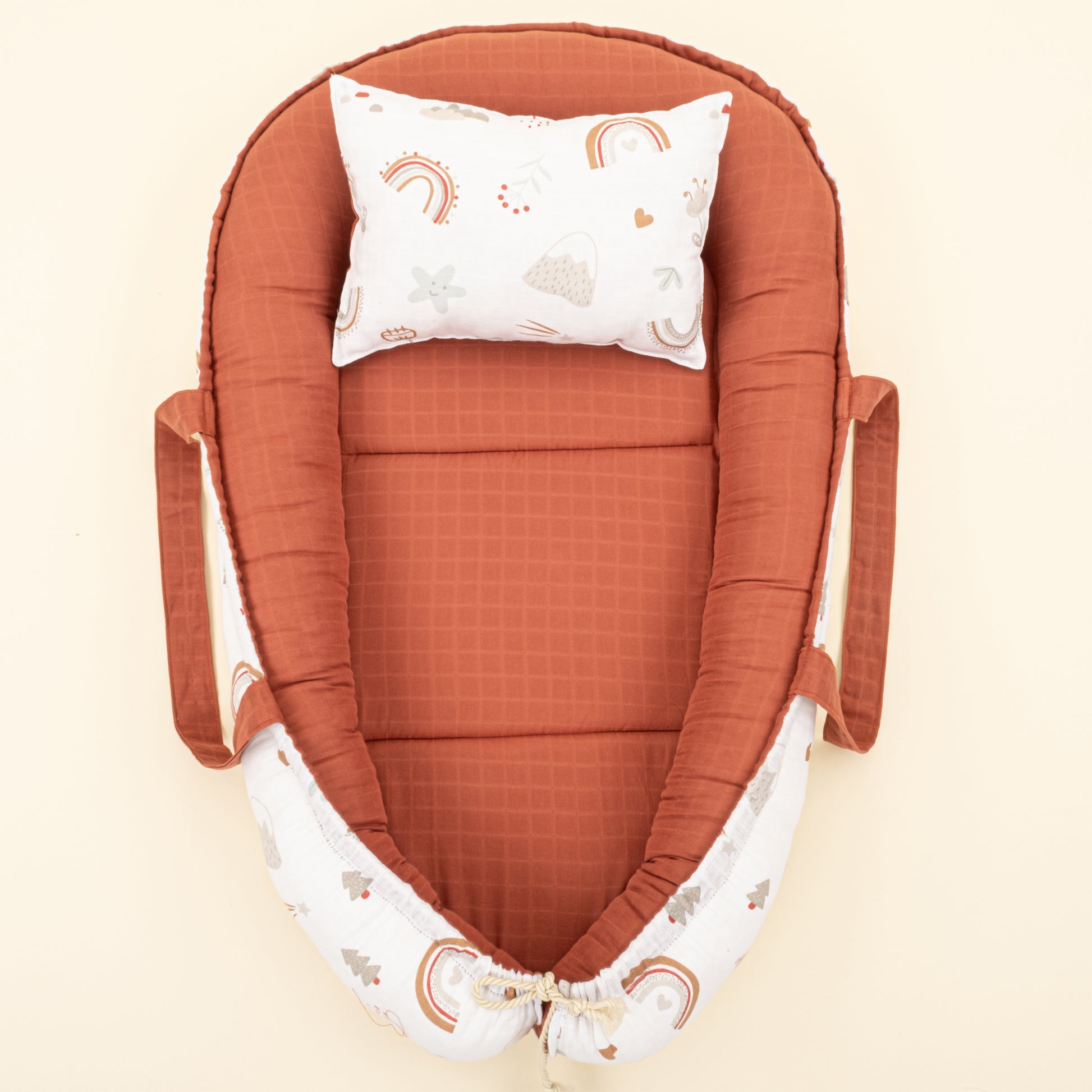 Babynest ve Yastık- Çift Taraflı - Koyu Kiremit Muslin - Kahverengi Gökkuşağı