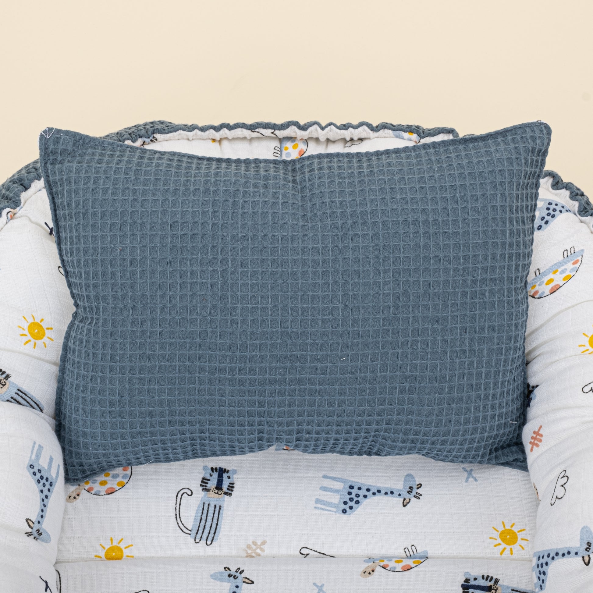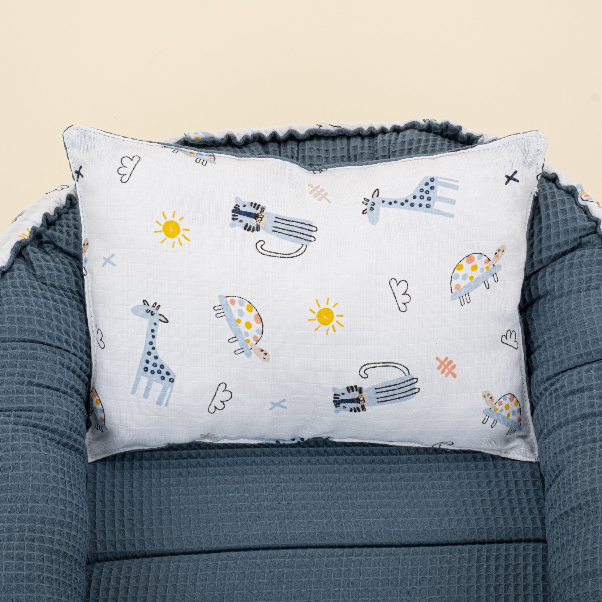 Babynest ve Yastık - Çift Taraflı - Koyu Mavi Petek - Mavi Canlılar