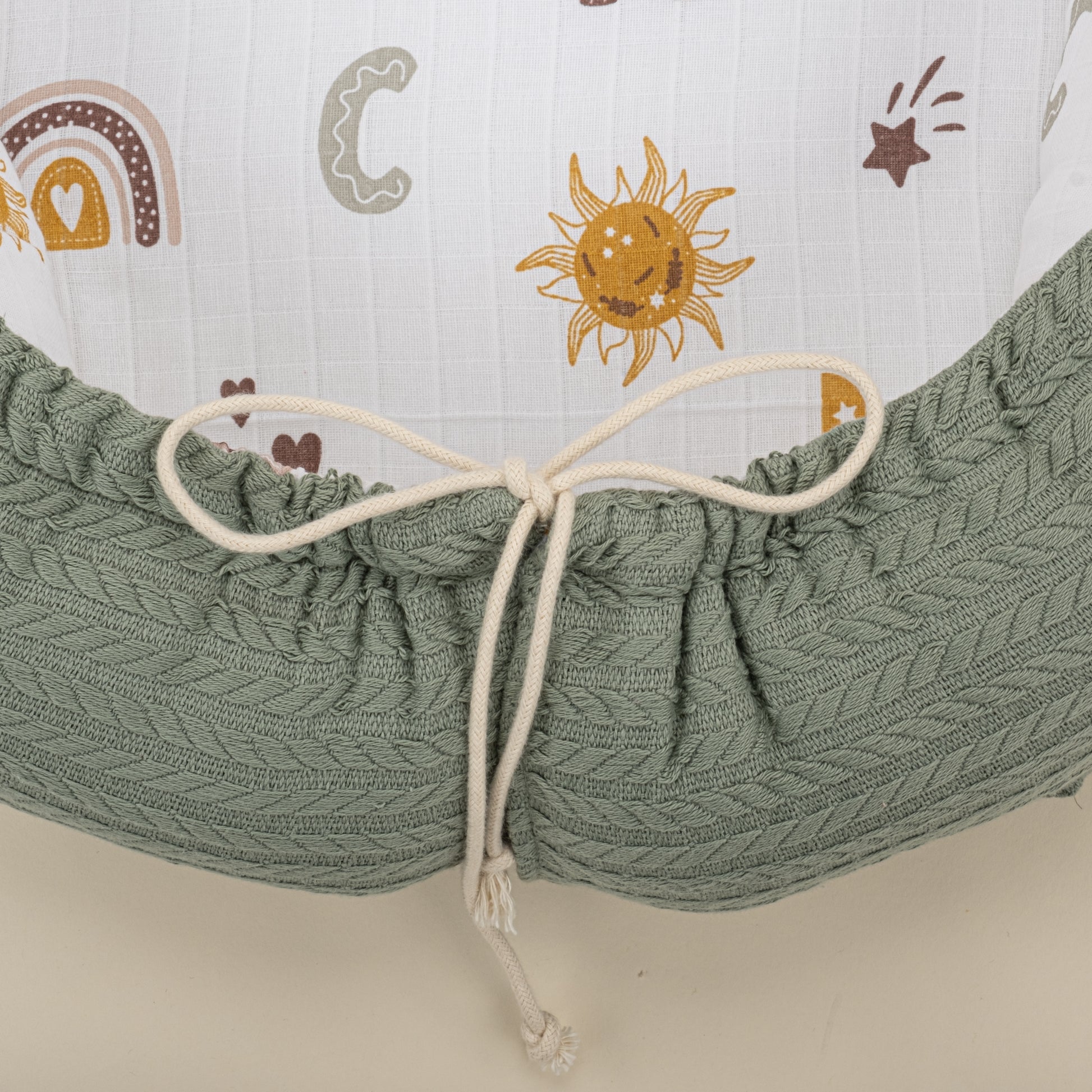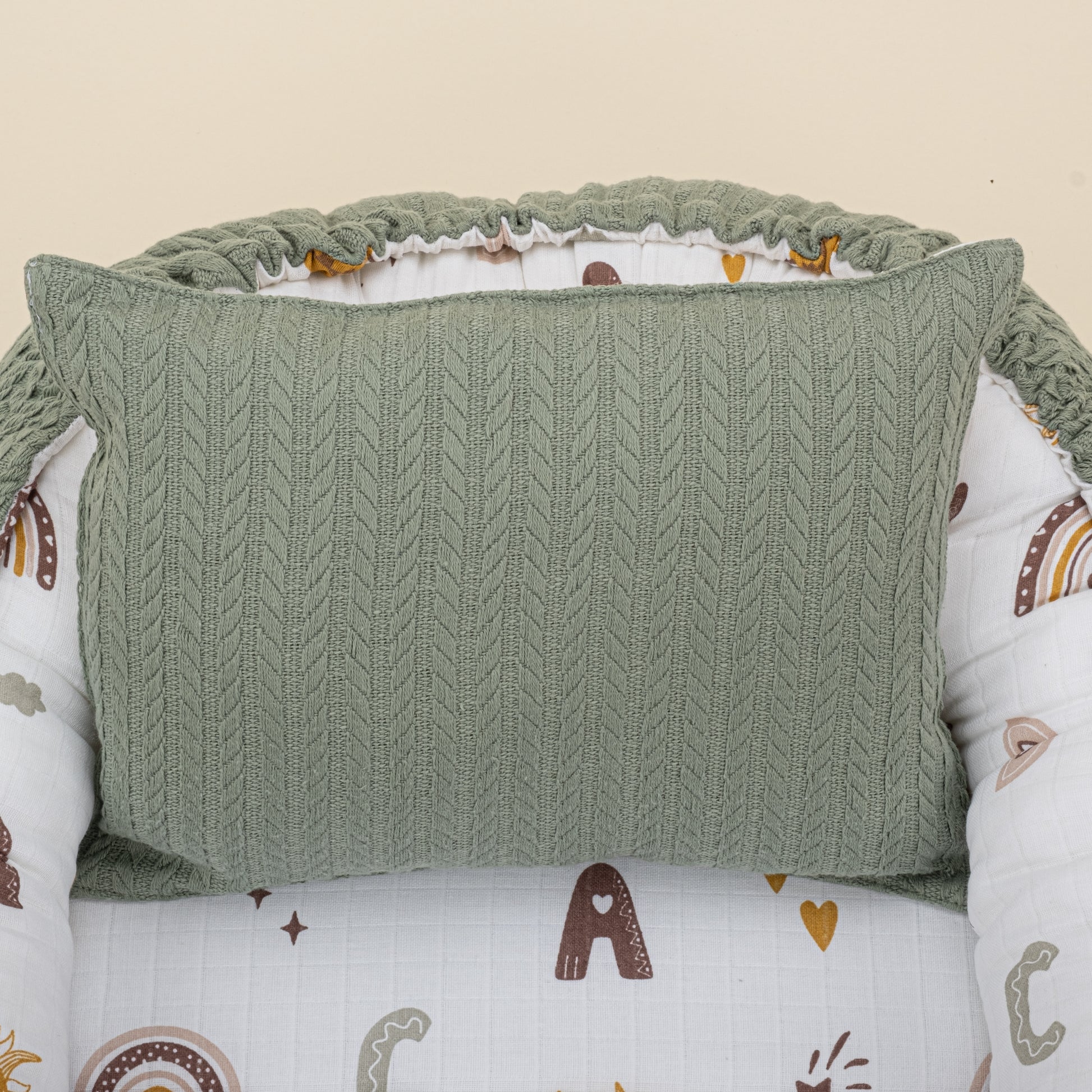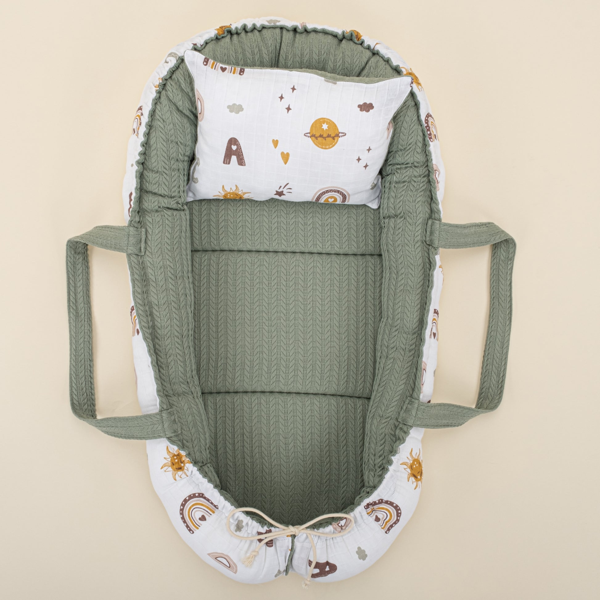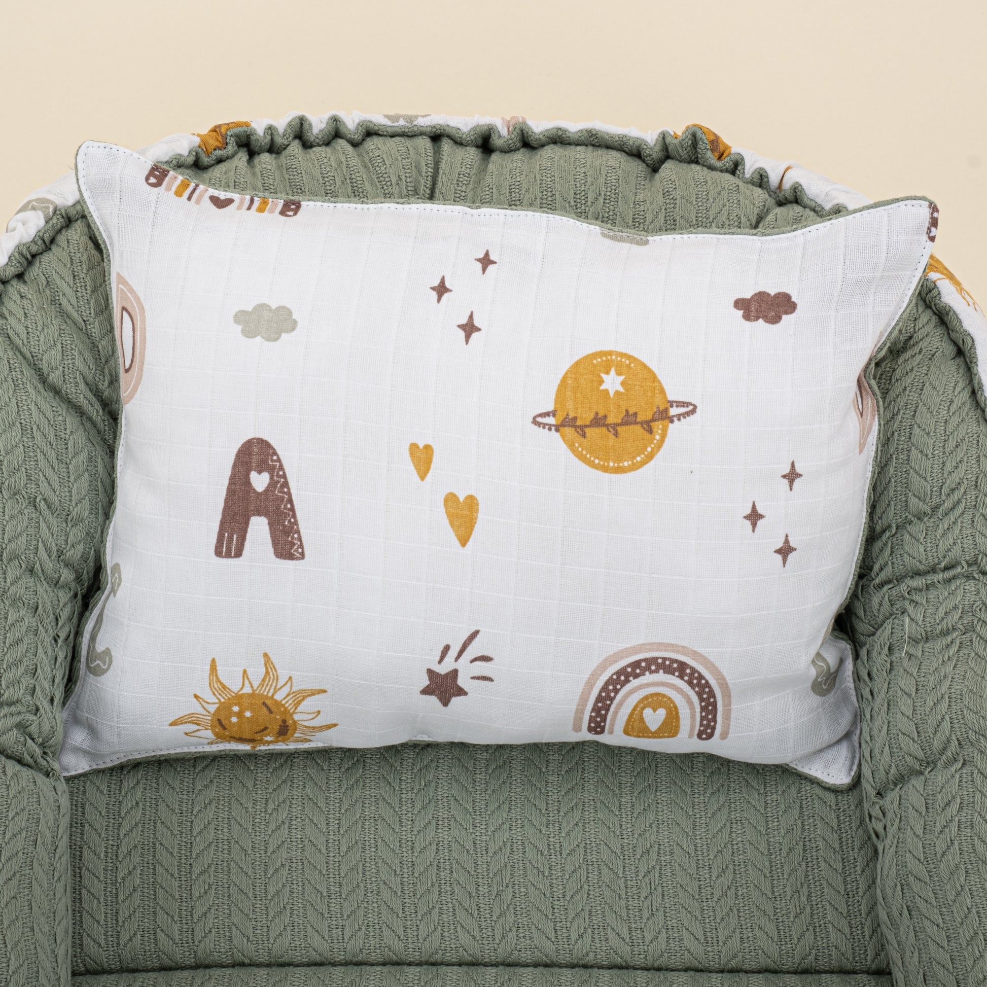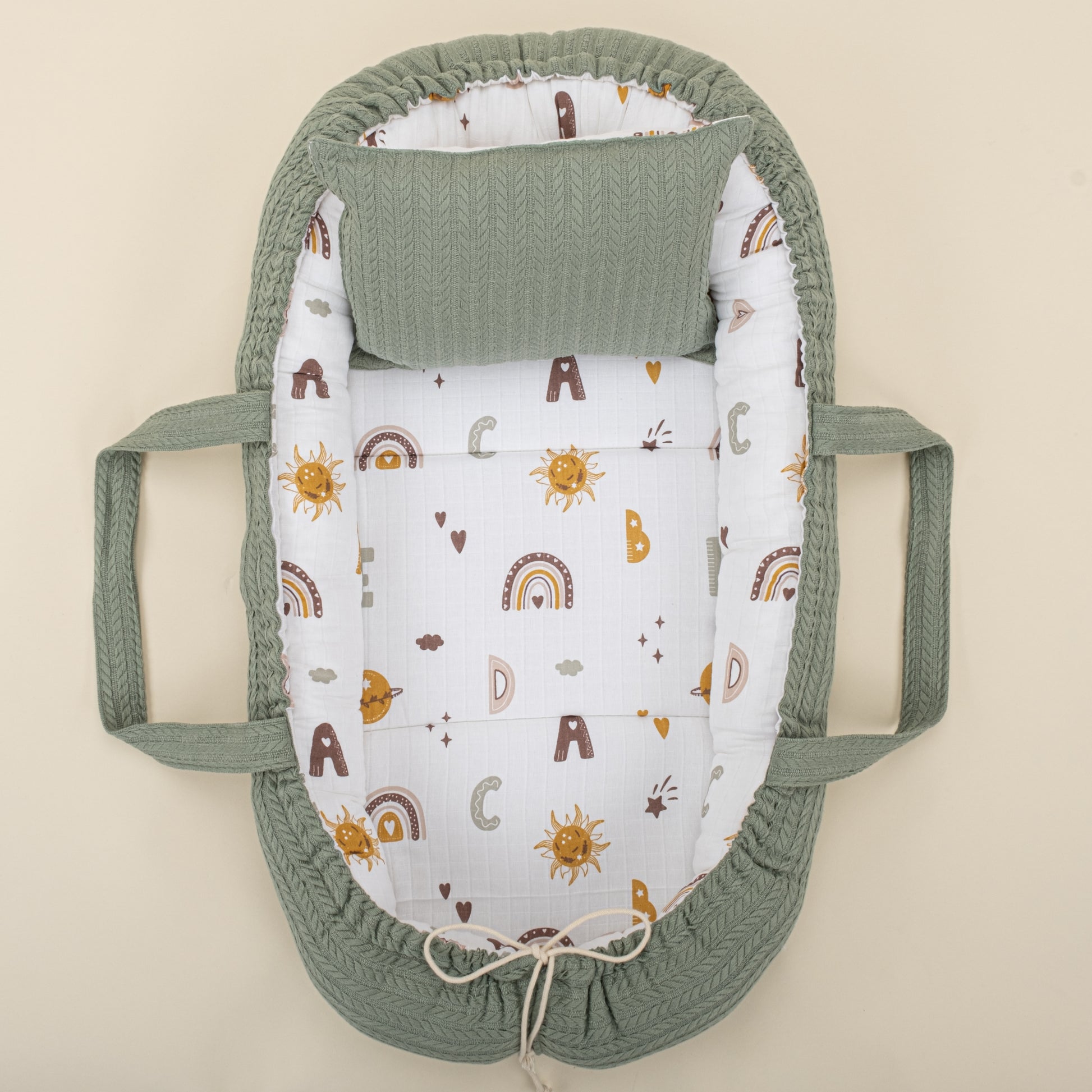 Babynest ve Yastık- Çift Taraflı - Koyu Yeşil Örgü - Galaksi ve Harfler