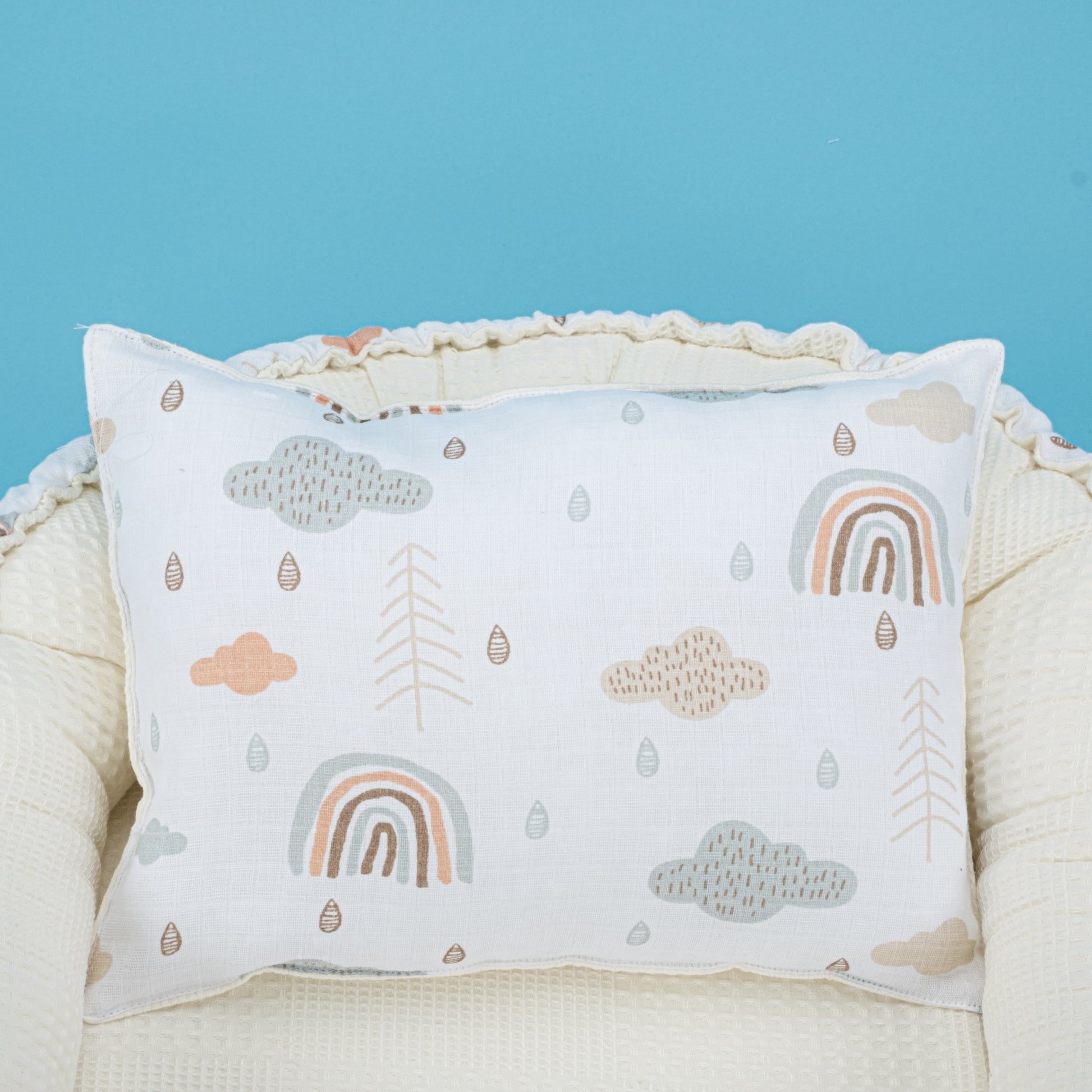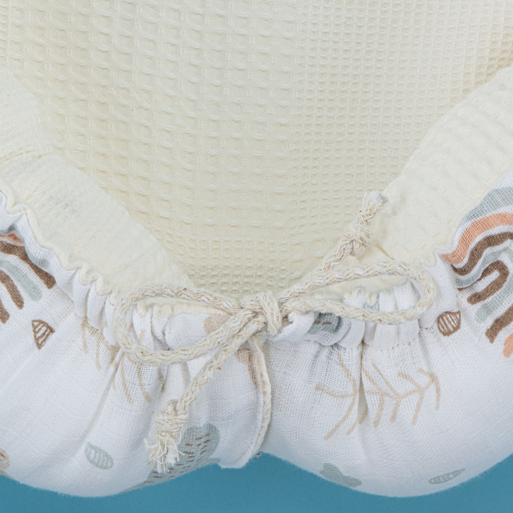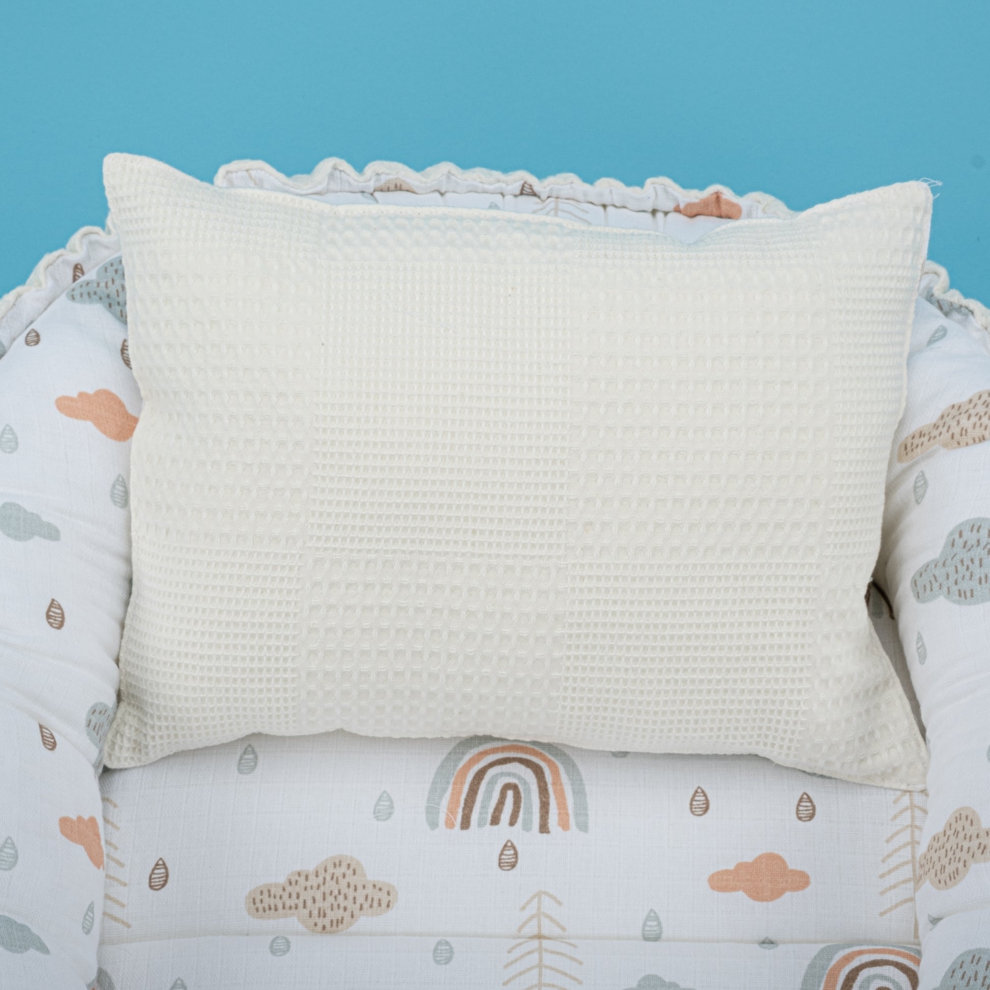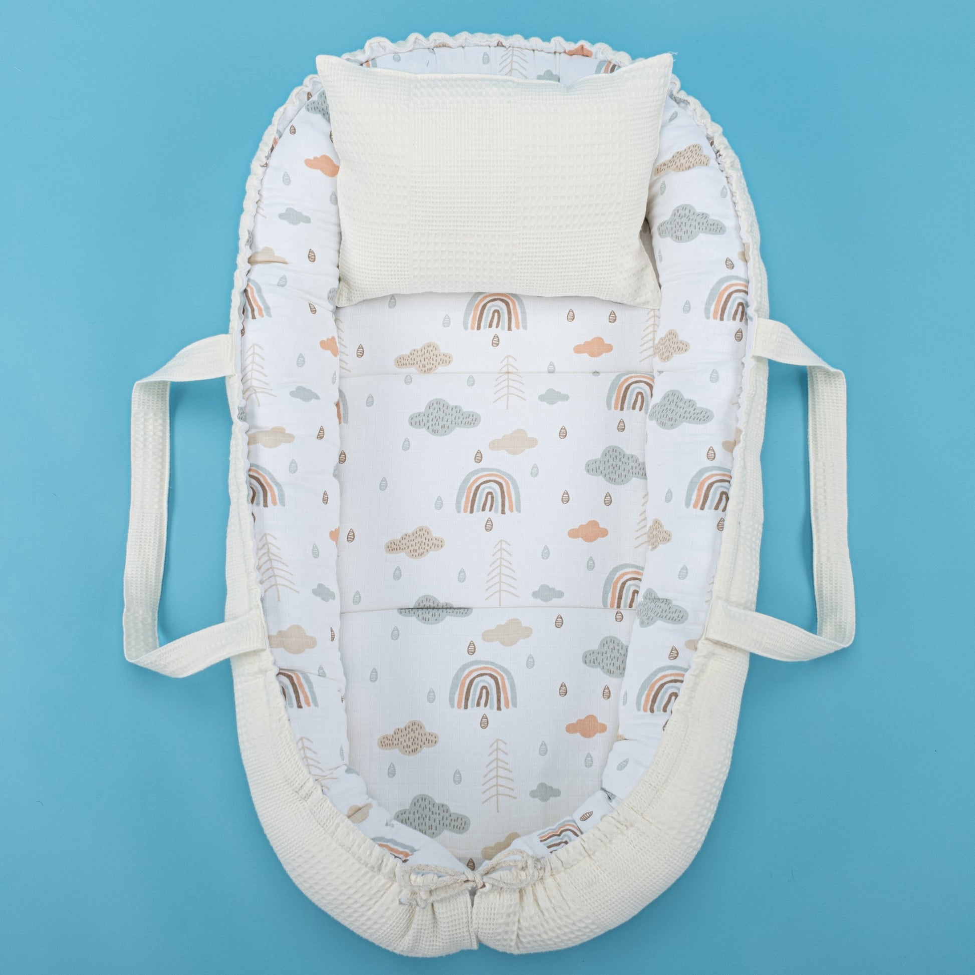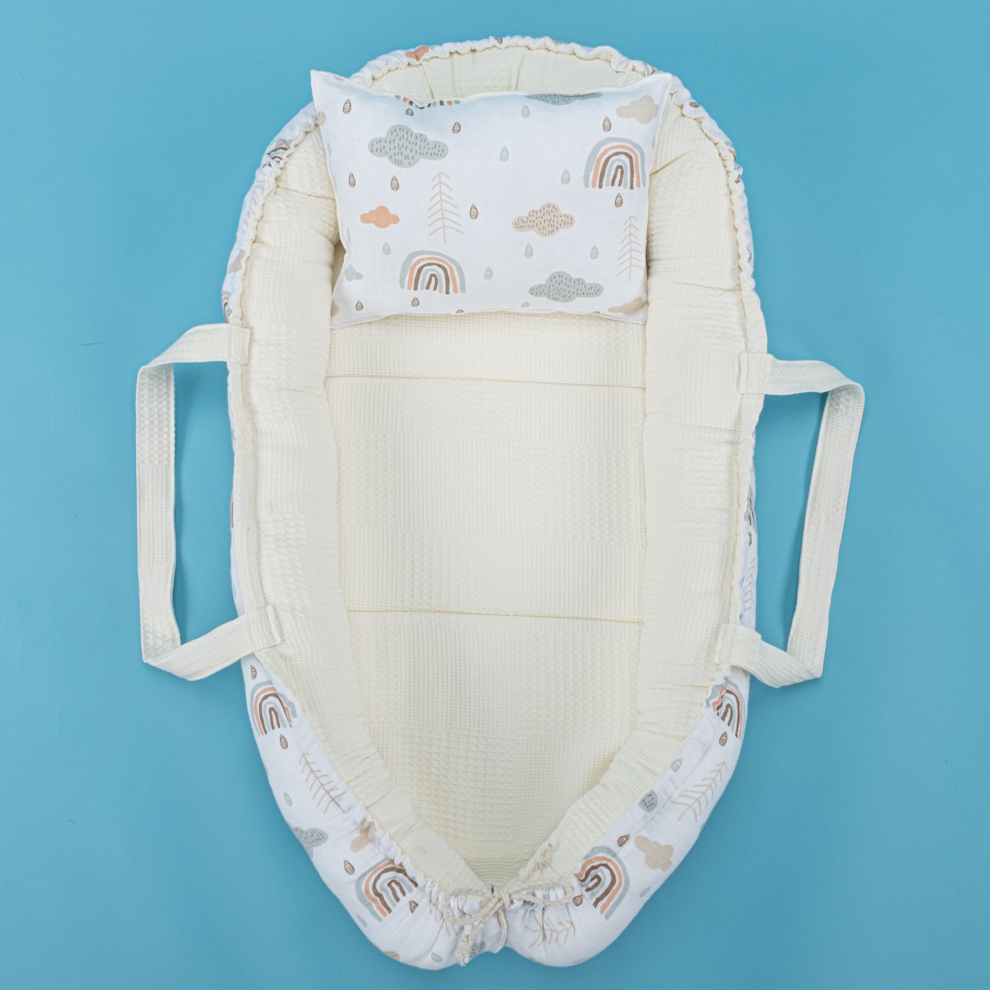 Babynest ve Yastık - Çift Taraflı - Krem Waffle - Yeşil Gökkuşağı