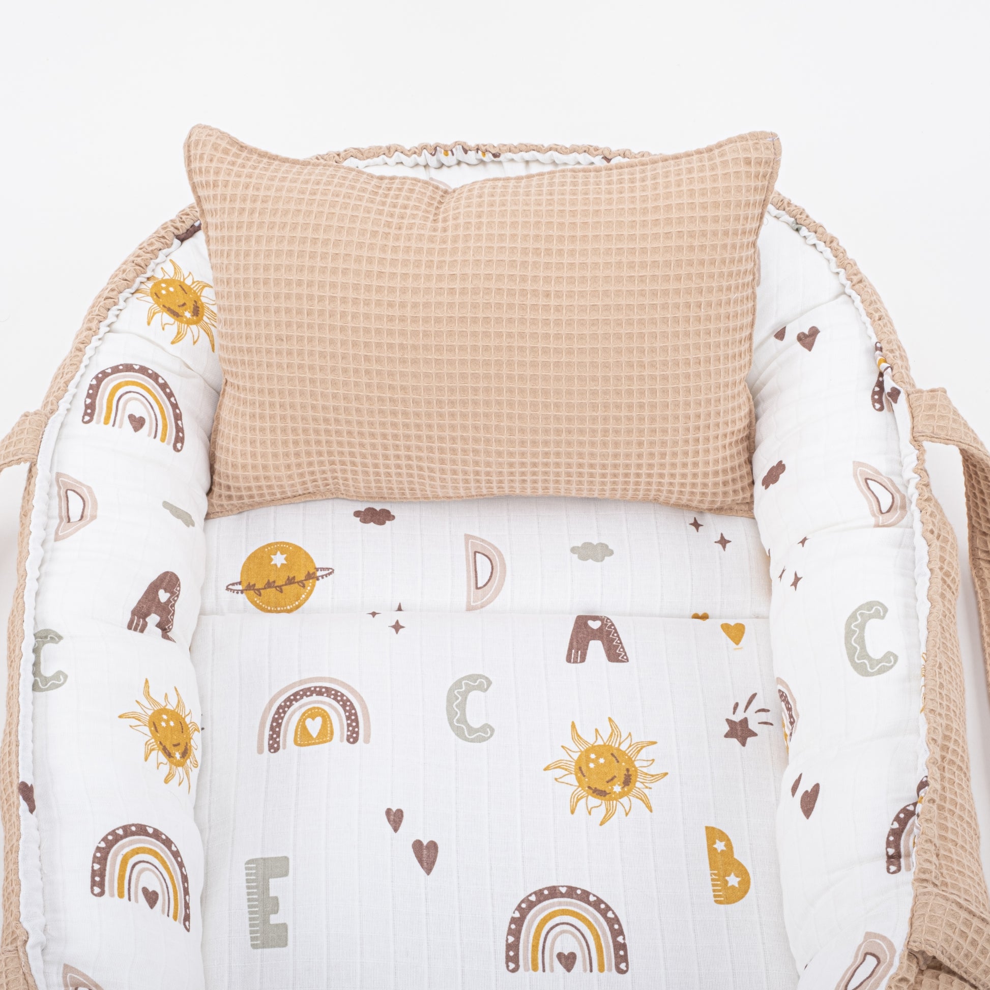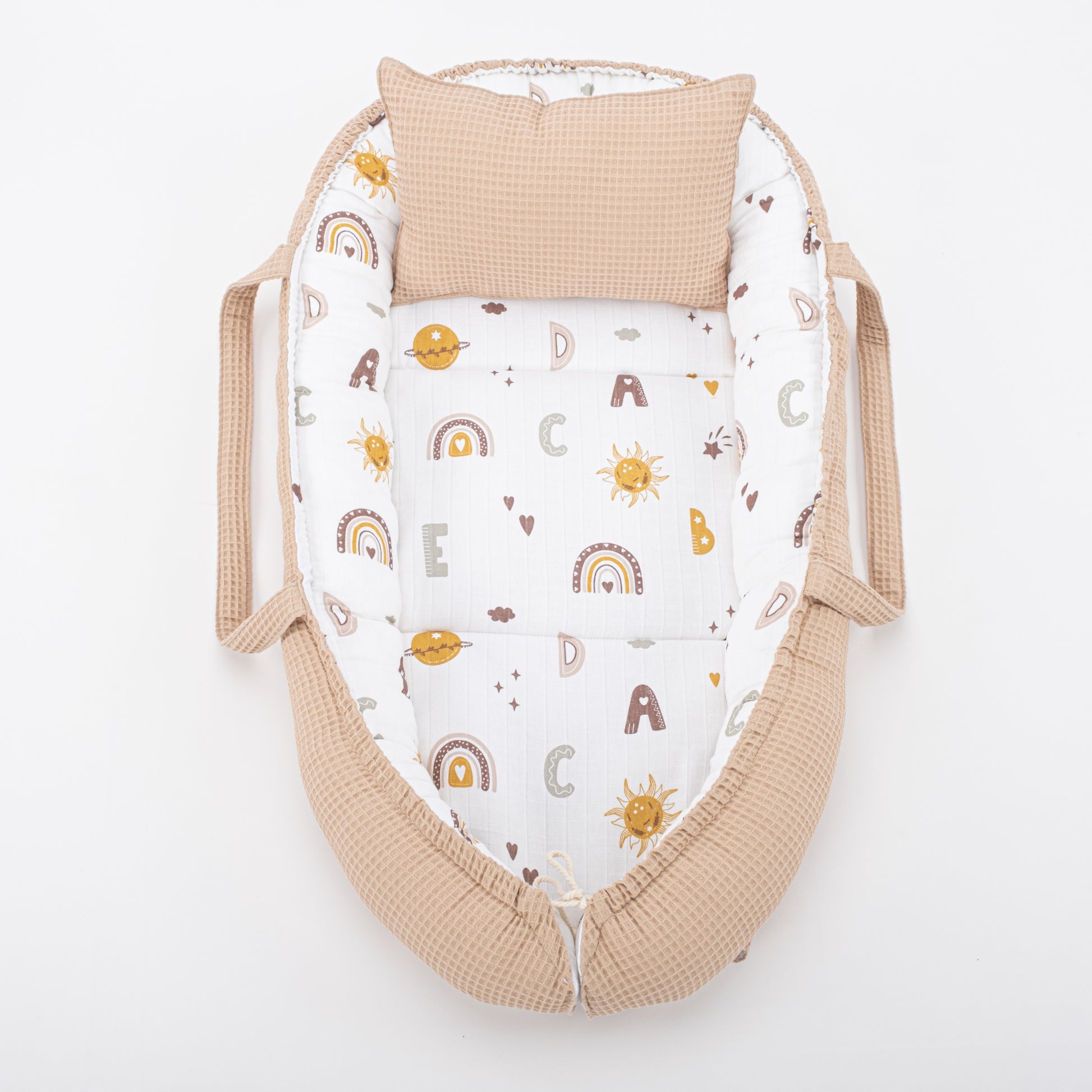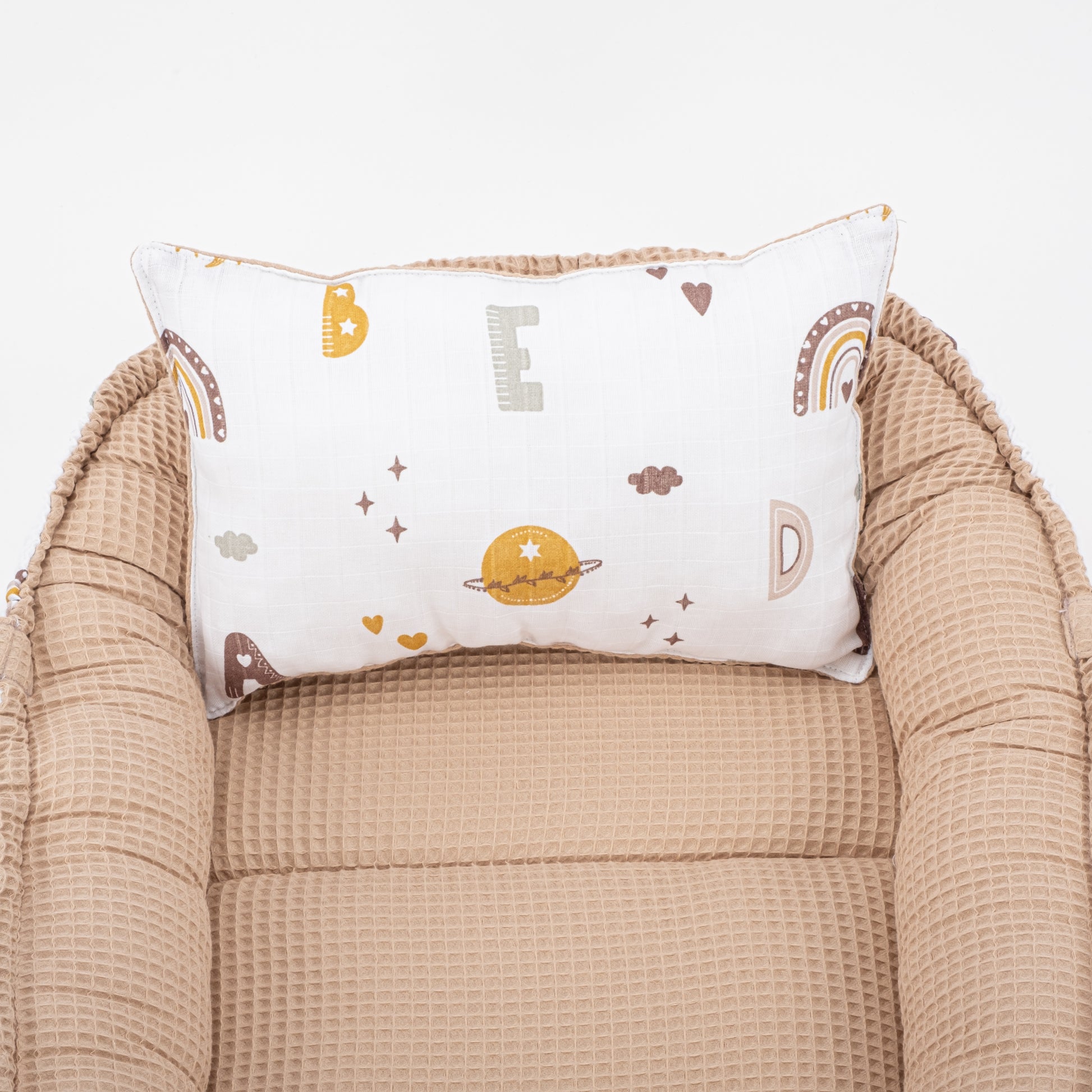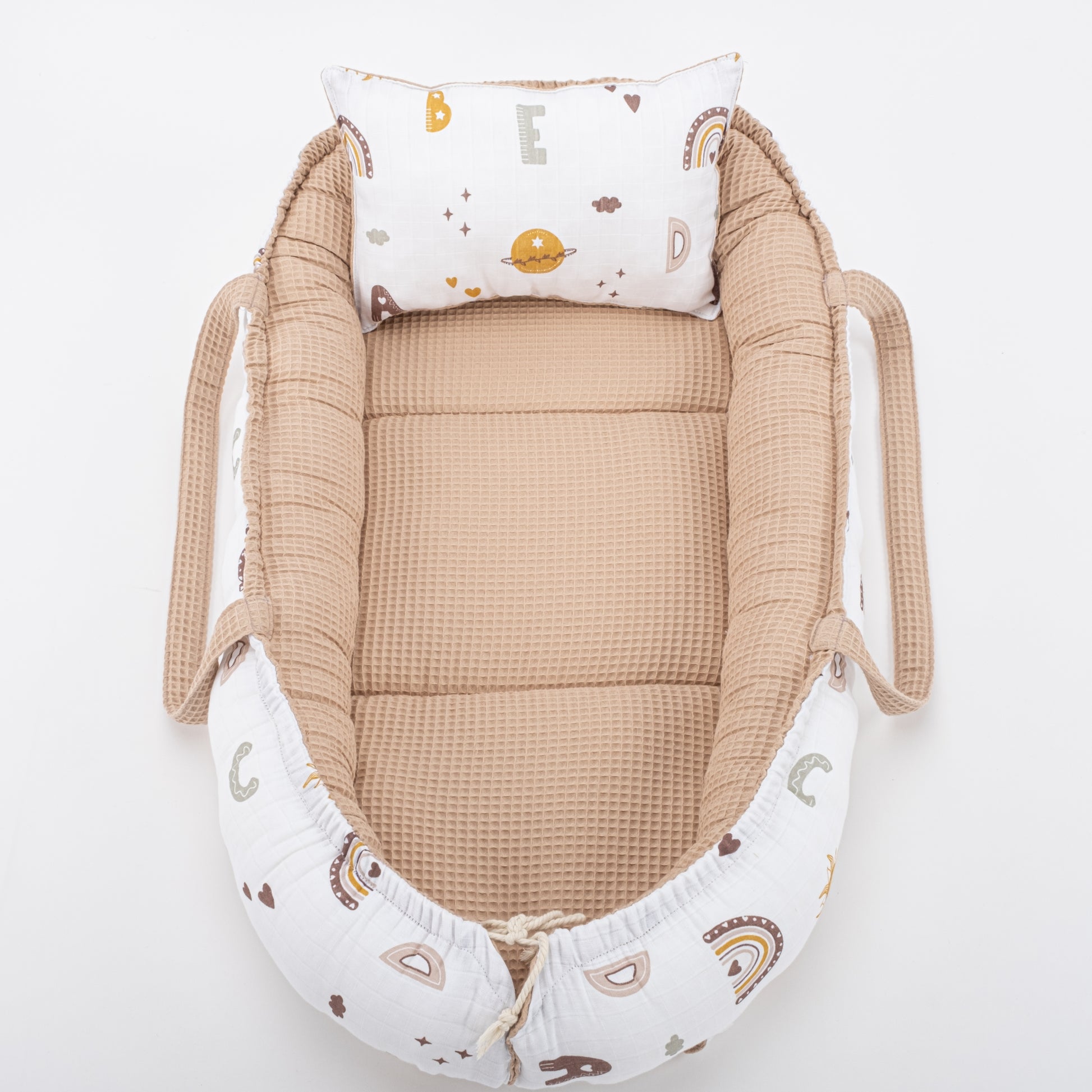 Babynest ve Yastık - Çift Taraflı - Kumsal Beji Petek - Galaksi ve Harfler