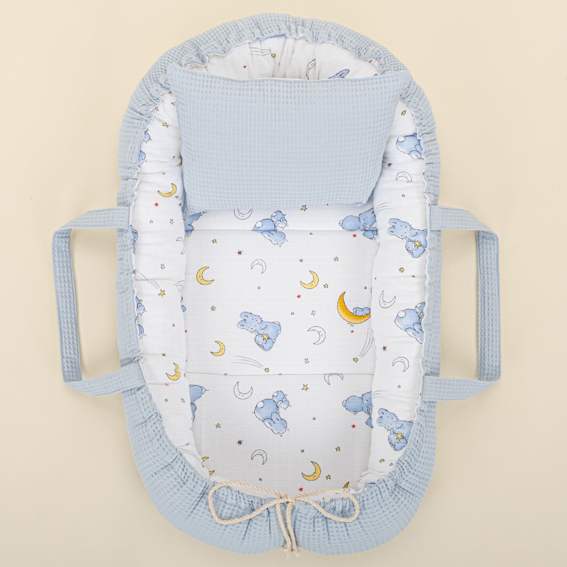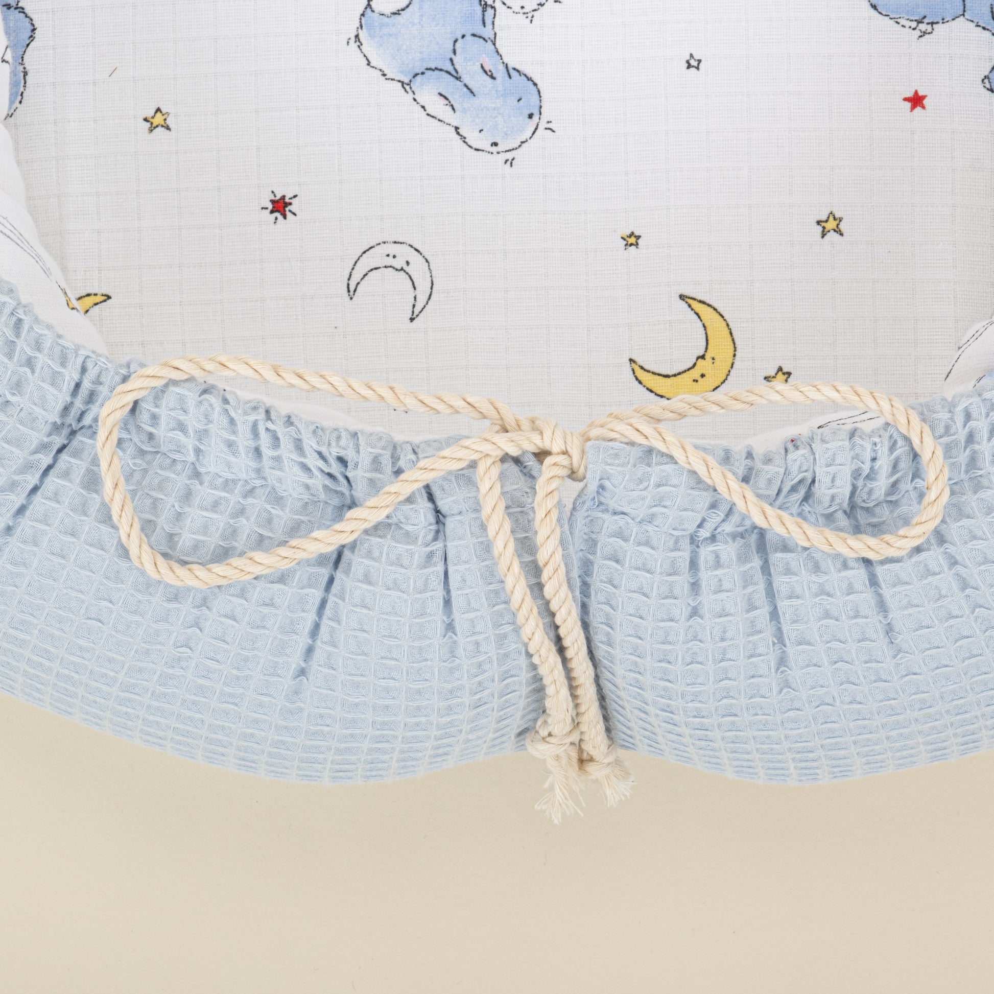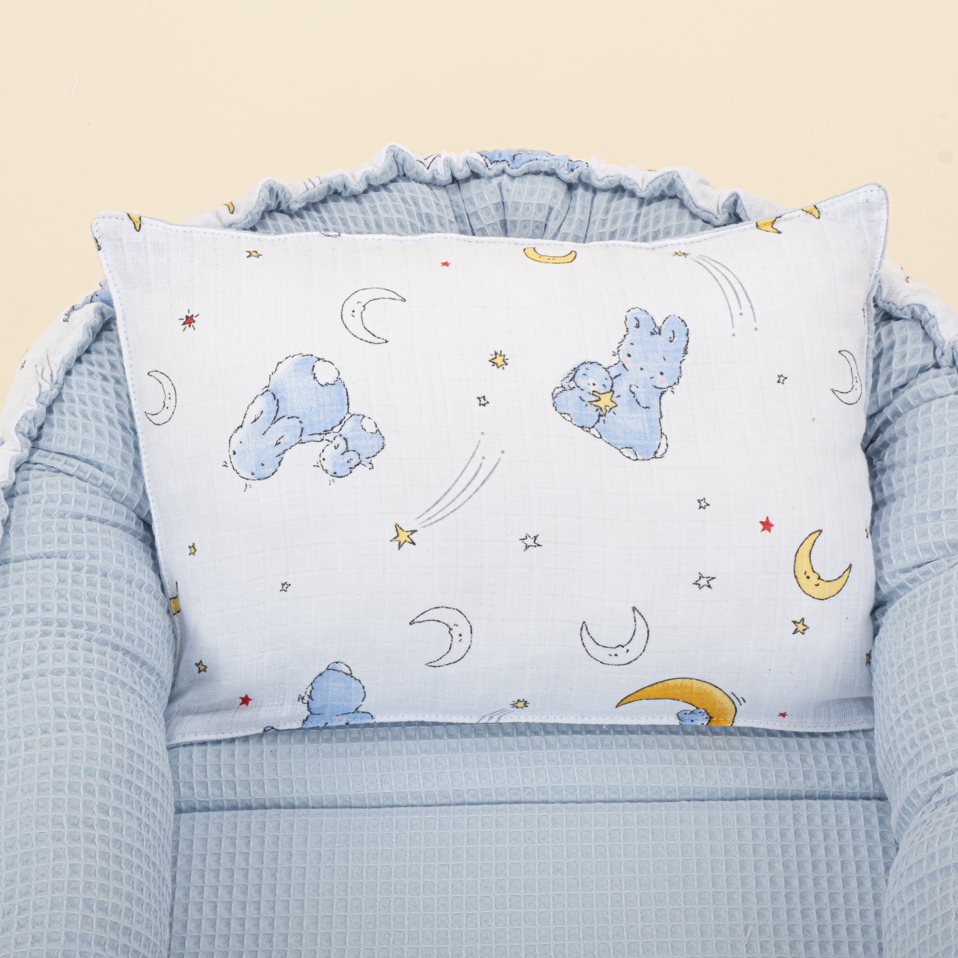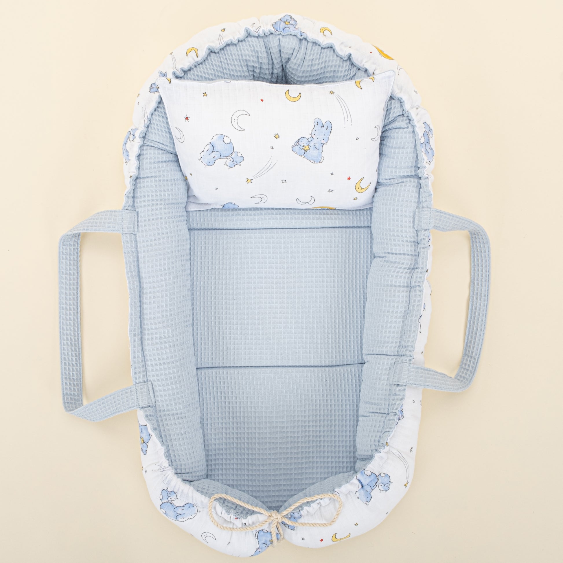 Babynest ve Yastık- Çift Taraflı - Mavi Petek - Mavi Tavşan