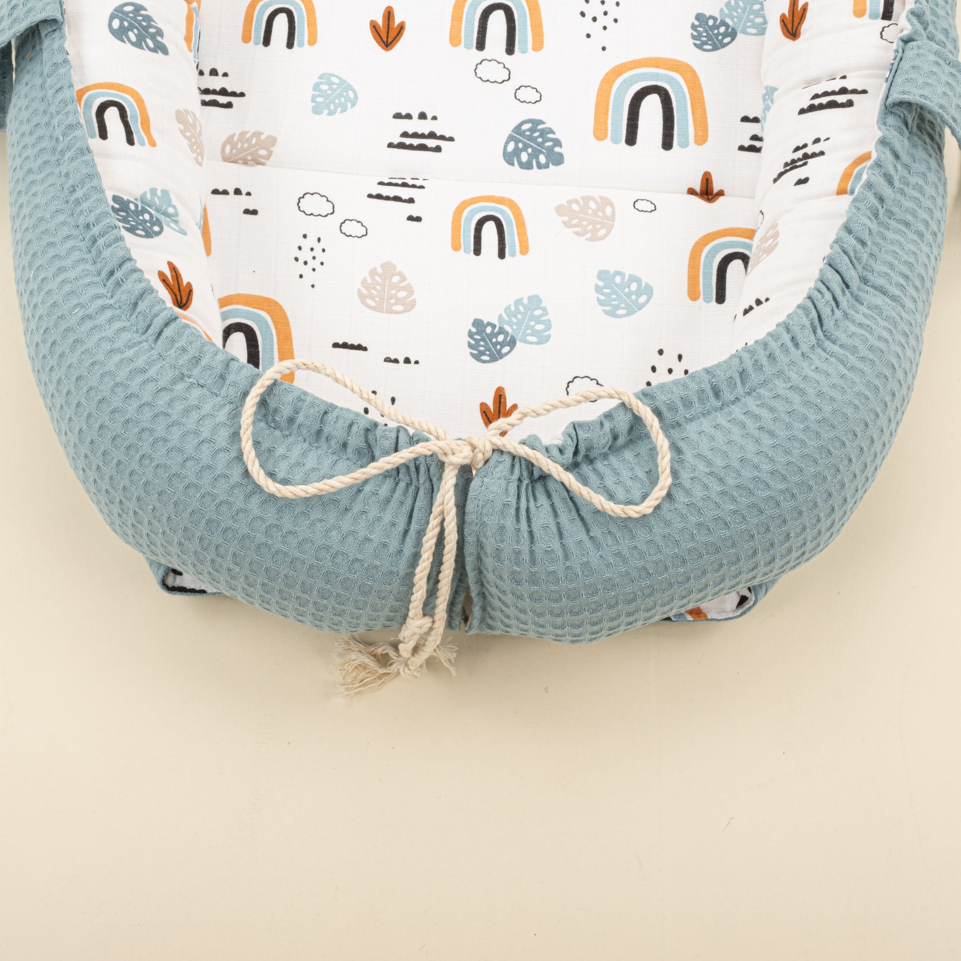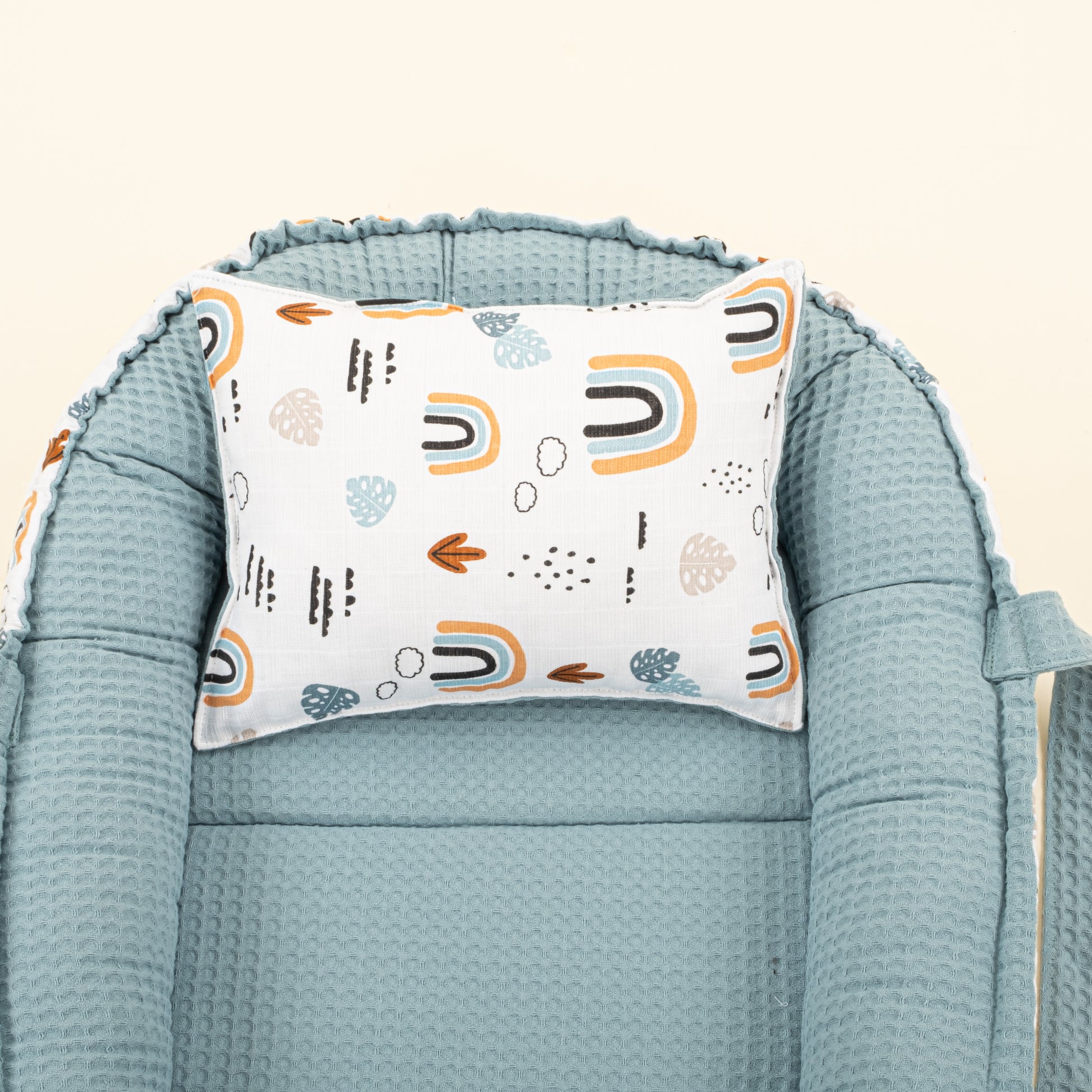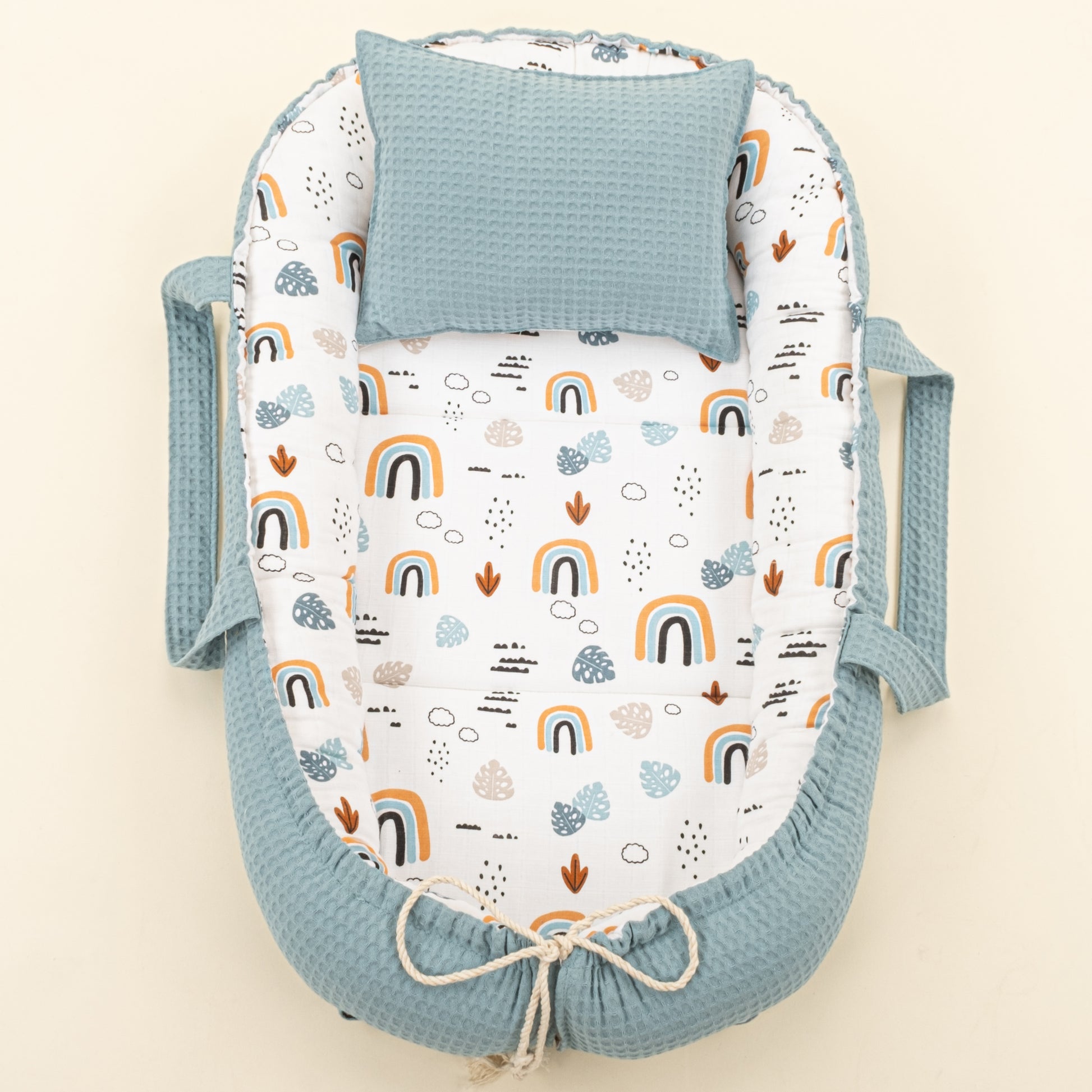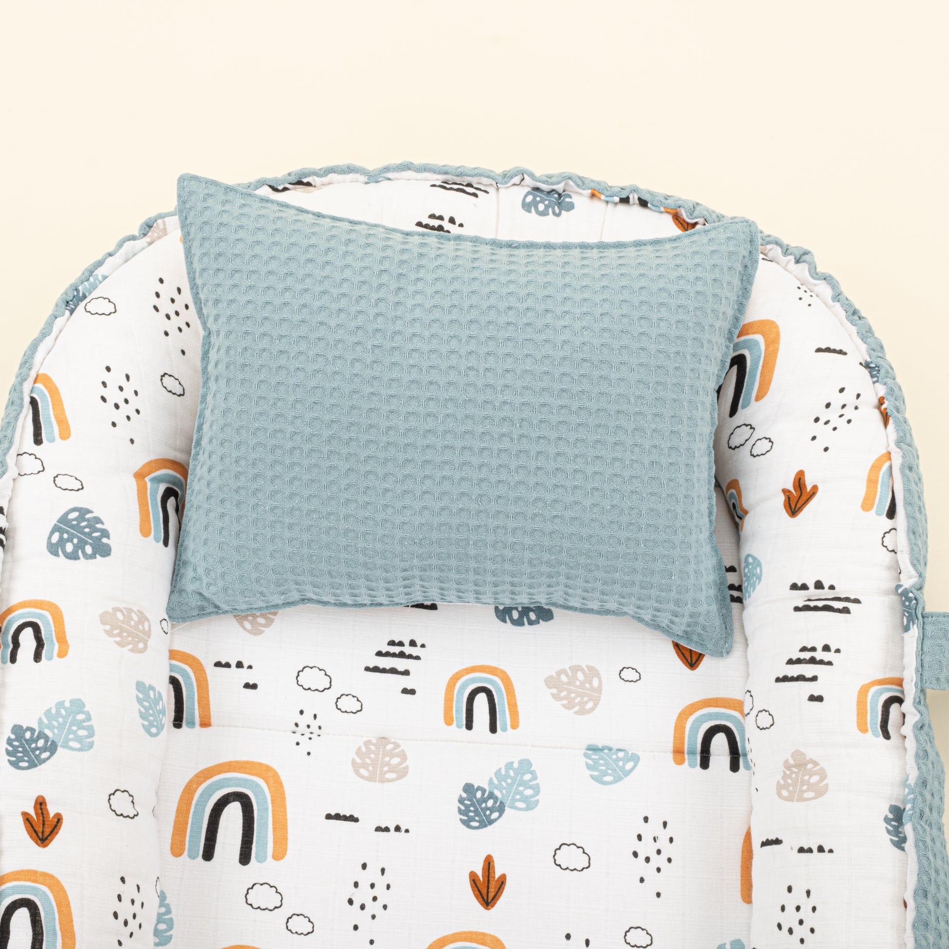 Babynest ve Yastık - Çift Taraflı - Petrol Mavisi Petek - Petrol Mavisi Gökkuşağı