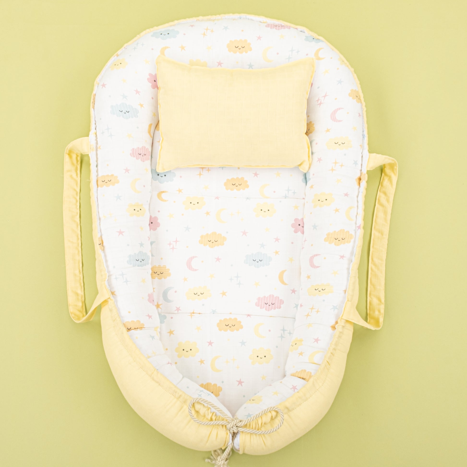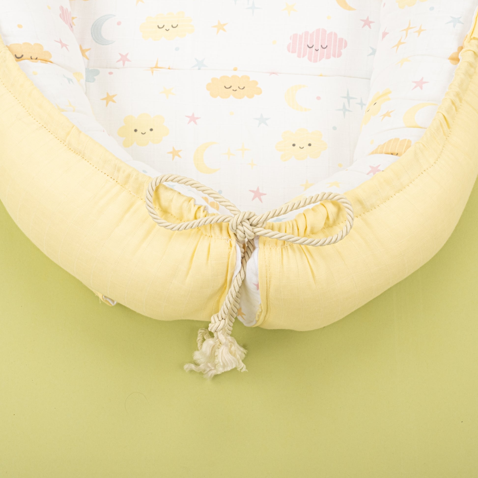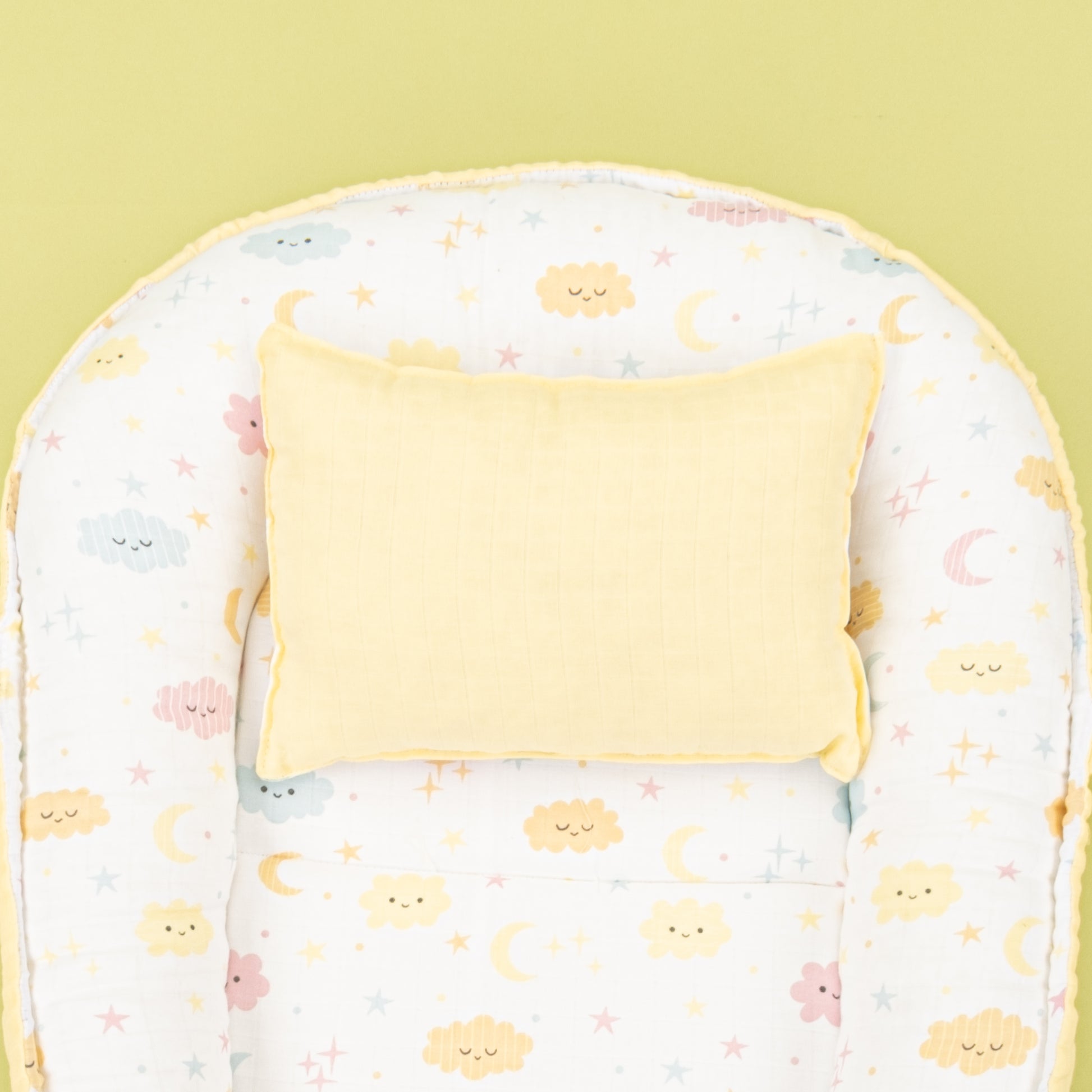 Babynest ve Yastık - Çift Taraflı - Sarı Muslin - Sarı Bulut