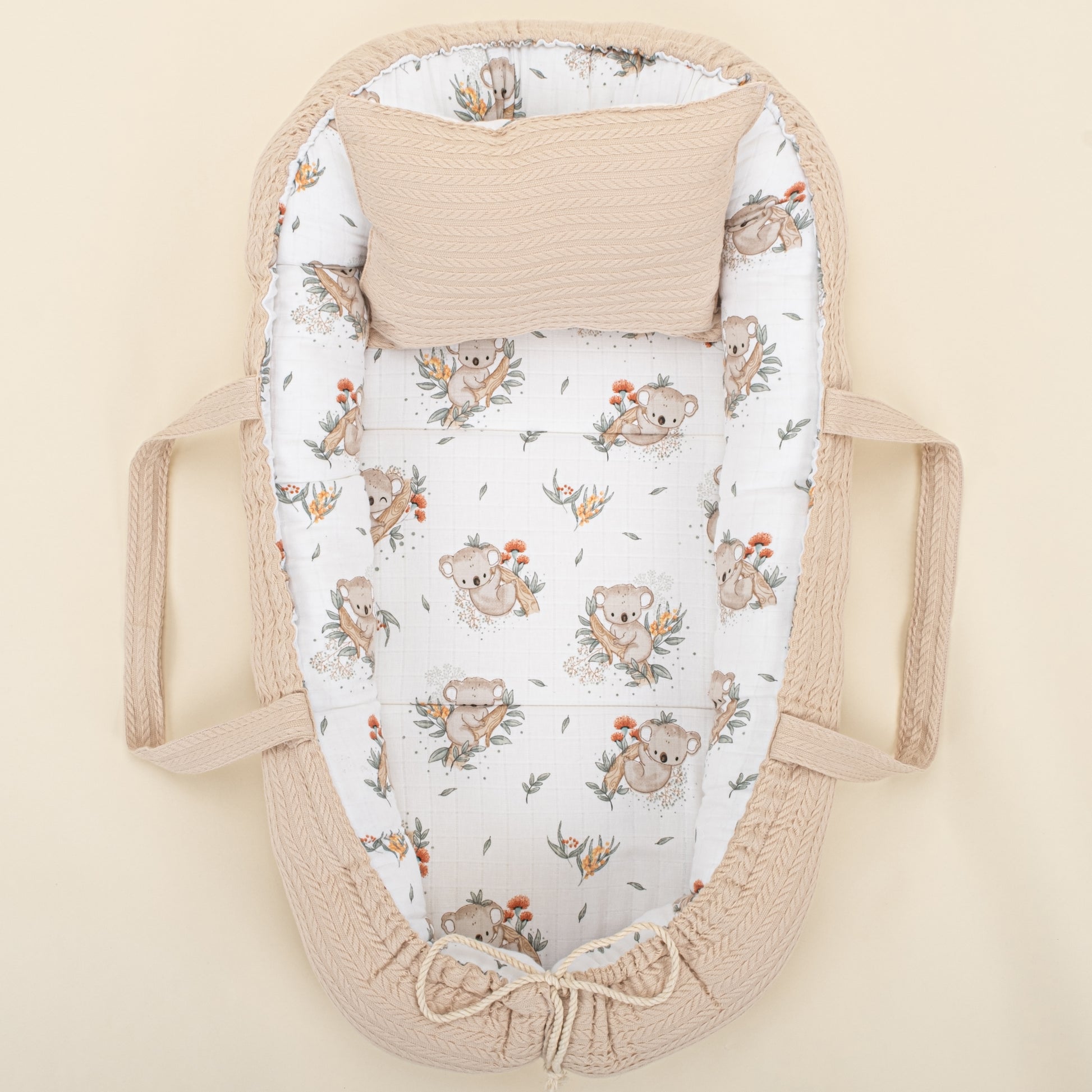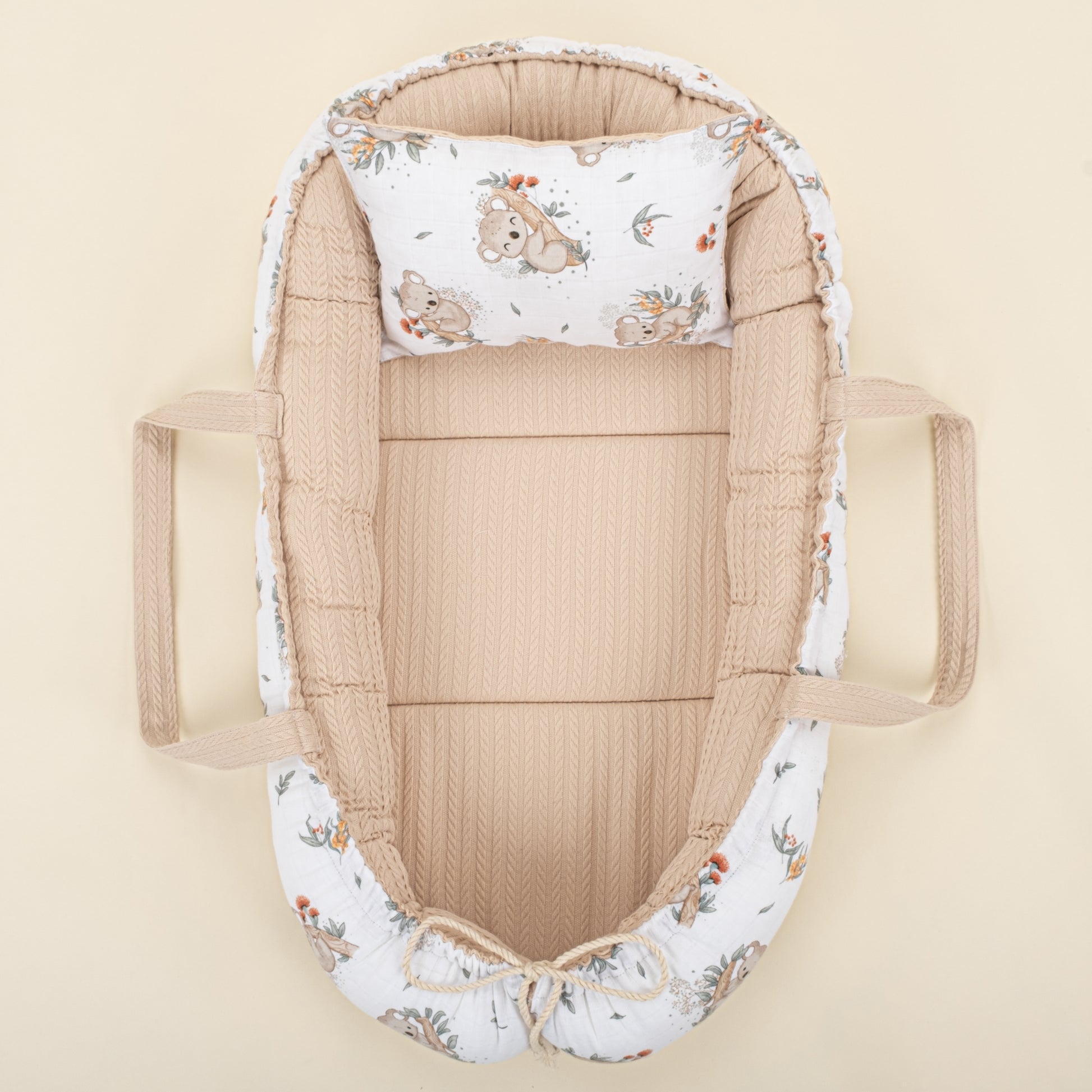 Babynest ve Yastık - Çift Taraflı - Sütlü Kahve Örgü - Koala