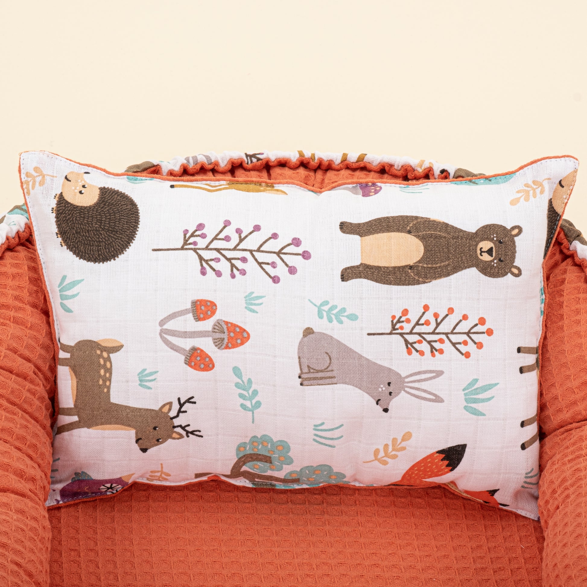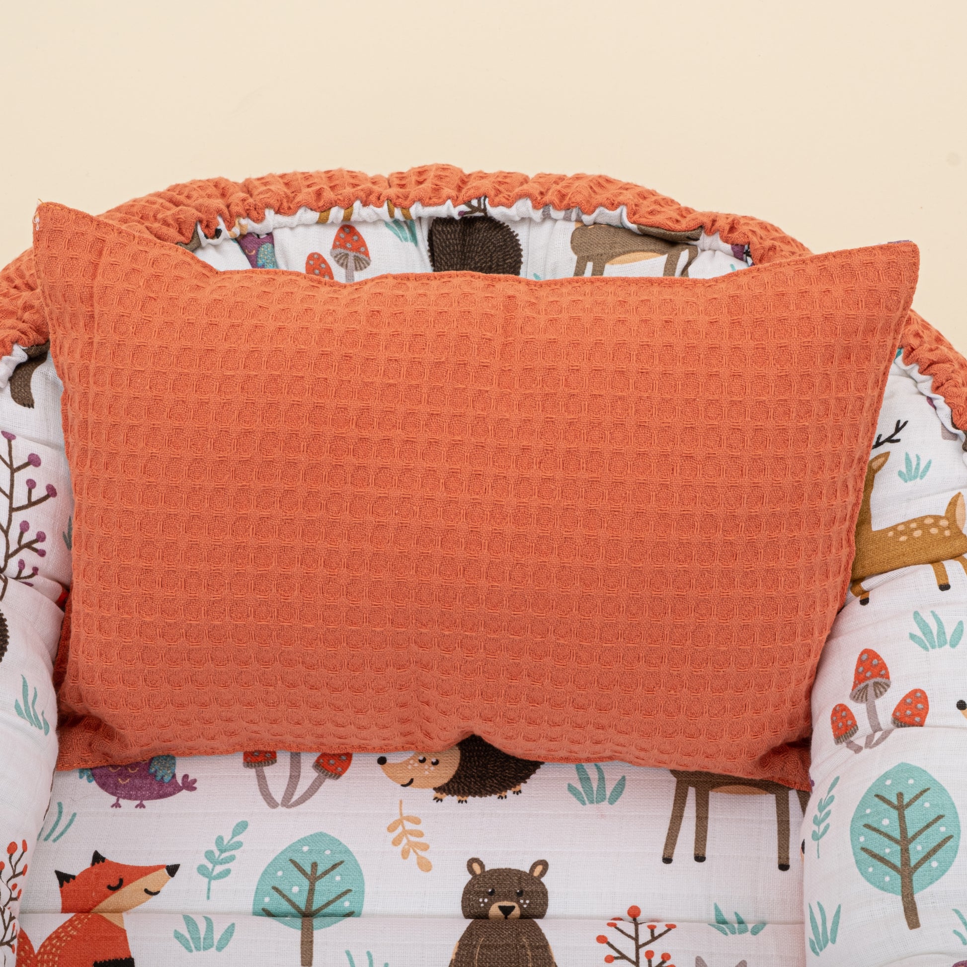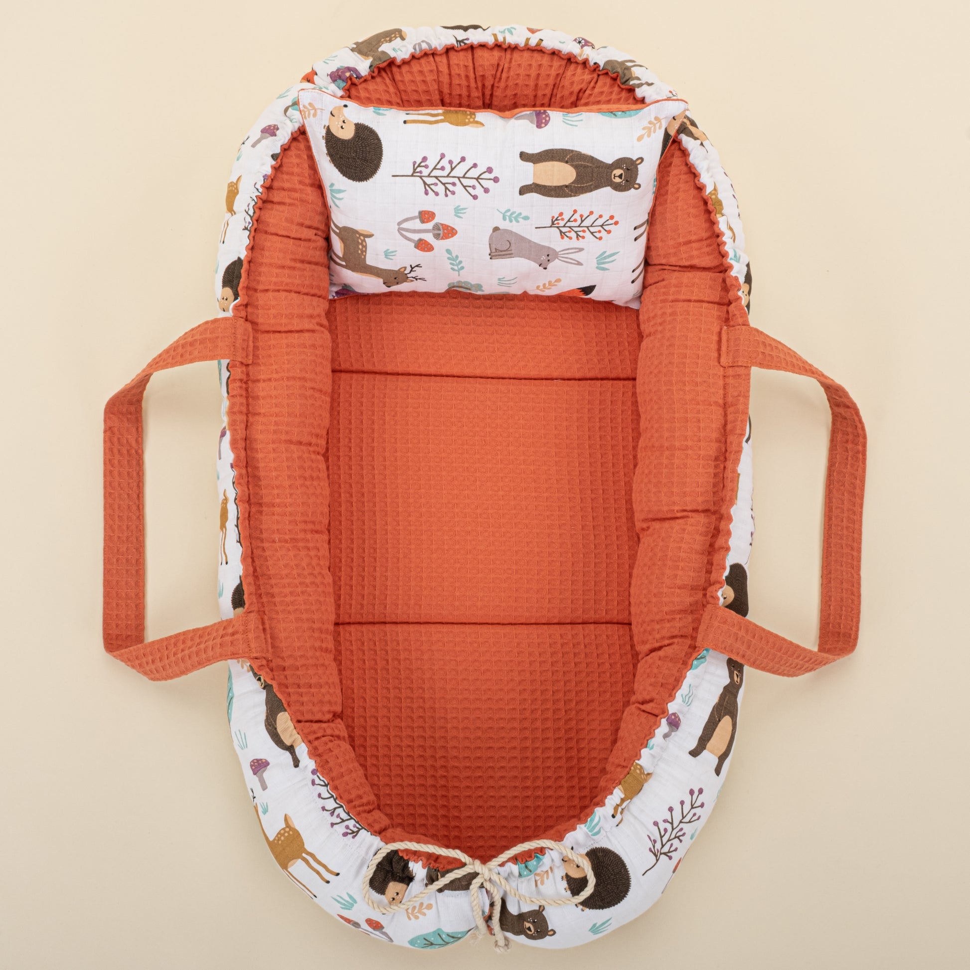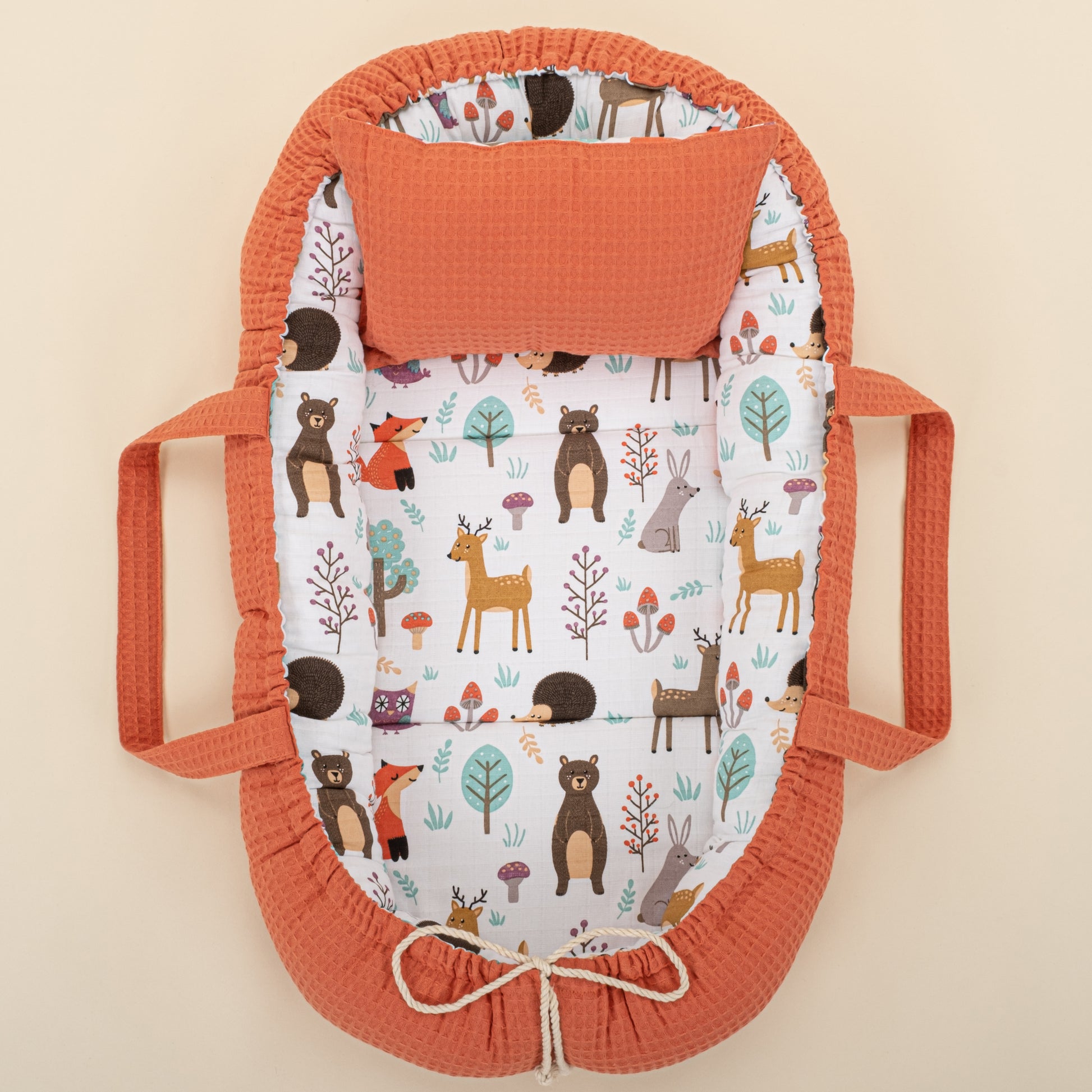 Babynest ve Yastık - Çift Taraflı - Turuncu Petek - Orman