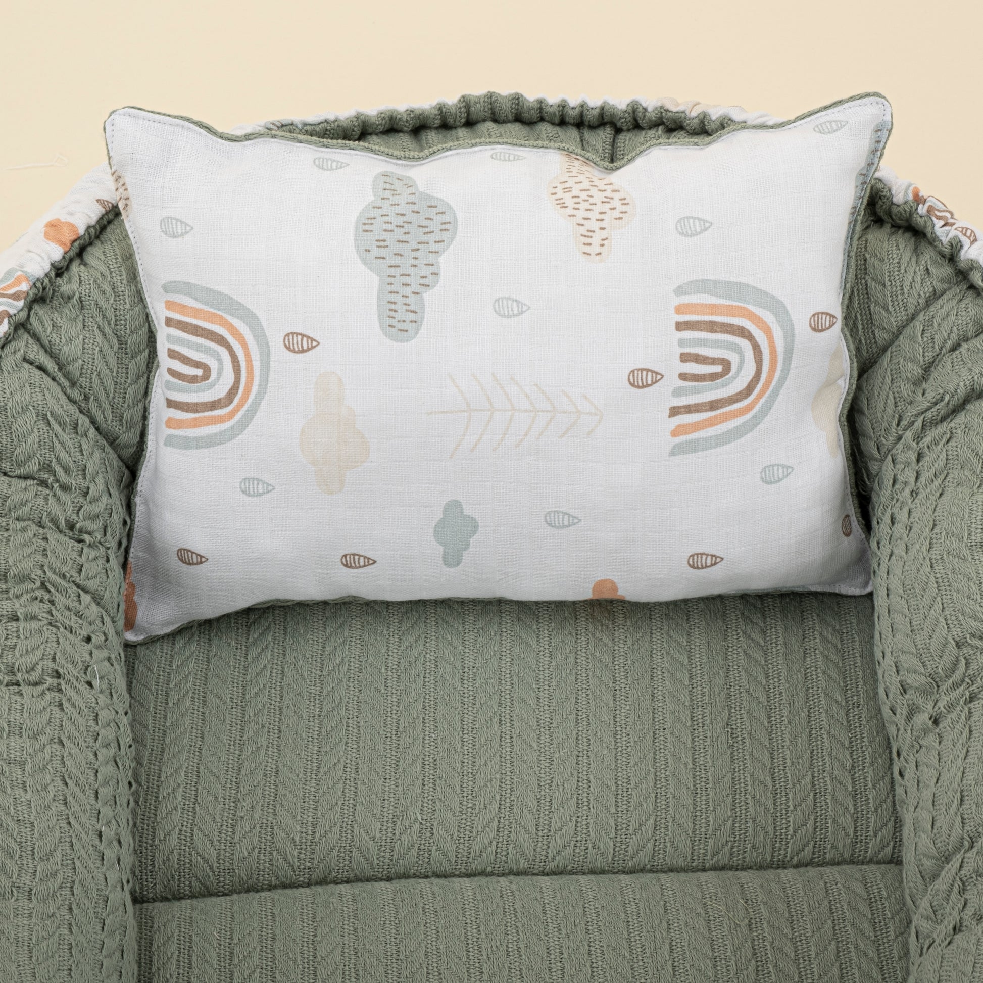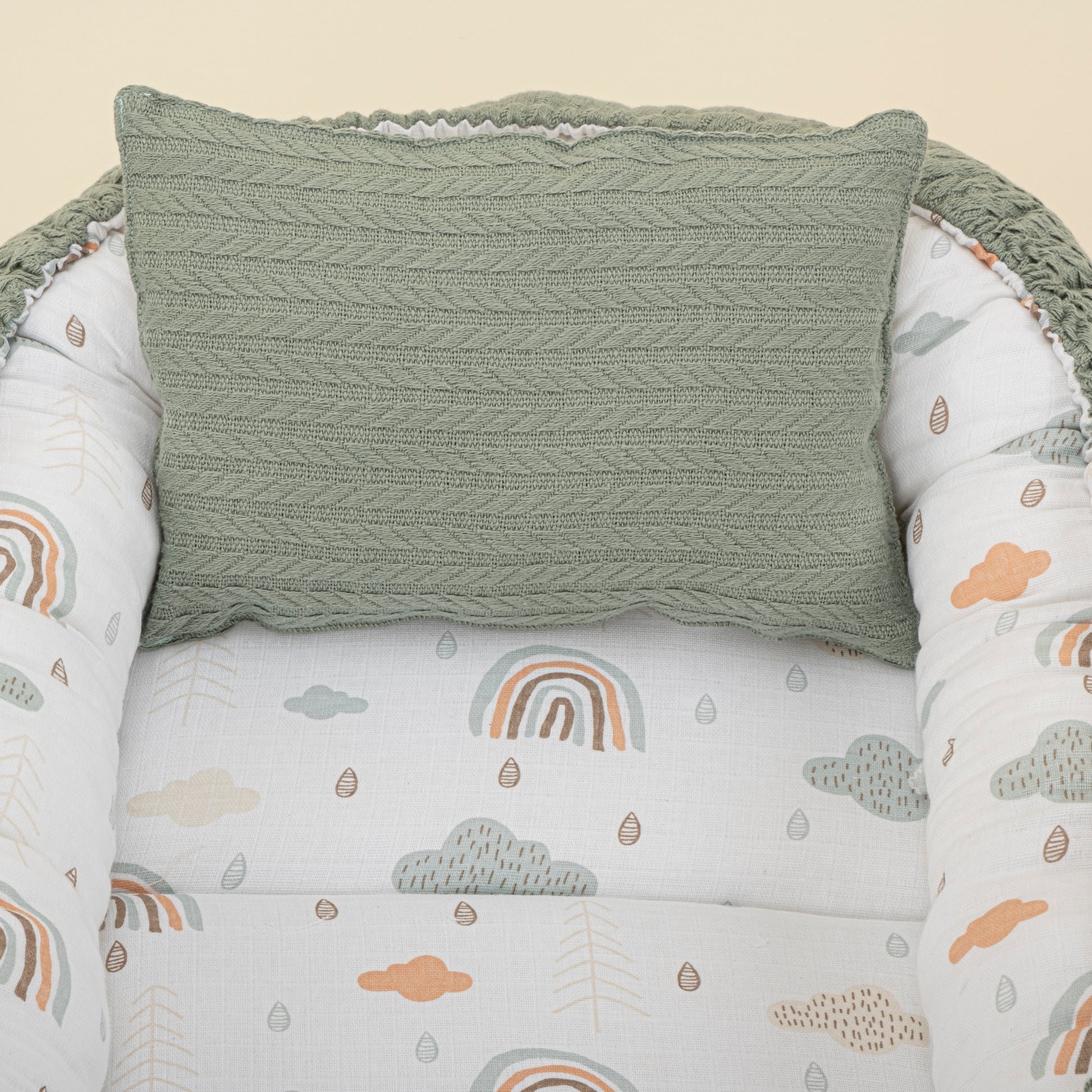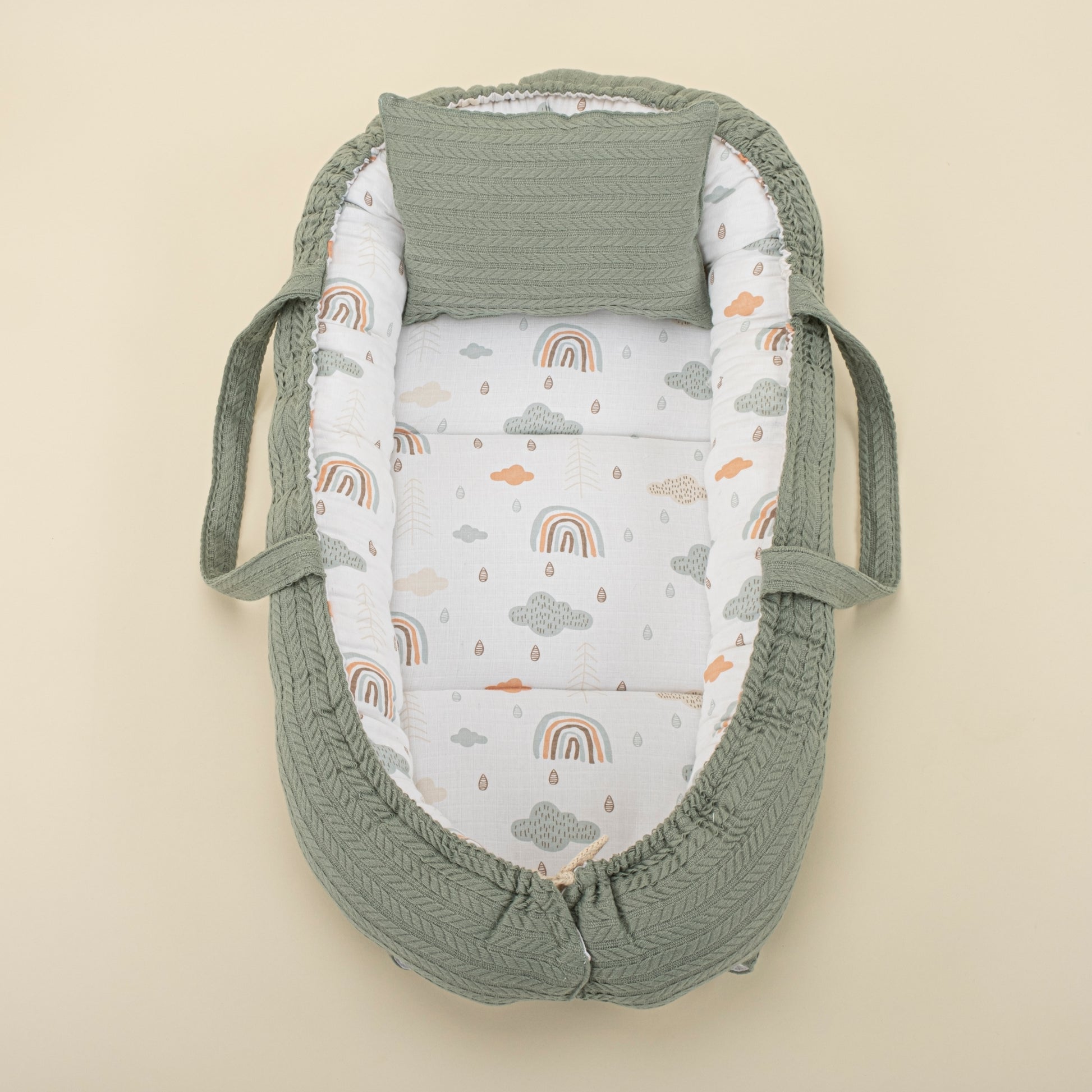 Babynest ve Yastık - Çift Taraflı - Yeşil Örgü - Yeşil Gökkuşağı