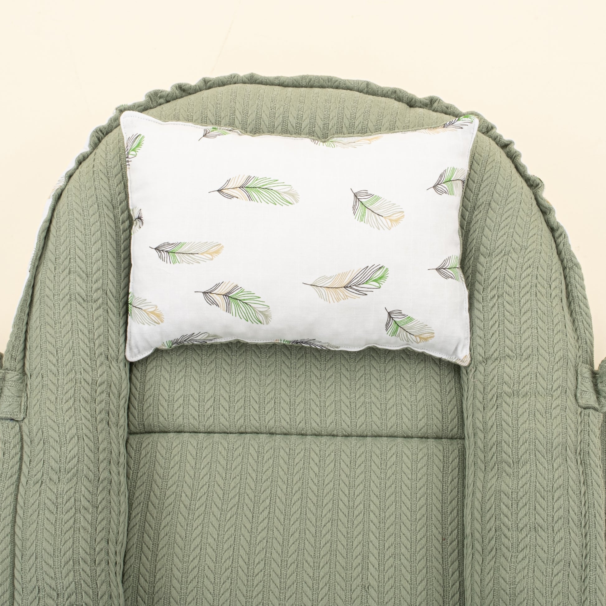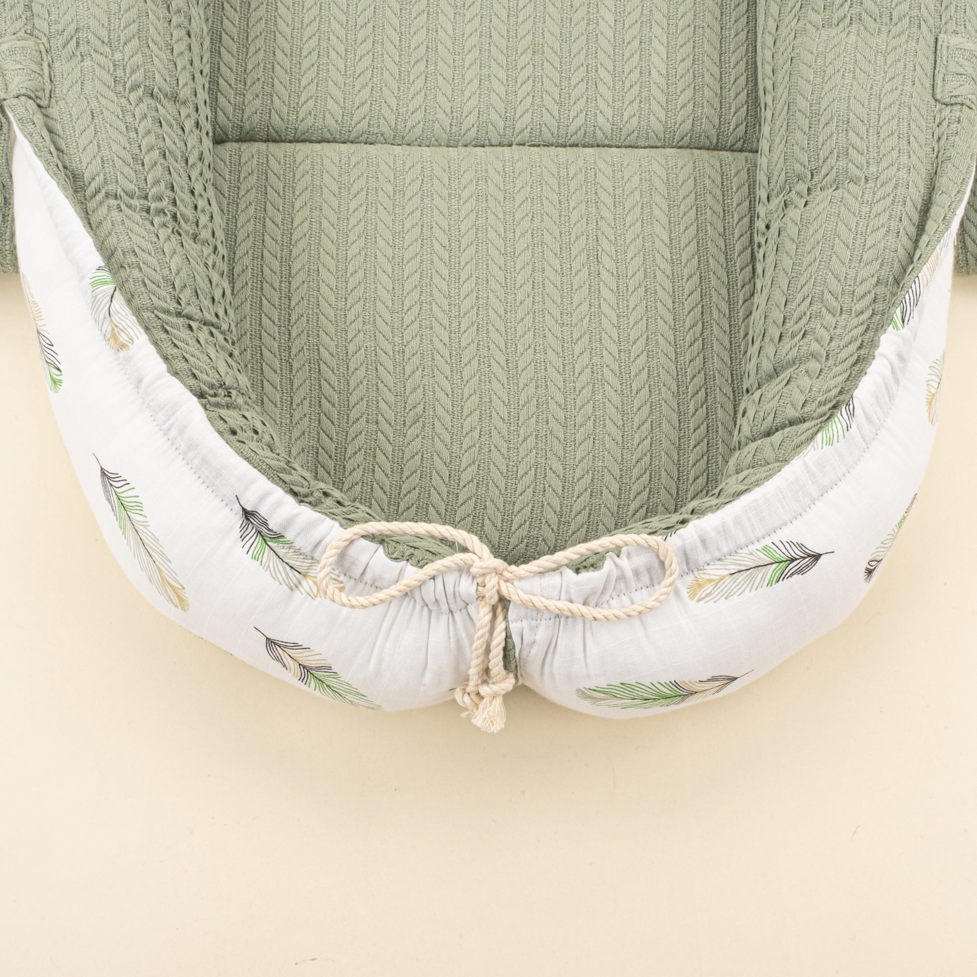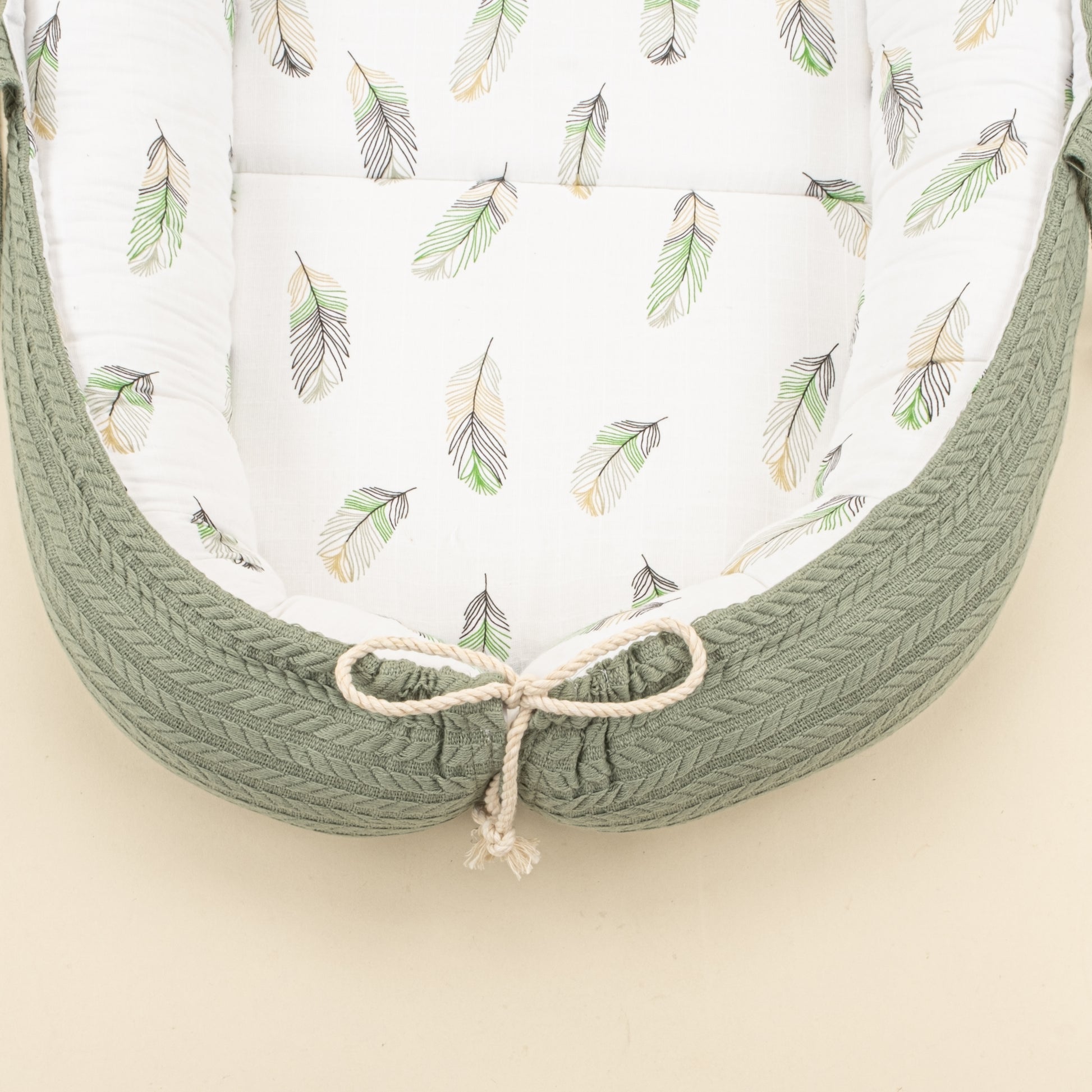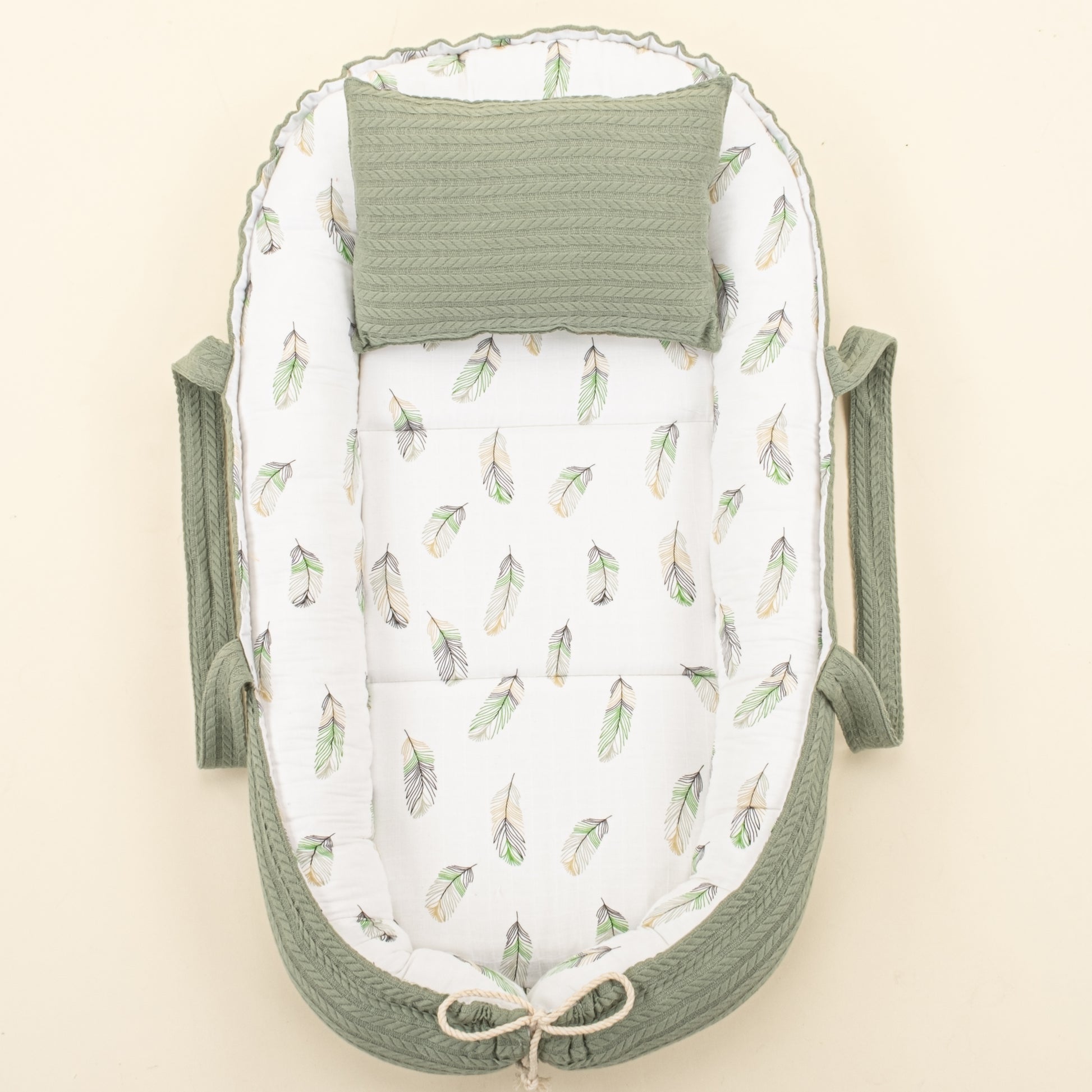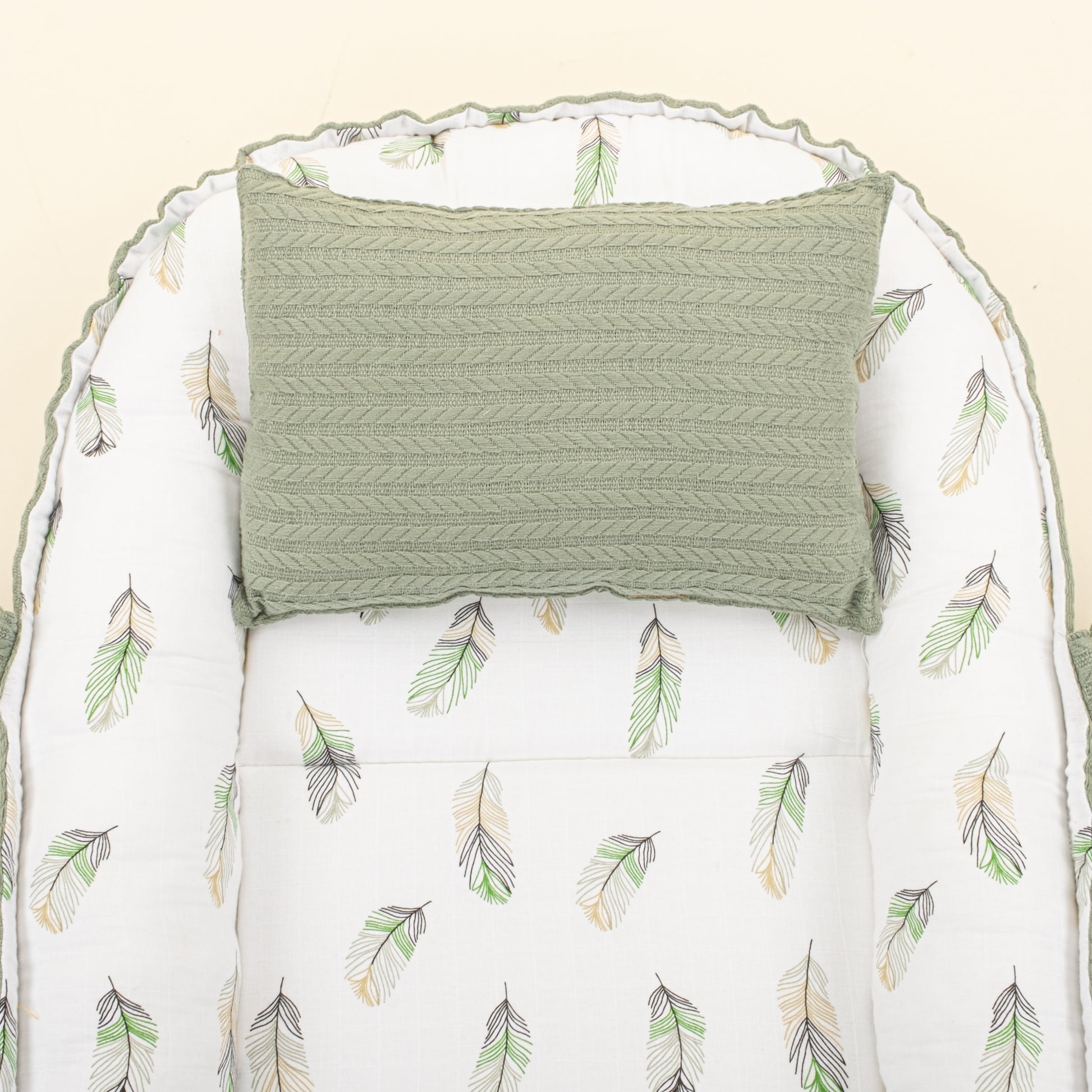 Babynest ve Yastık - Çift Taraflı - Koyu Yeşil Örgü - Yeşil Tüy