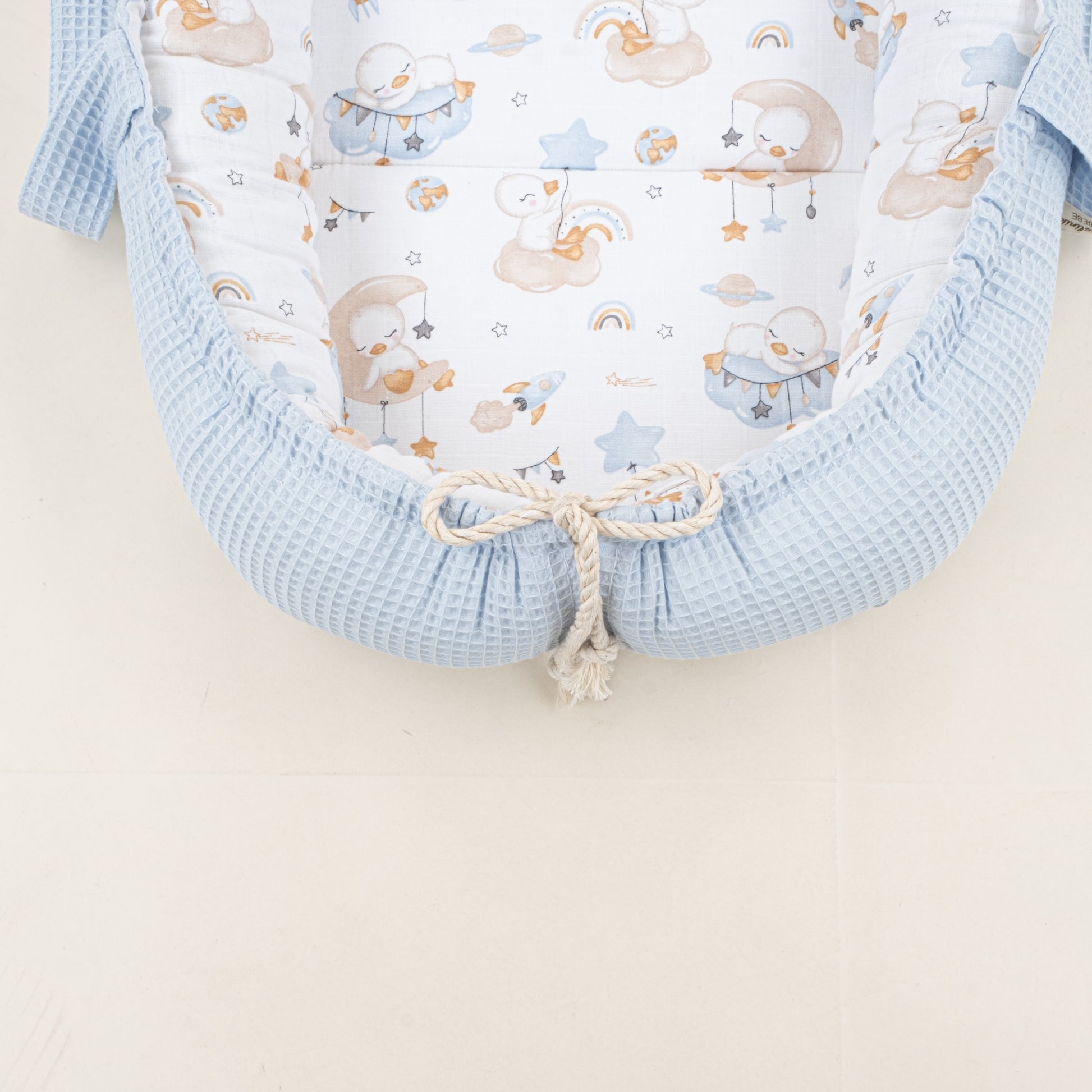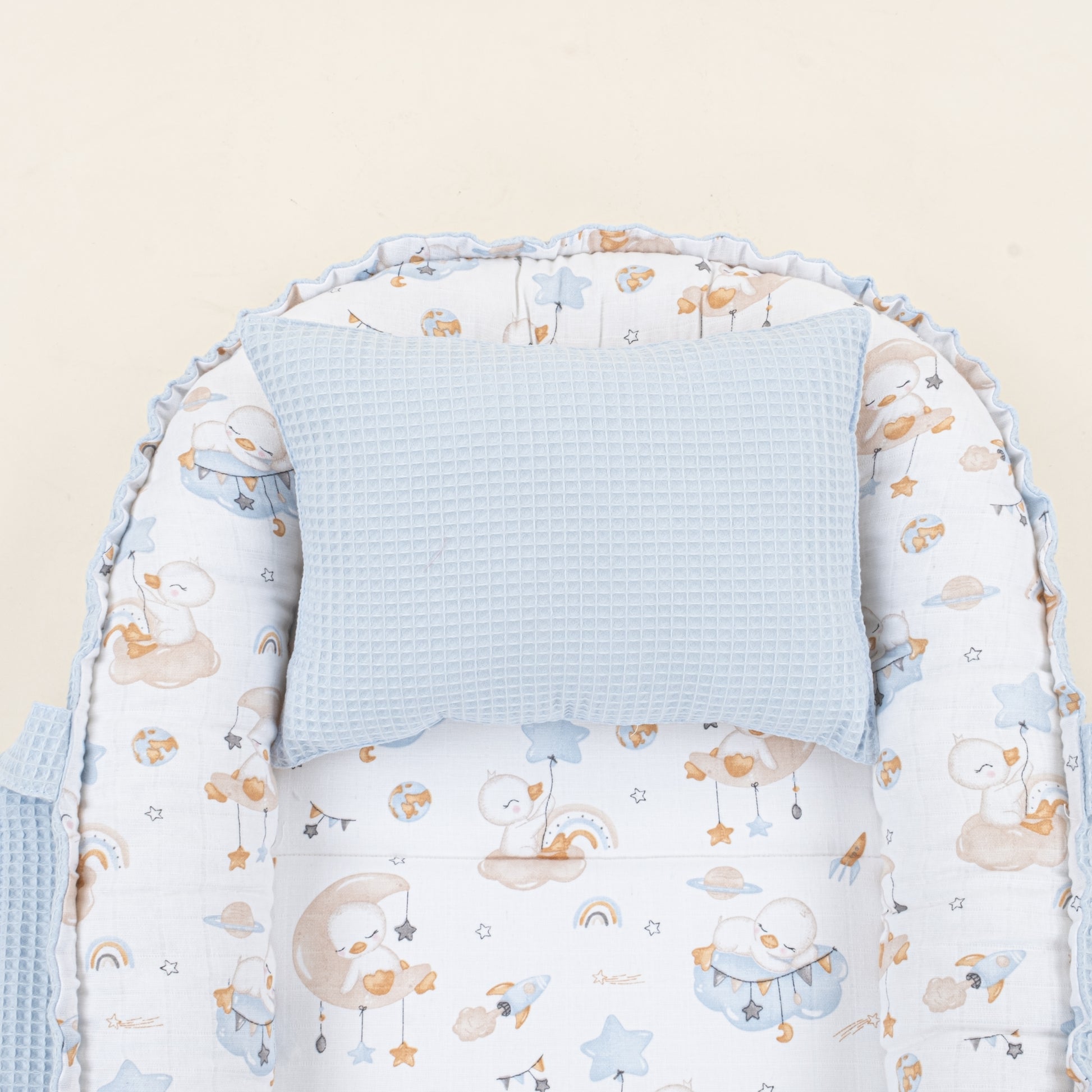 Babynest ve Yastık - Çift Taraflı - Bebe Mavi Petek - Uykucu Ördek