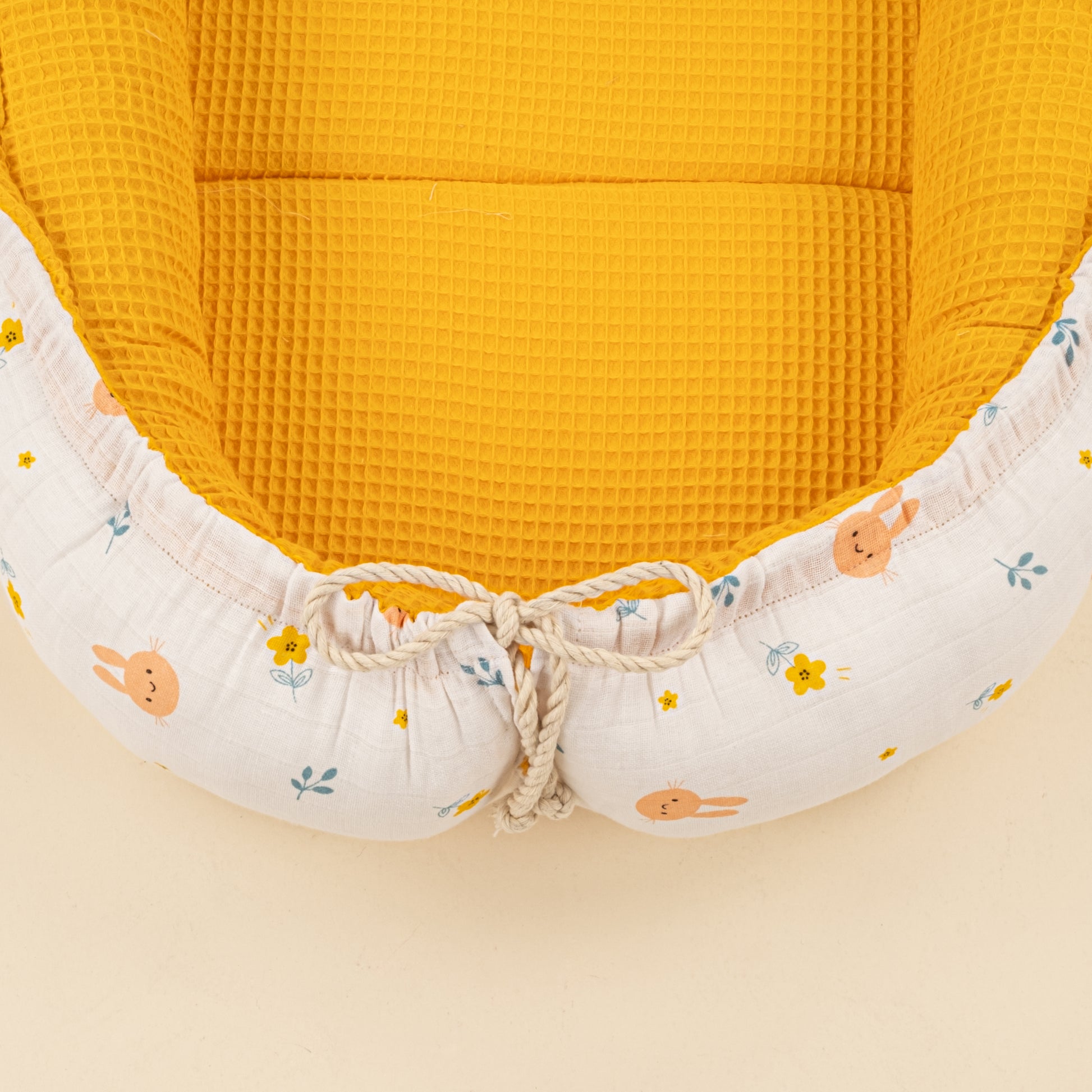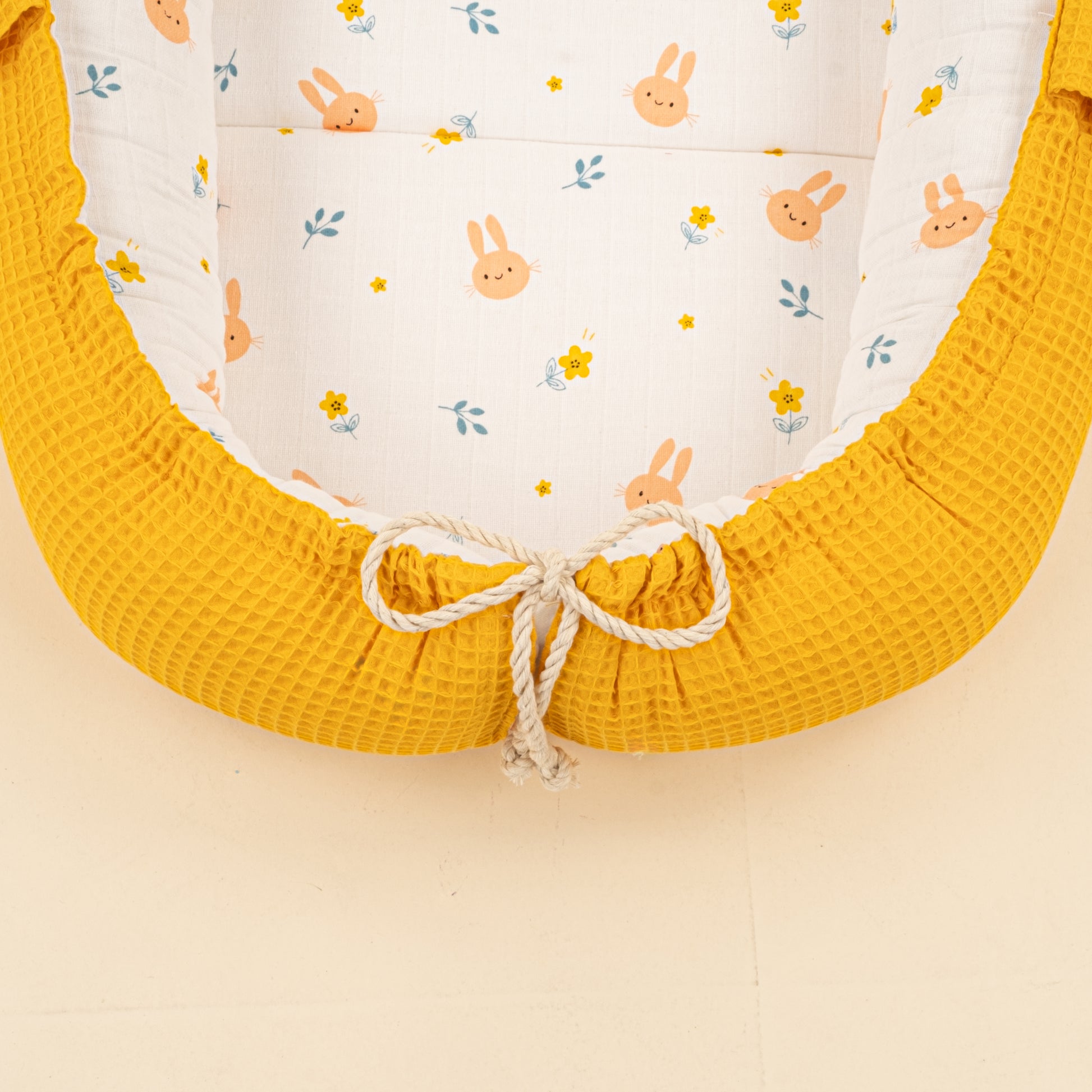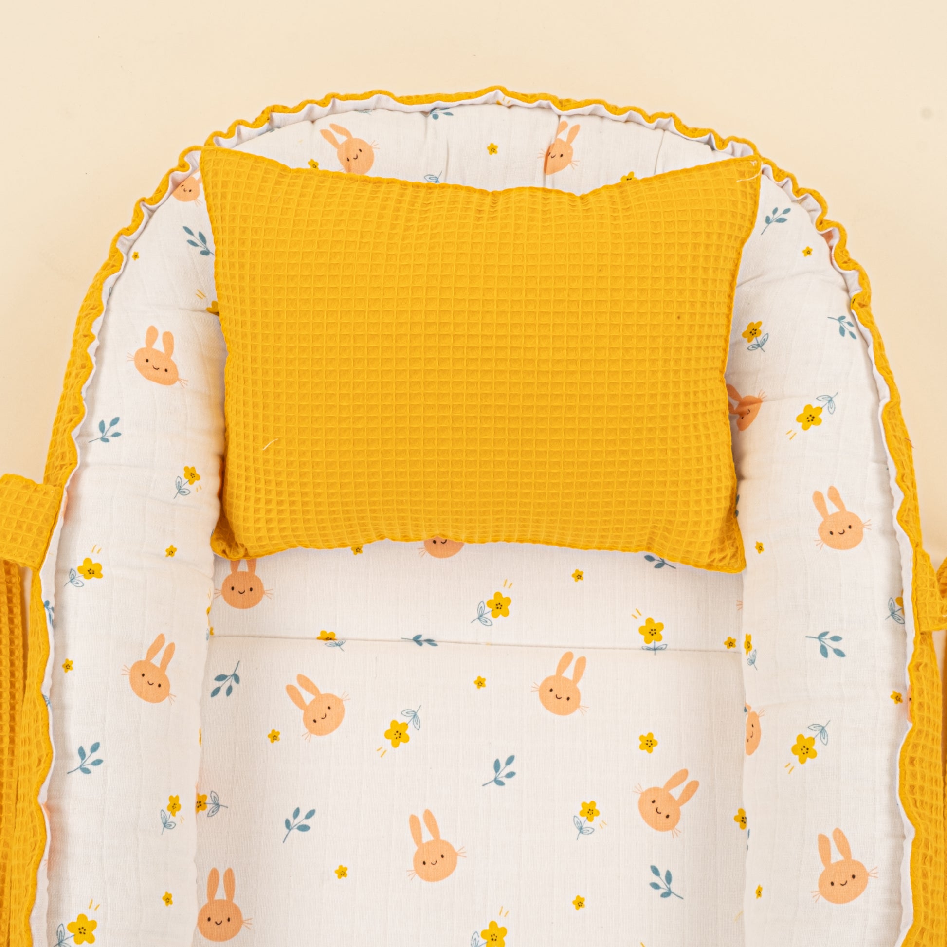 Babynest ve Yastık - Çift Taraflı - Hardal Petek - Turuncu Tavşan