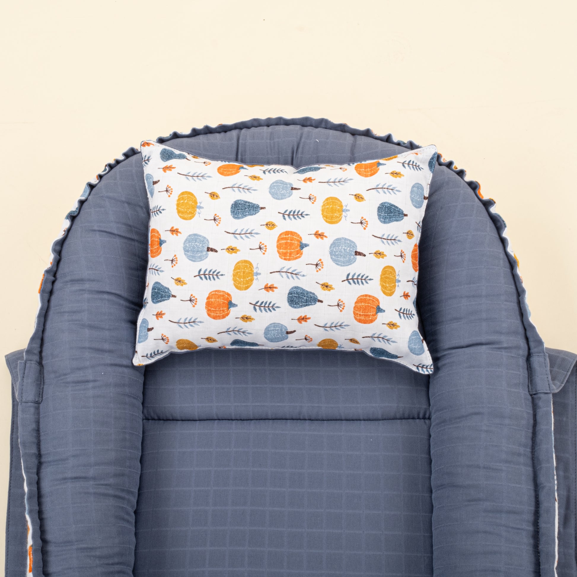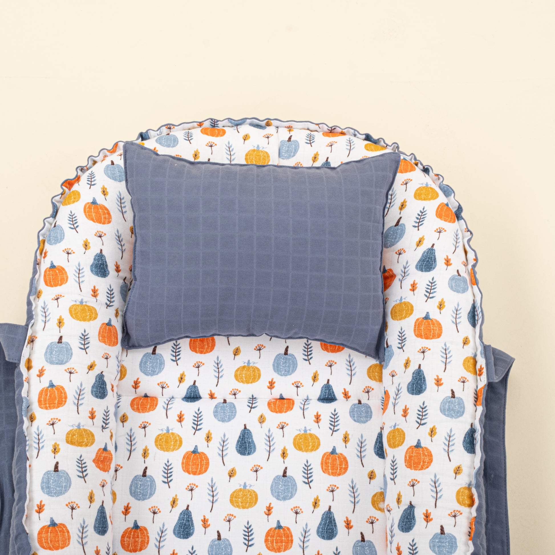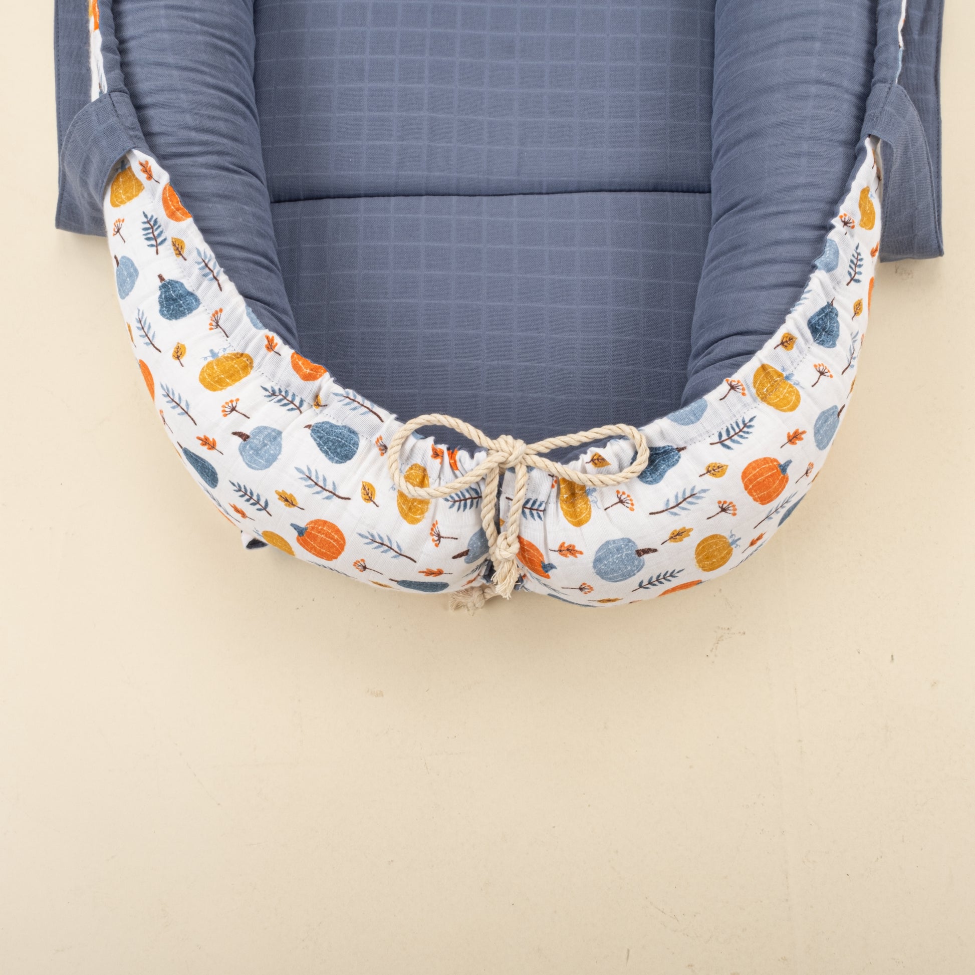 Babynest ve Yastık - Çift Taraflı - İndigo Muslin - Mavi Balkabağı