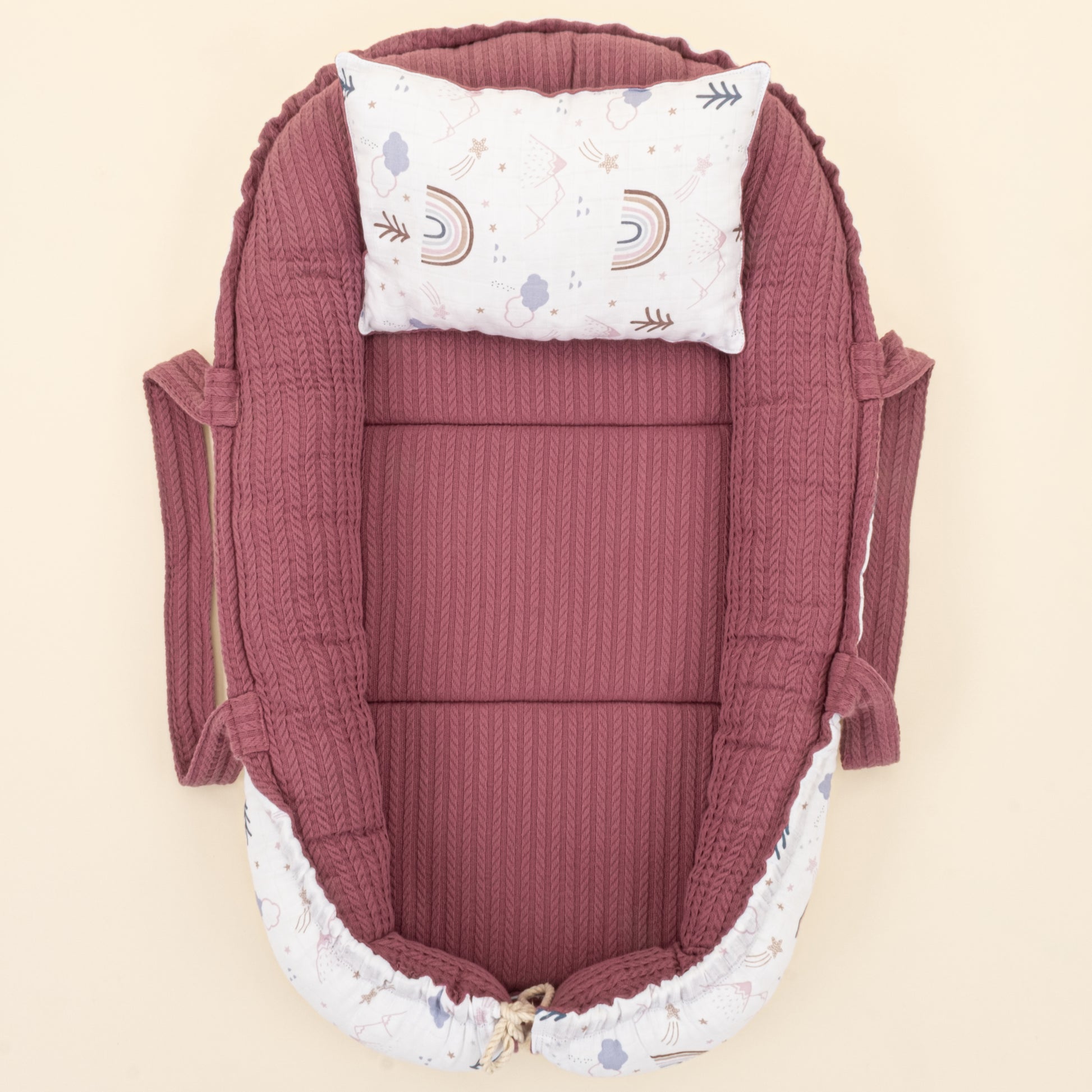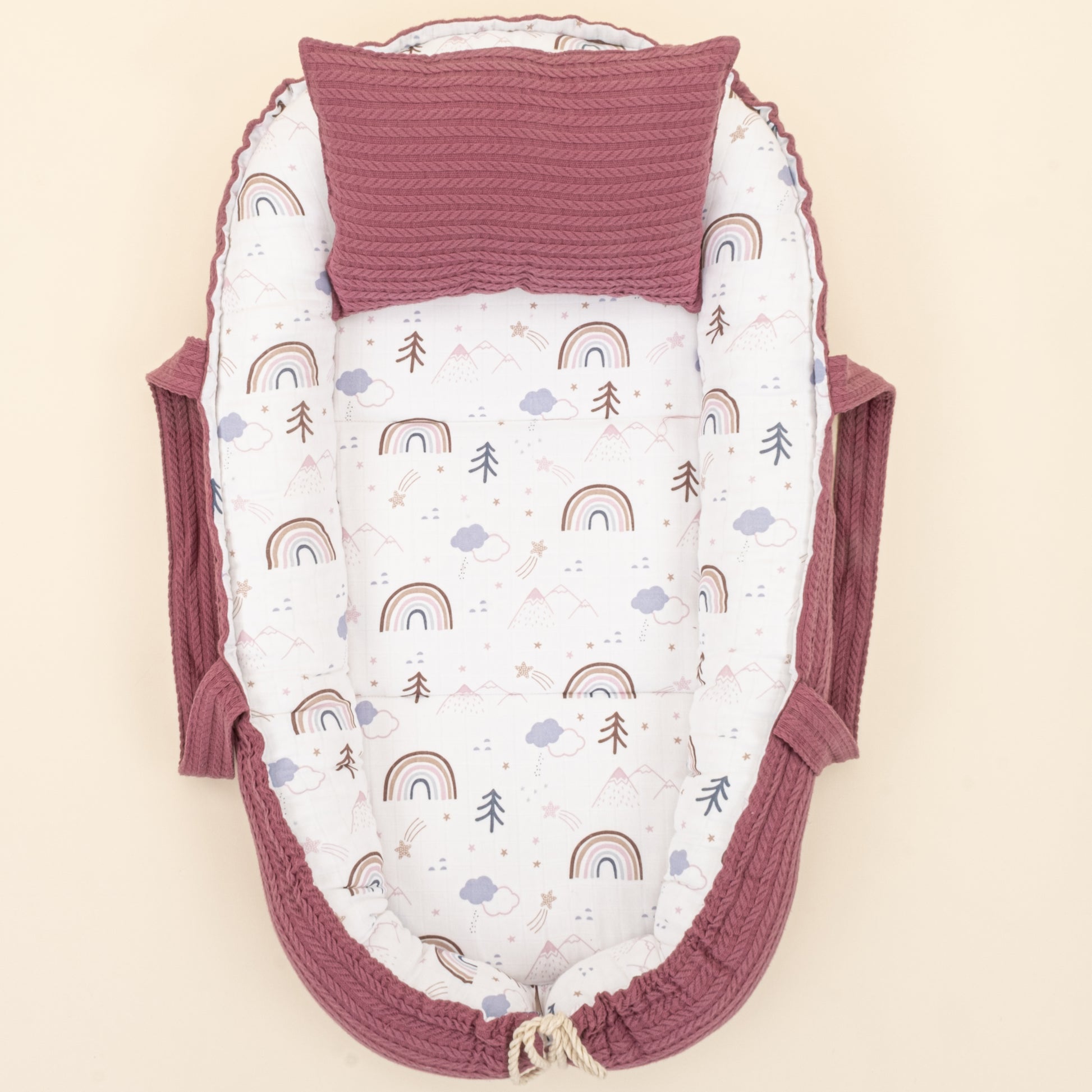Babynest ve Yastık - Çift Taraflı - Mürdüm Örgü - Pastel Gökkuşağı