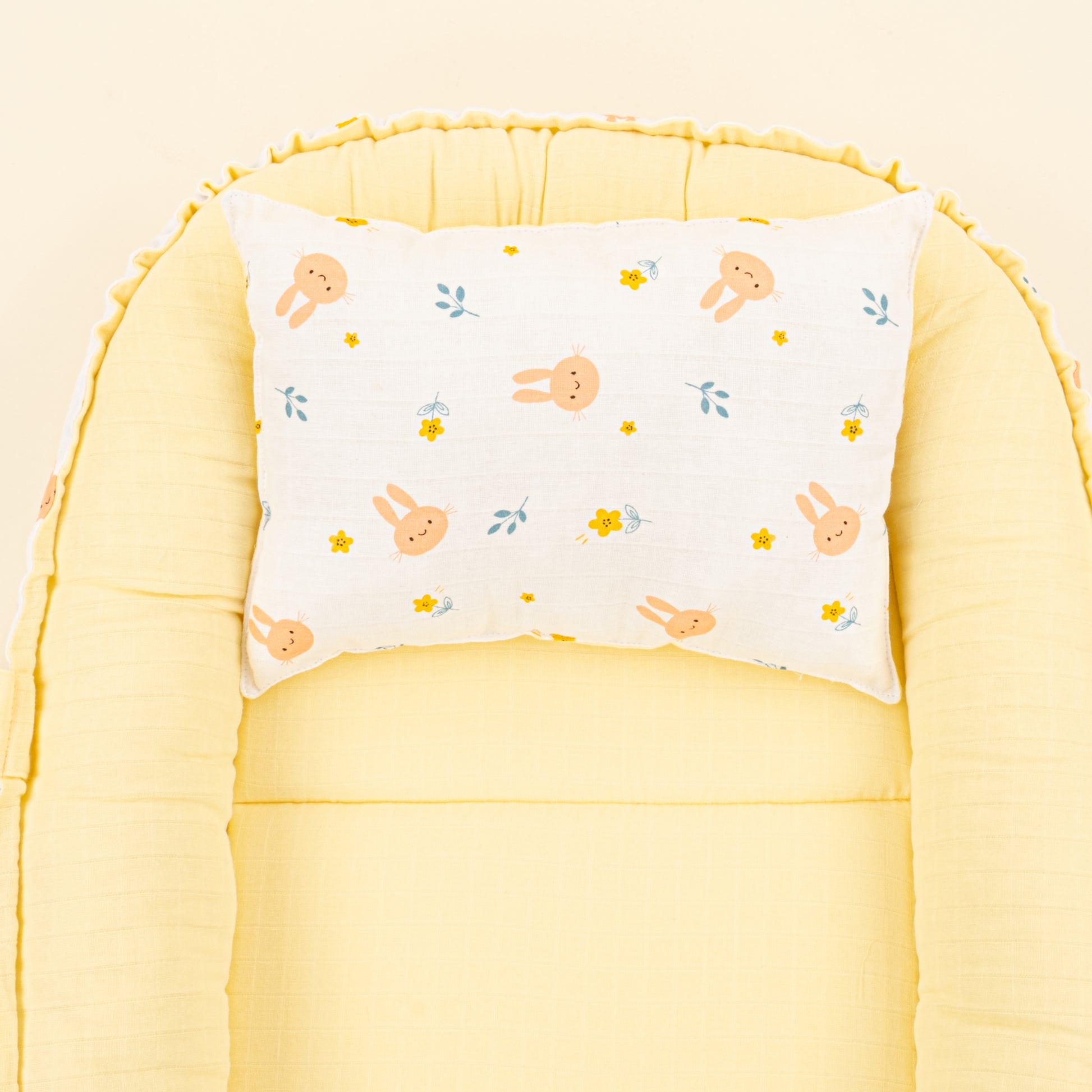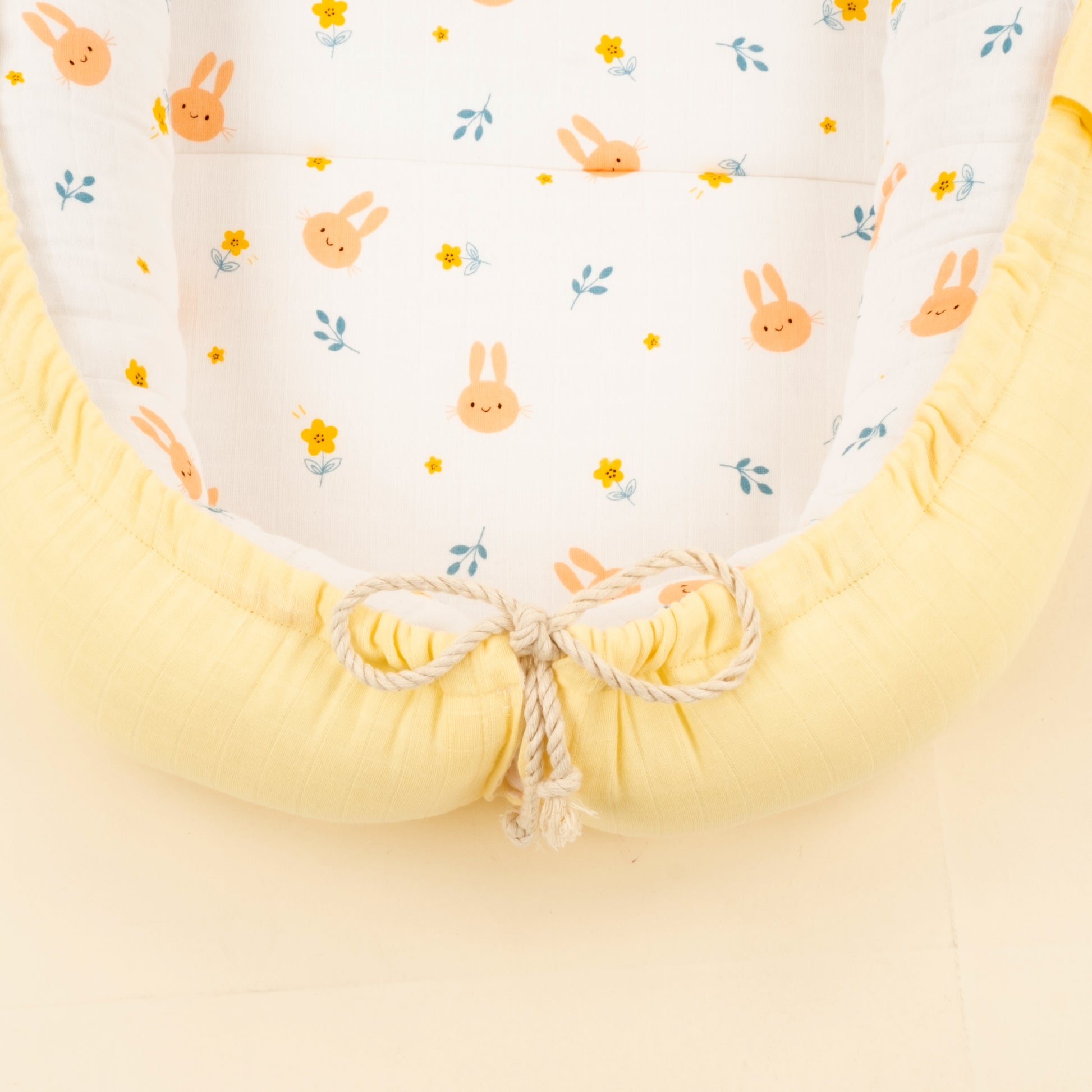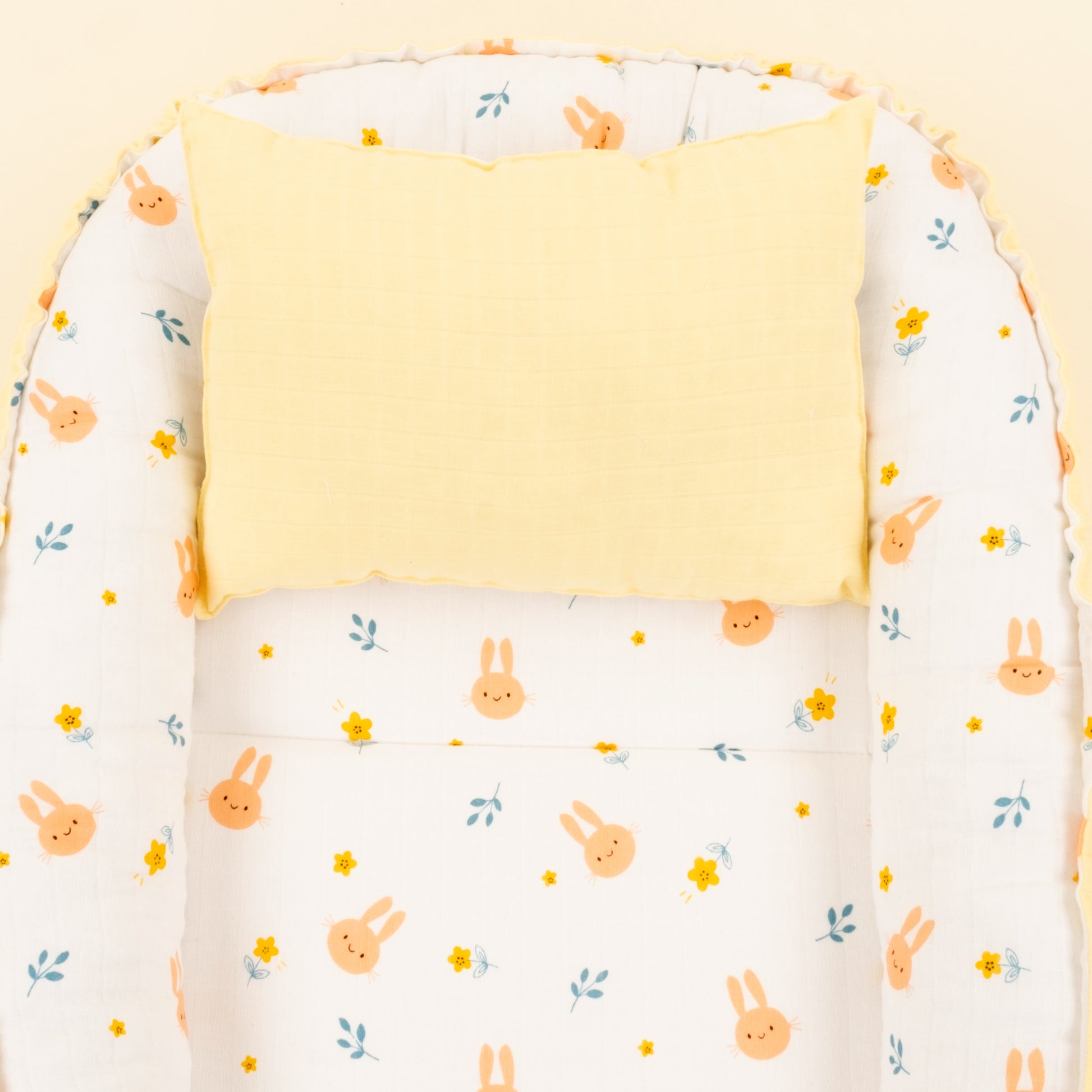 Babynest ve Yastık - Çift Taraflı - Sarı Muslin - Turuncu Tavşan