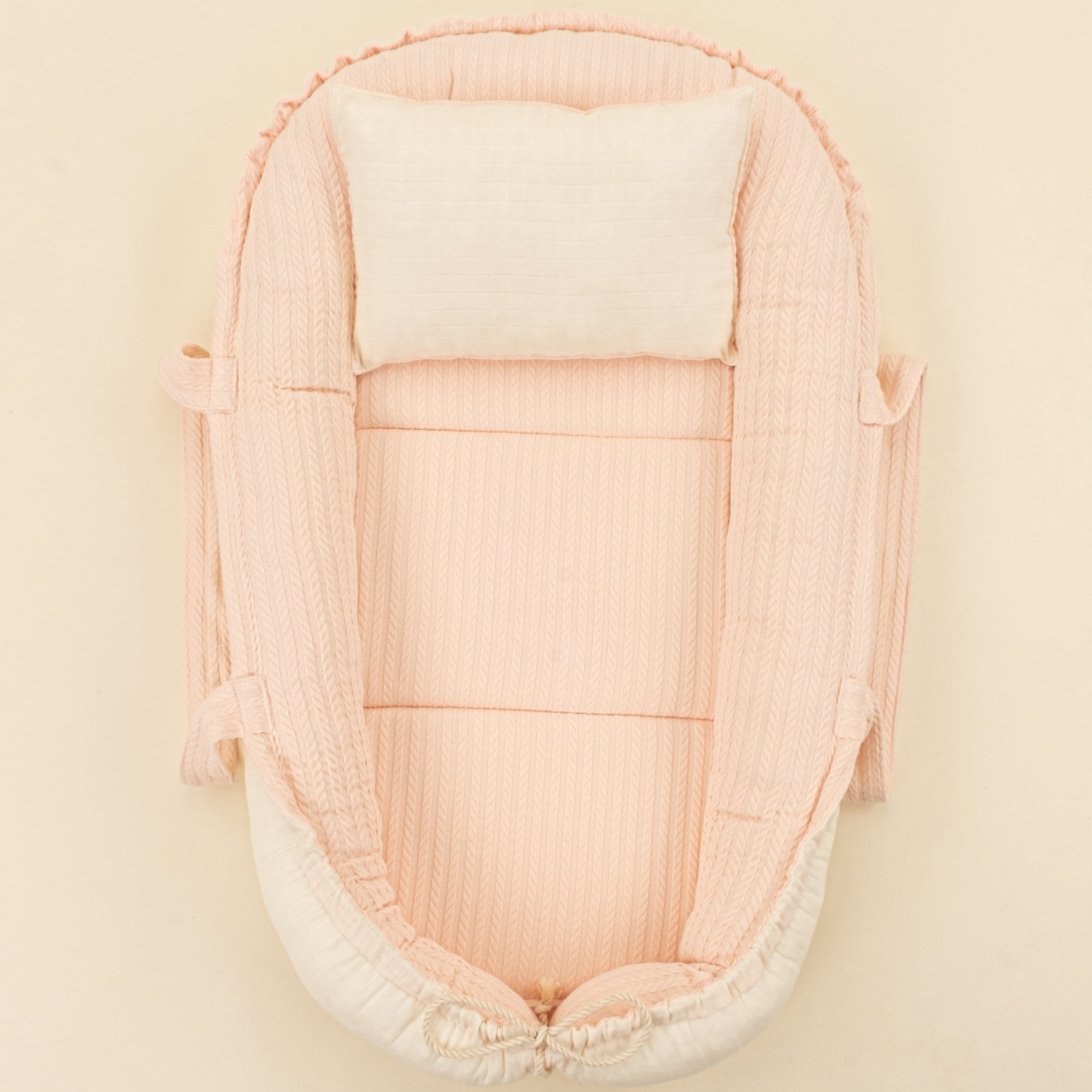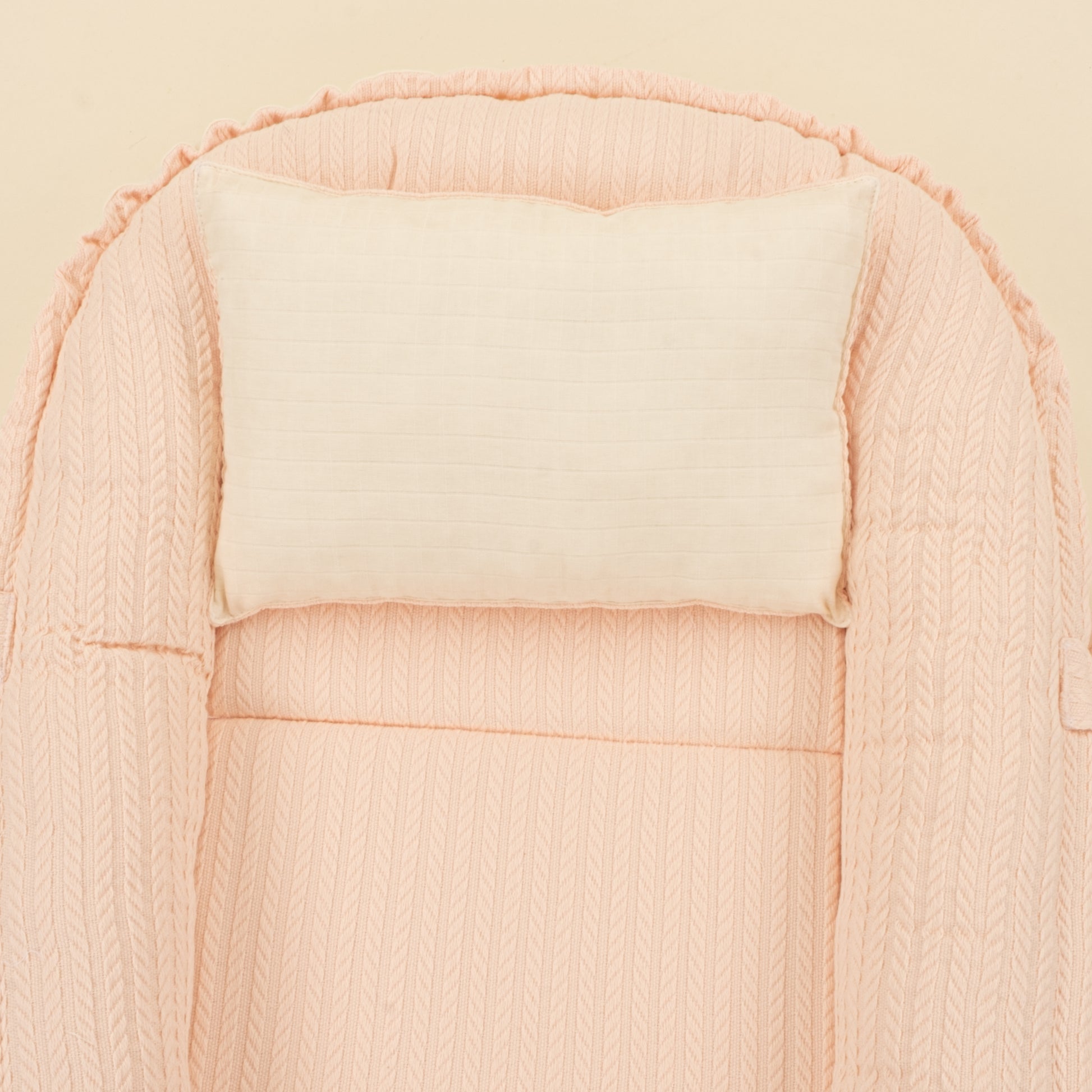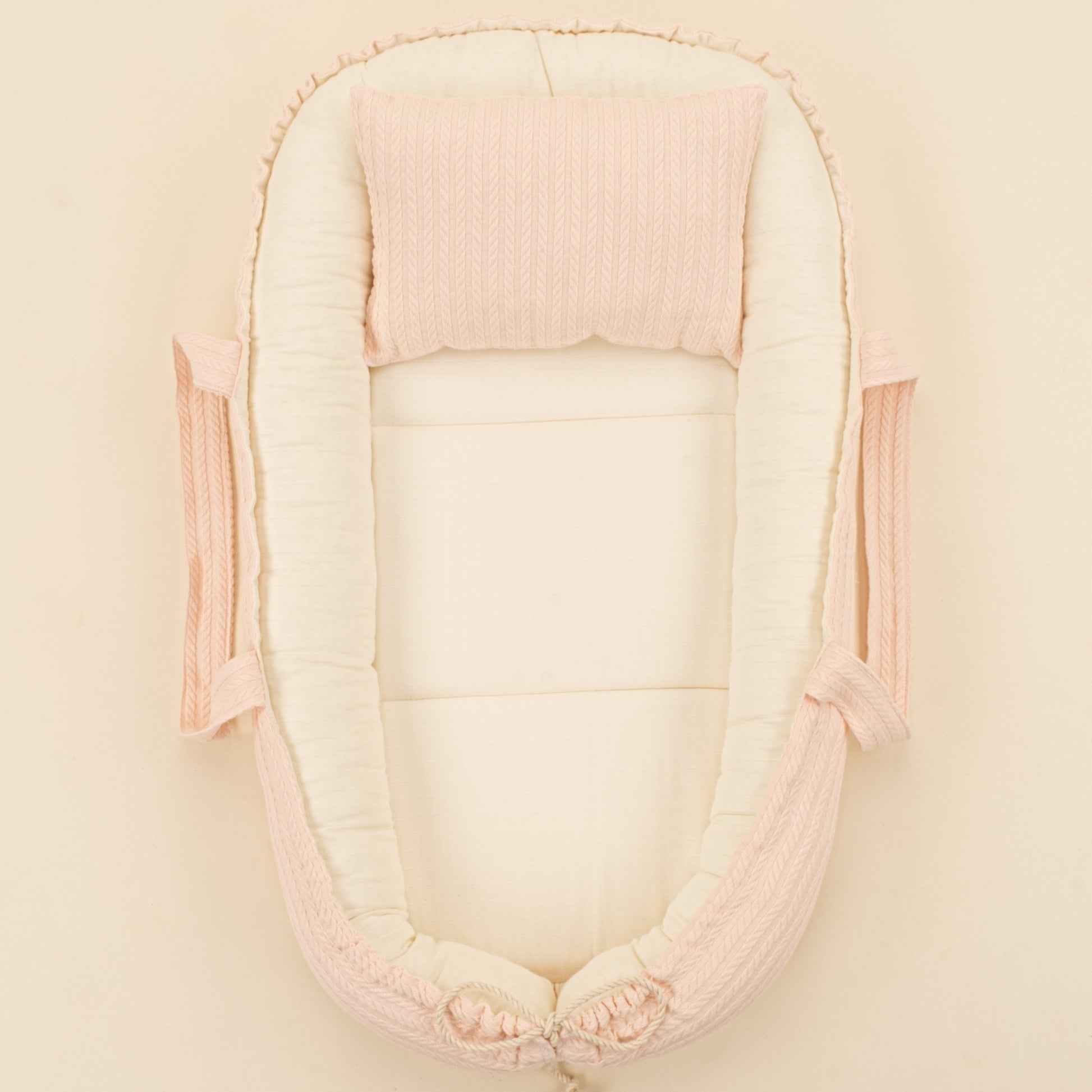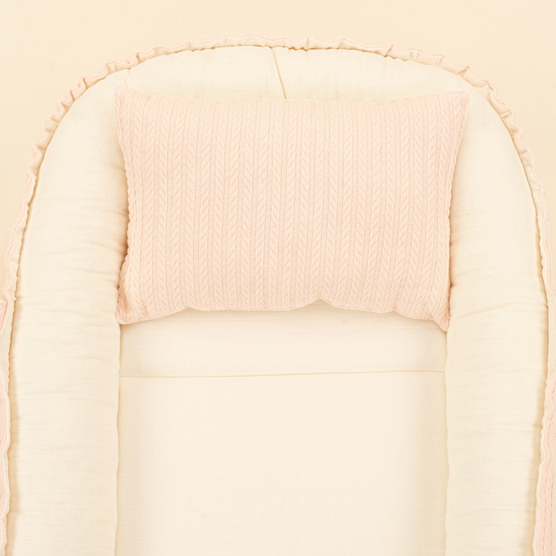 Babynest ve Yastık - Çift Taraflı - Somon Örgü - Krem Muslin