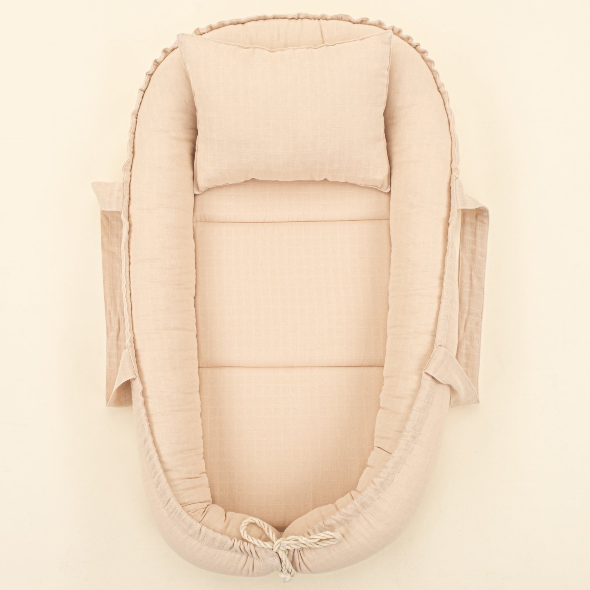 Babynestlerimiz çift taraflı kullanıma uygun olarak üretilmektedir. İç dolguları %100 1.Sınıf Elyaftır. Kullanılan kumaşlar %100 Pamuk Organik Muslin Kumaştır. Tüm babynest modellerimiz Oeko-Tex sertifikalıdır.