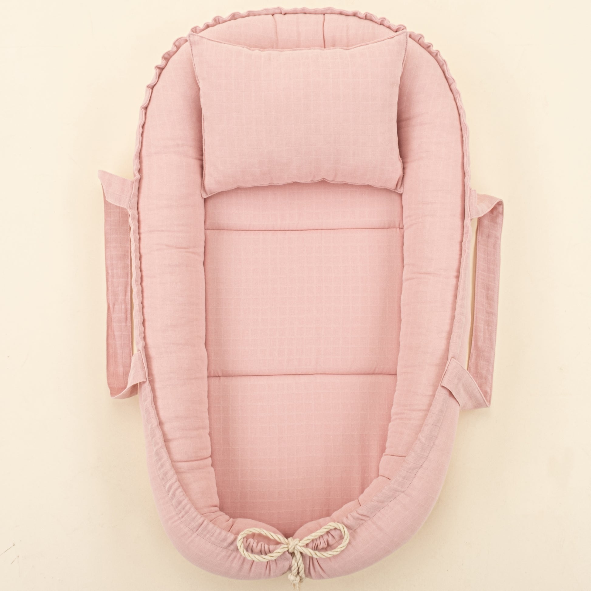 Babynestlerimiz çift taraflı kullanıma uygun olarak üretilmektedir. İç dolguları %100 1.Sınıf Elyaftır. Kullanılan kumaşlar %100 Pamuk Organik Muslin Kumaştır. Tüm babynest modellerimiz Oeko-Tex sertifikalıdır.