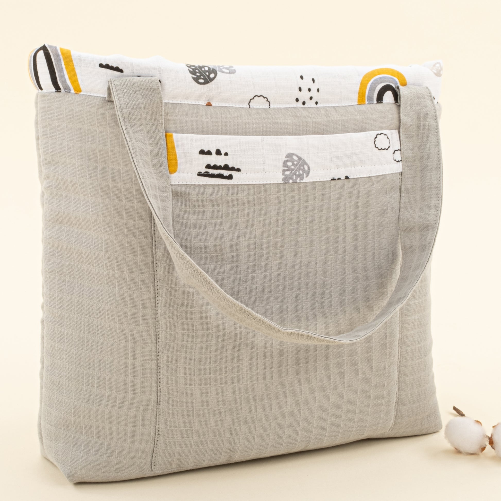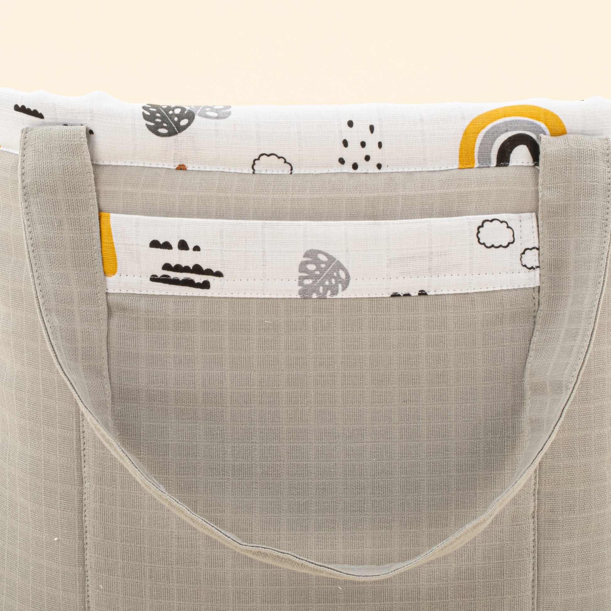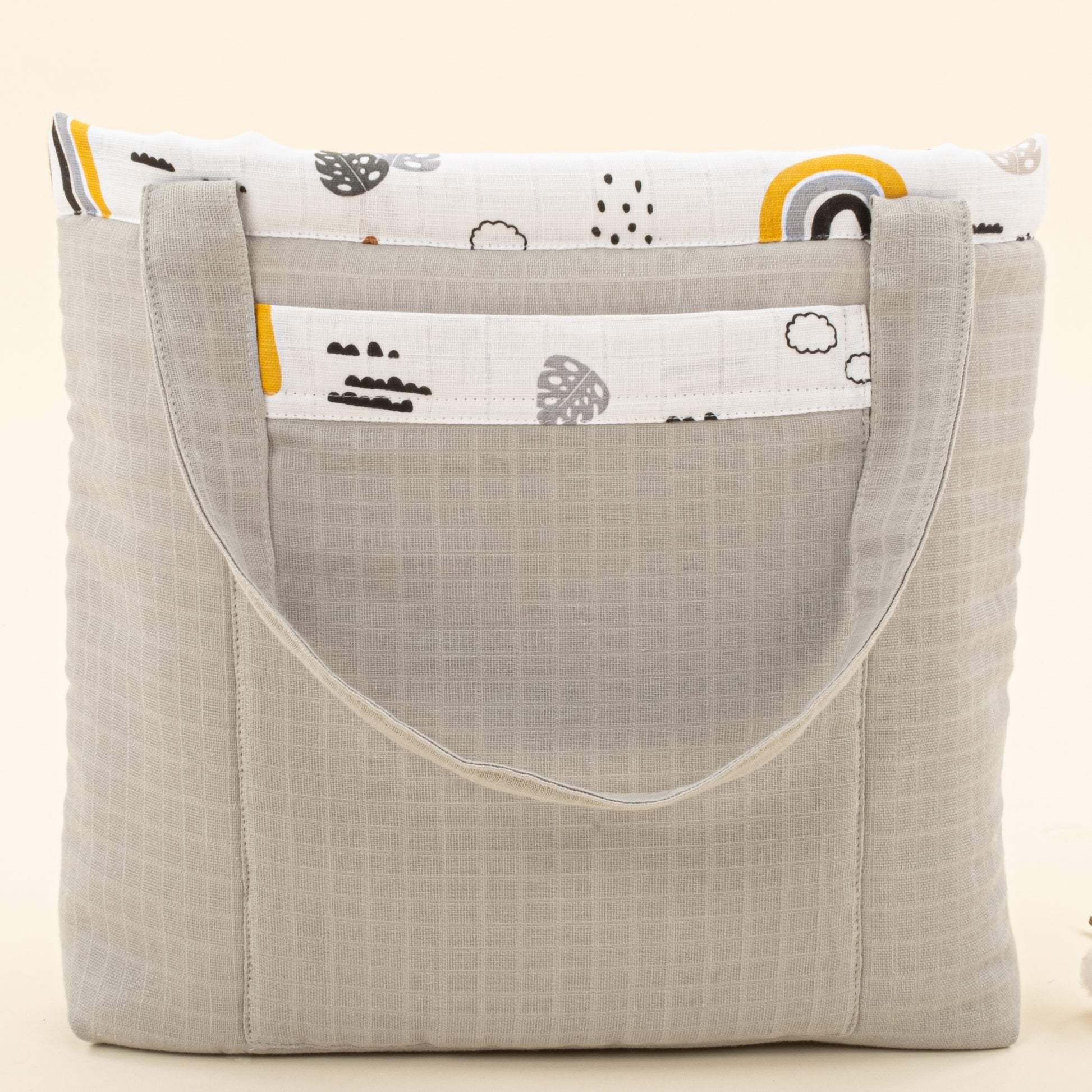 Bebek Bakım Çantası - Açık Gri Muslin - Hardal Gökkuşağı