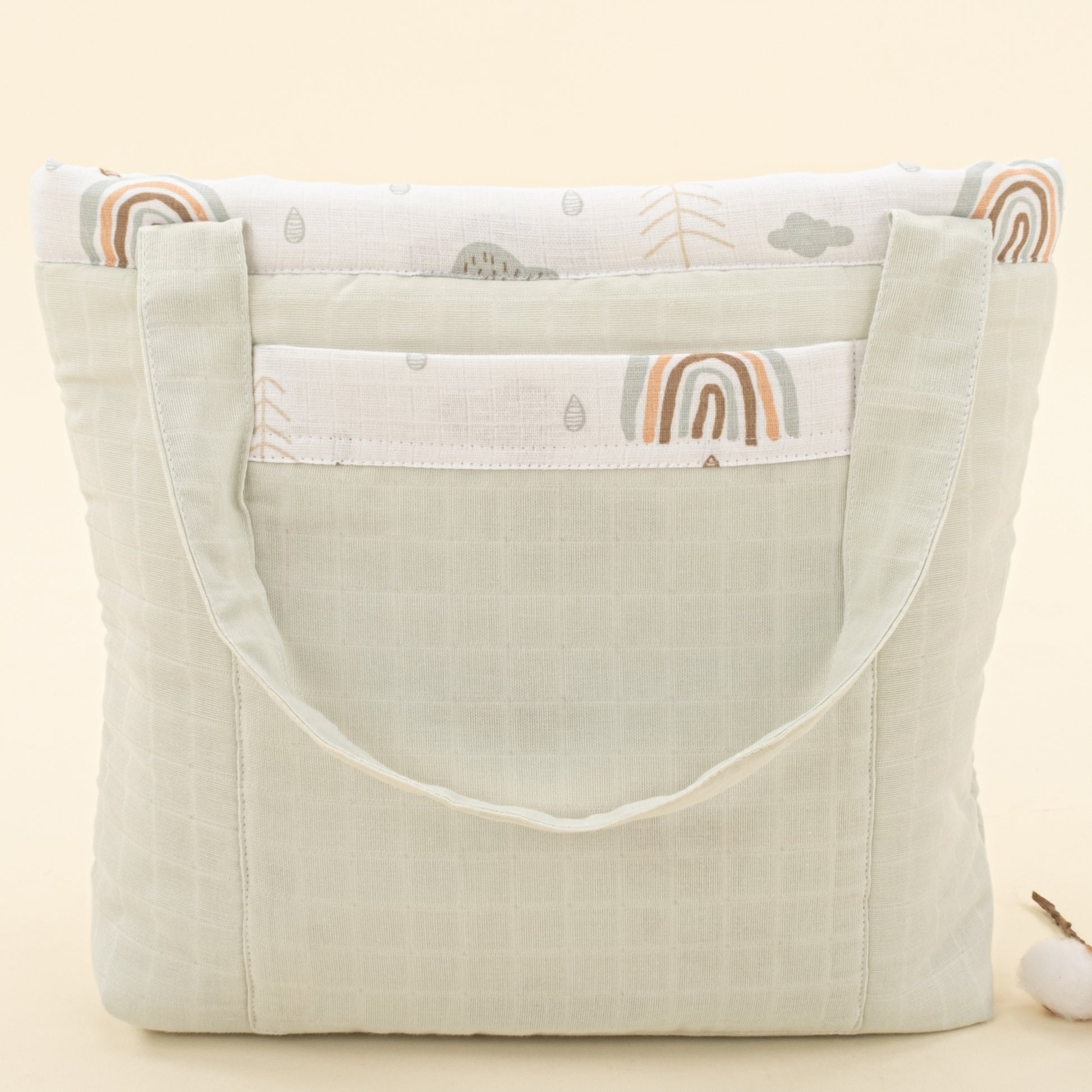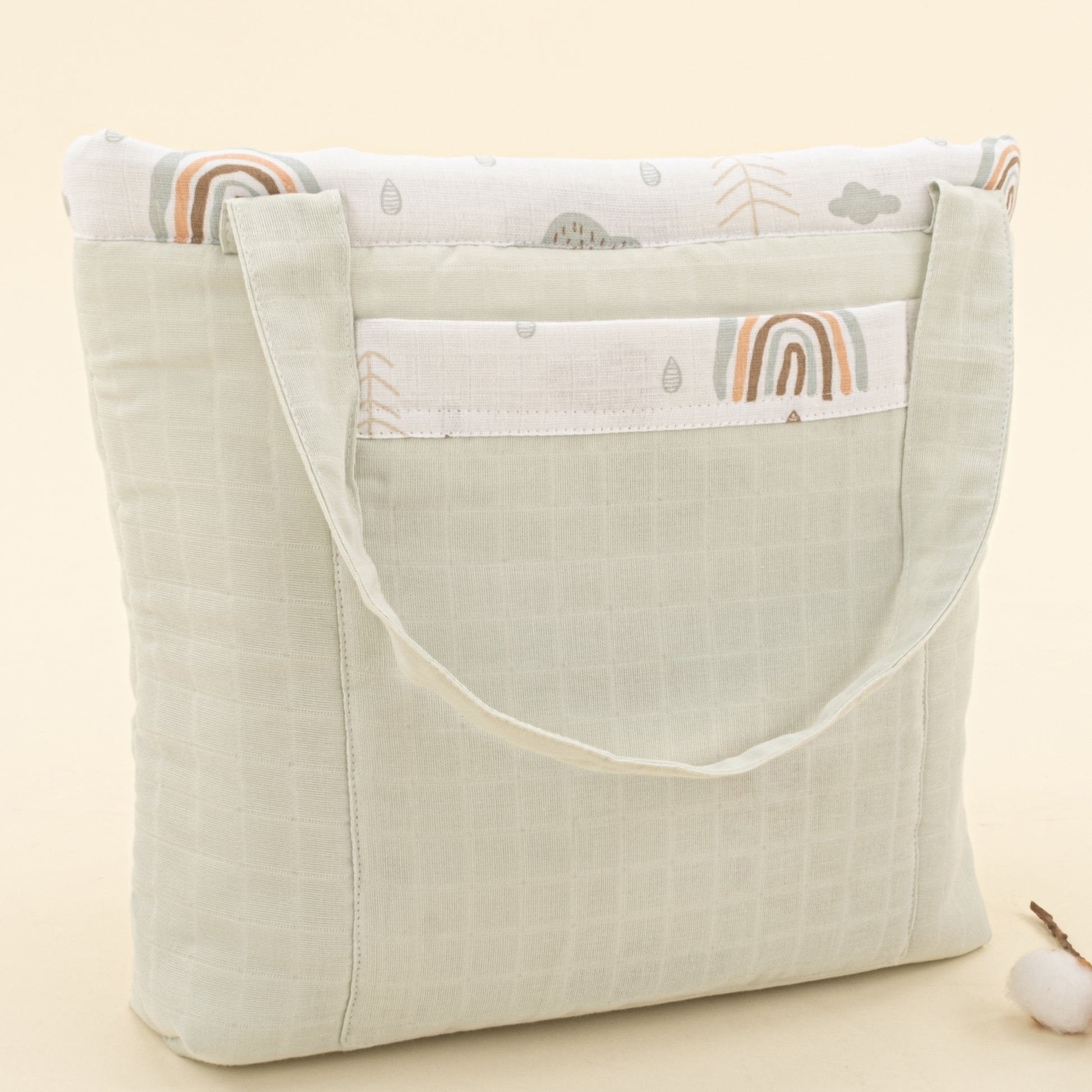 Bebek Bakım Çantası - Açık Yeşil Muslin - Yeşil Gökkuşağı