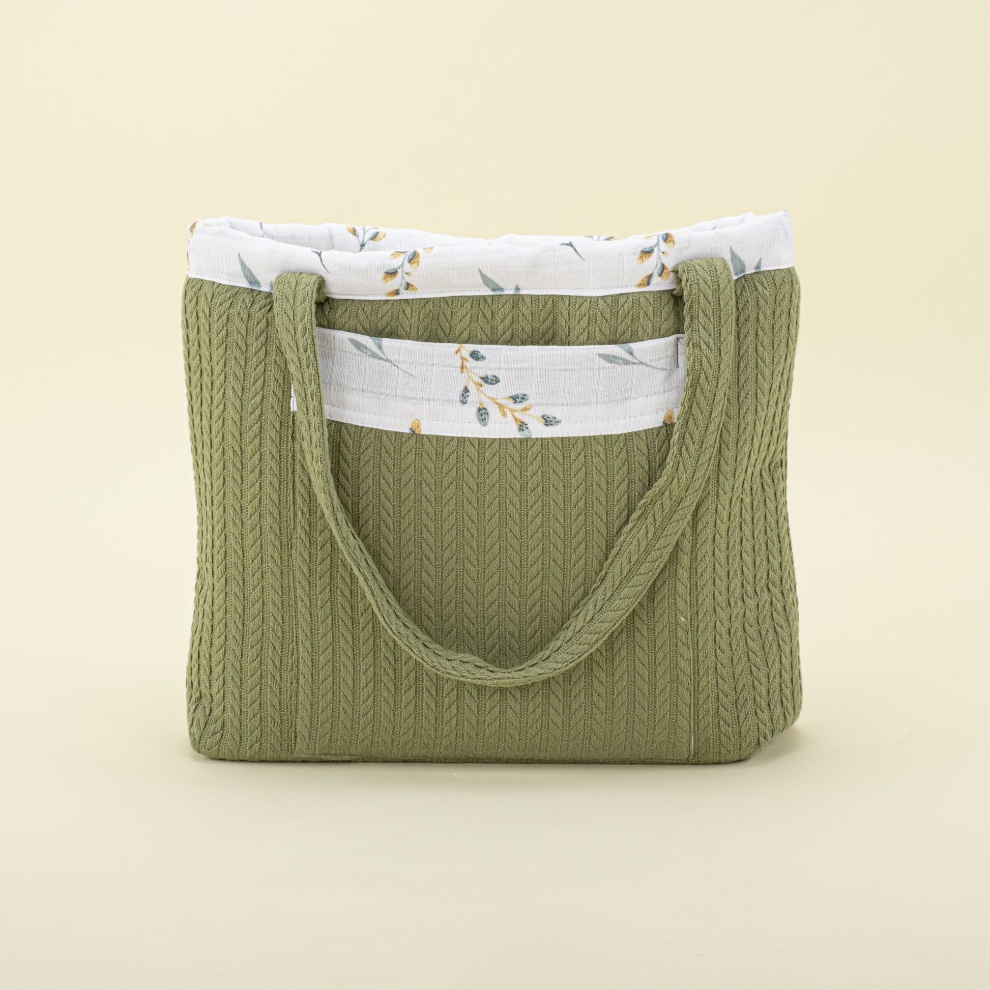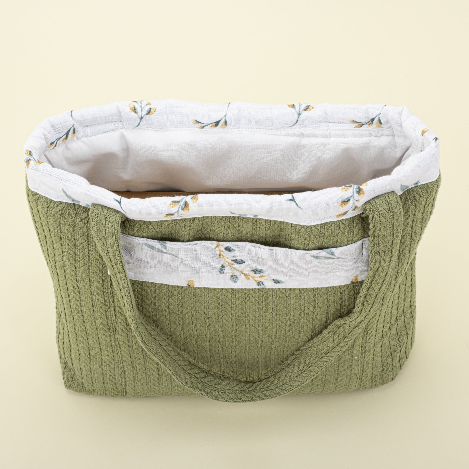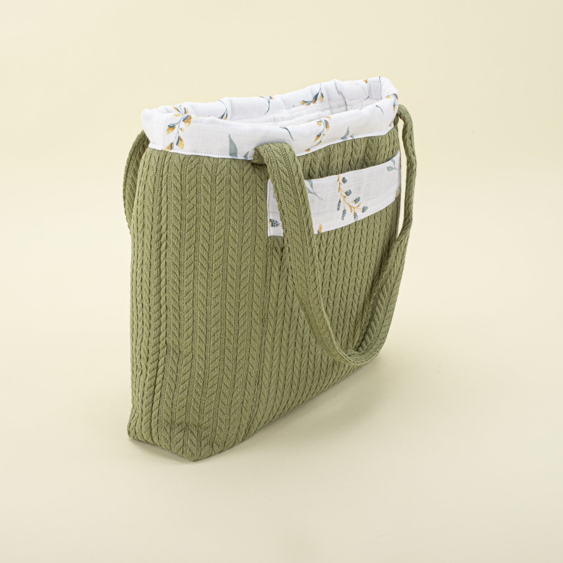 Bebek Bakım Çantası - Açık Yeşil Örgü - Yapraklar
