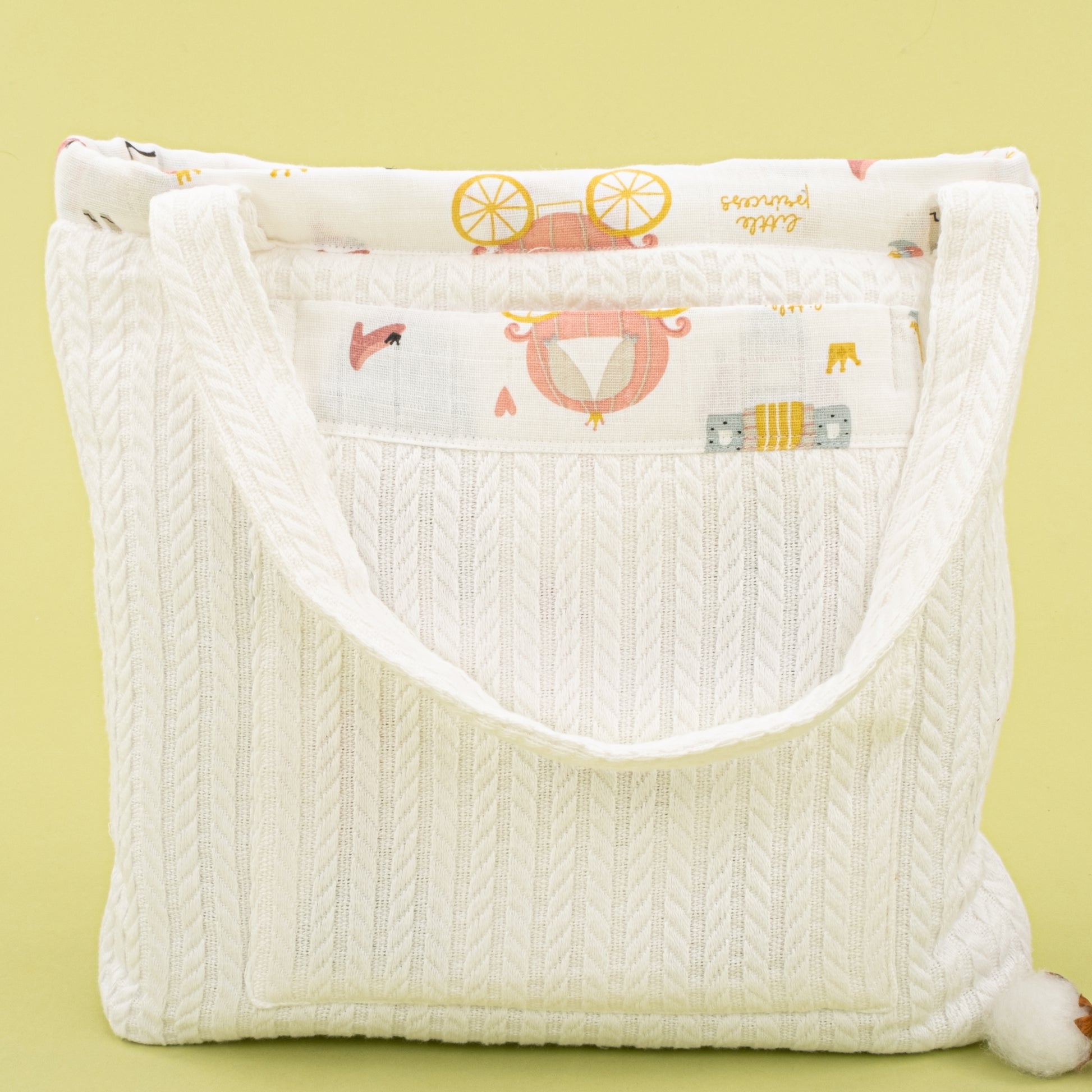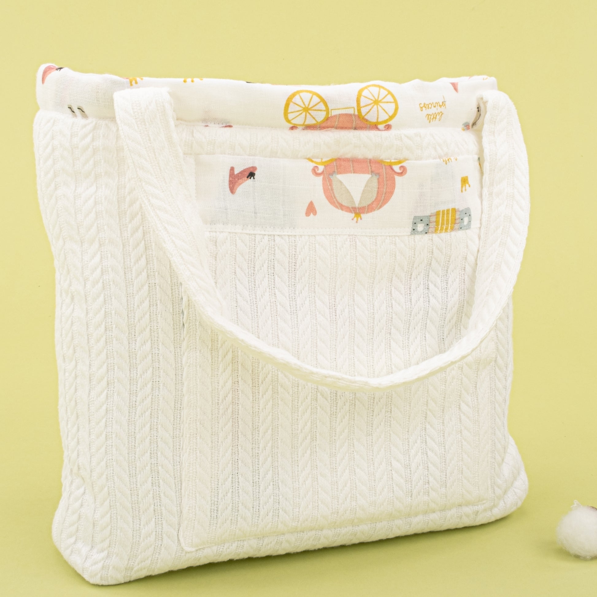 bebek bezi, yedek giysi, ıslak mendil, emzik vb. eşyalarınızı doğal dokulu müslin çantalarımızda taşıyabilirsiniz.