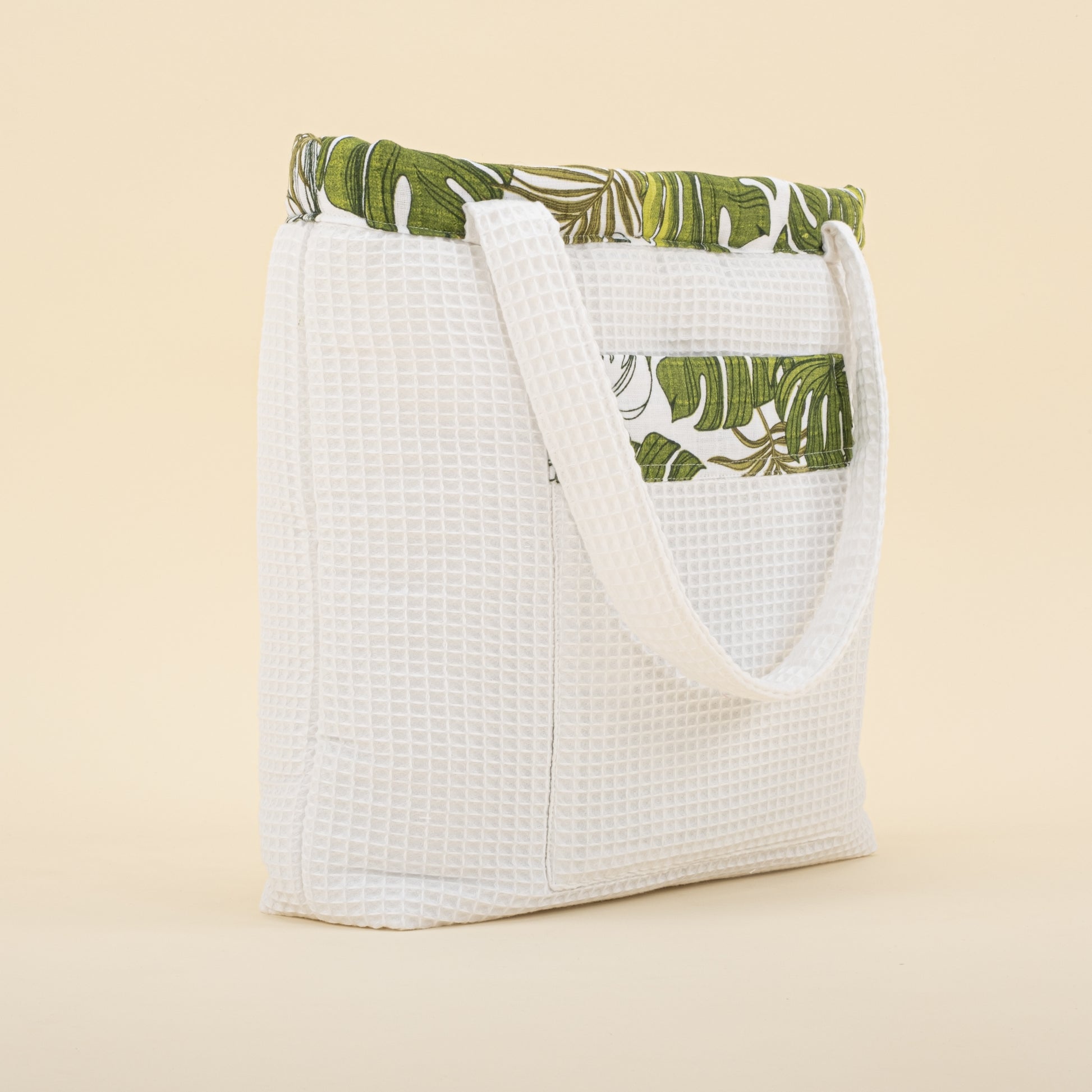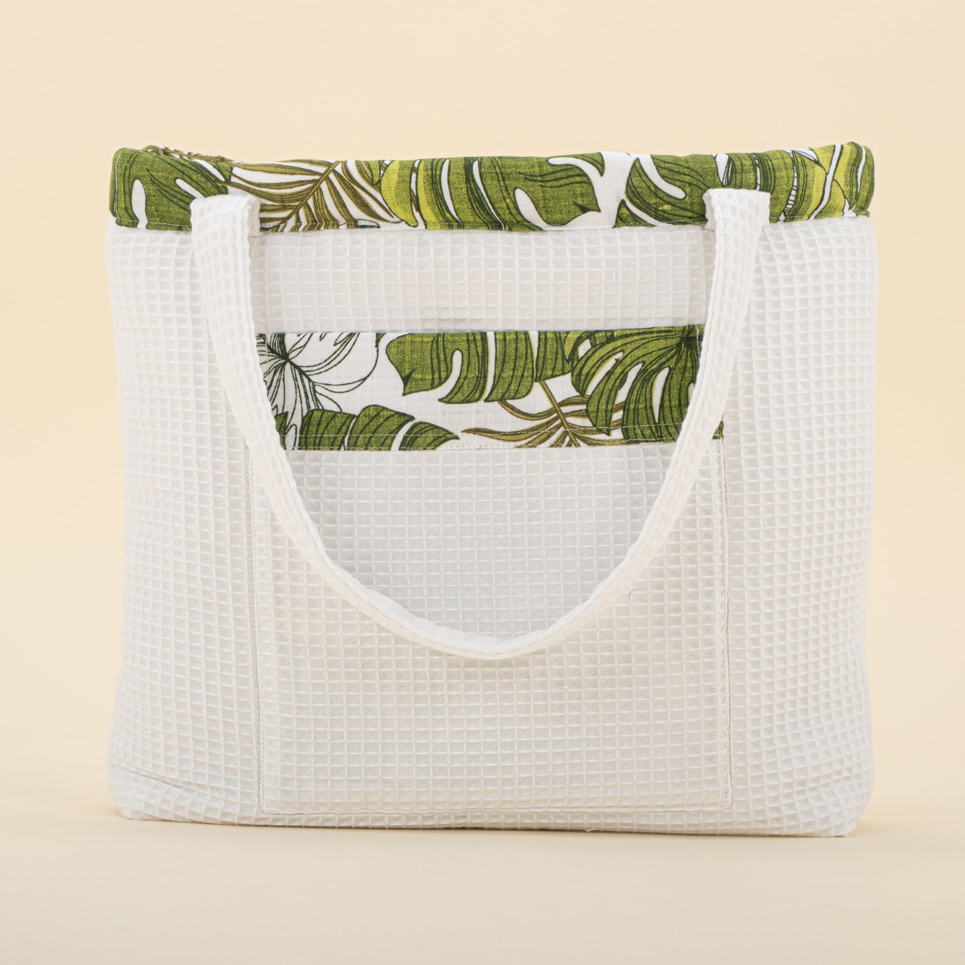 Bebek Bakım Çantası - Beyaz Petek - Palmiye Yaprakları