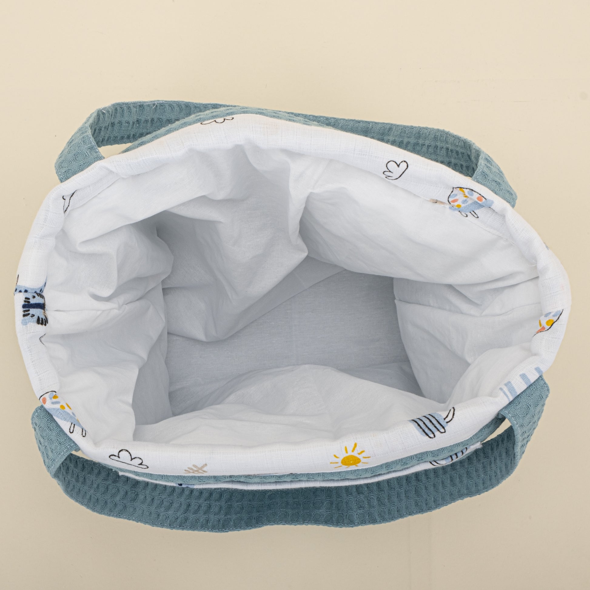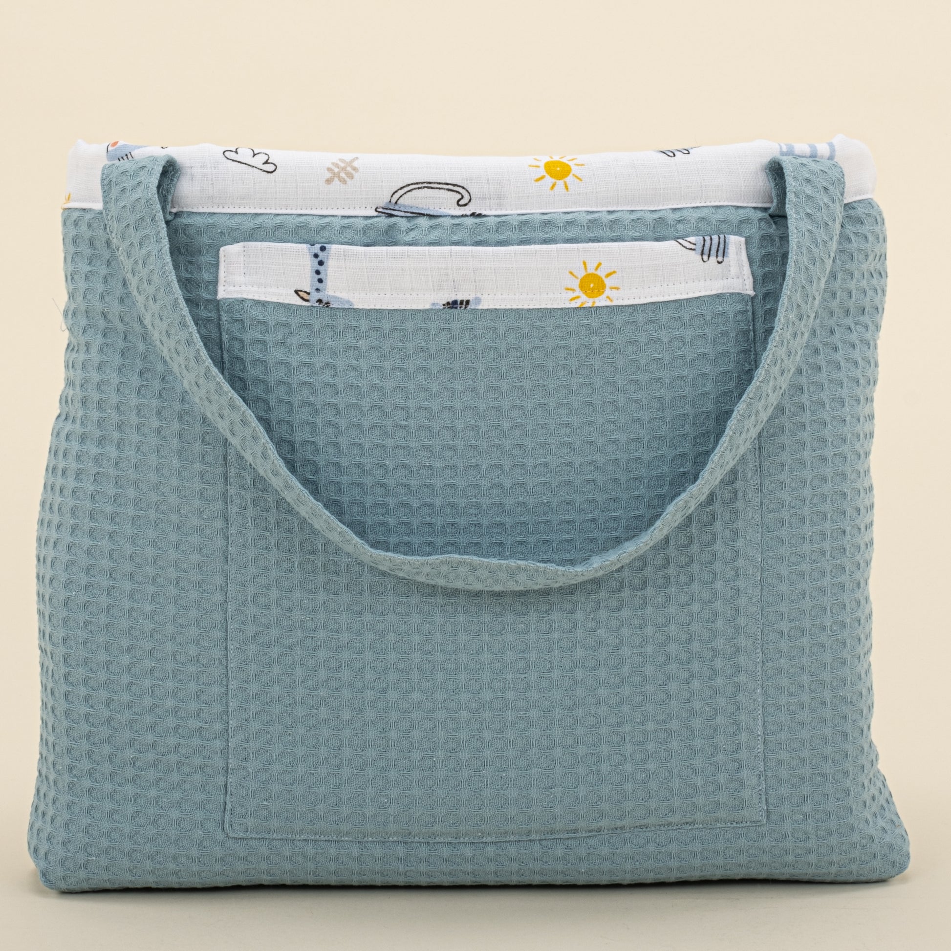 bebek bezi, yedek giysi, ıslak mendil, emzik vb. eşyalarınızı doğal dokulu müslin çantalarımızda taşıyabilirsiniz.