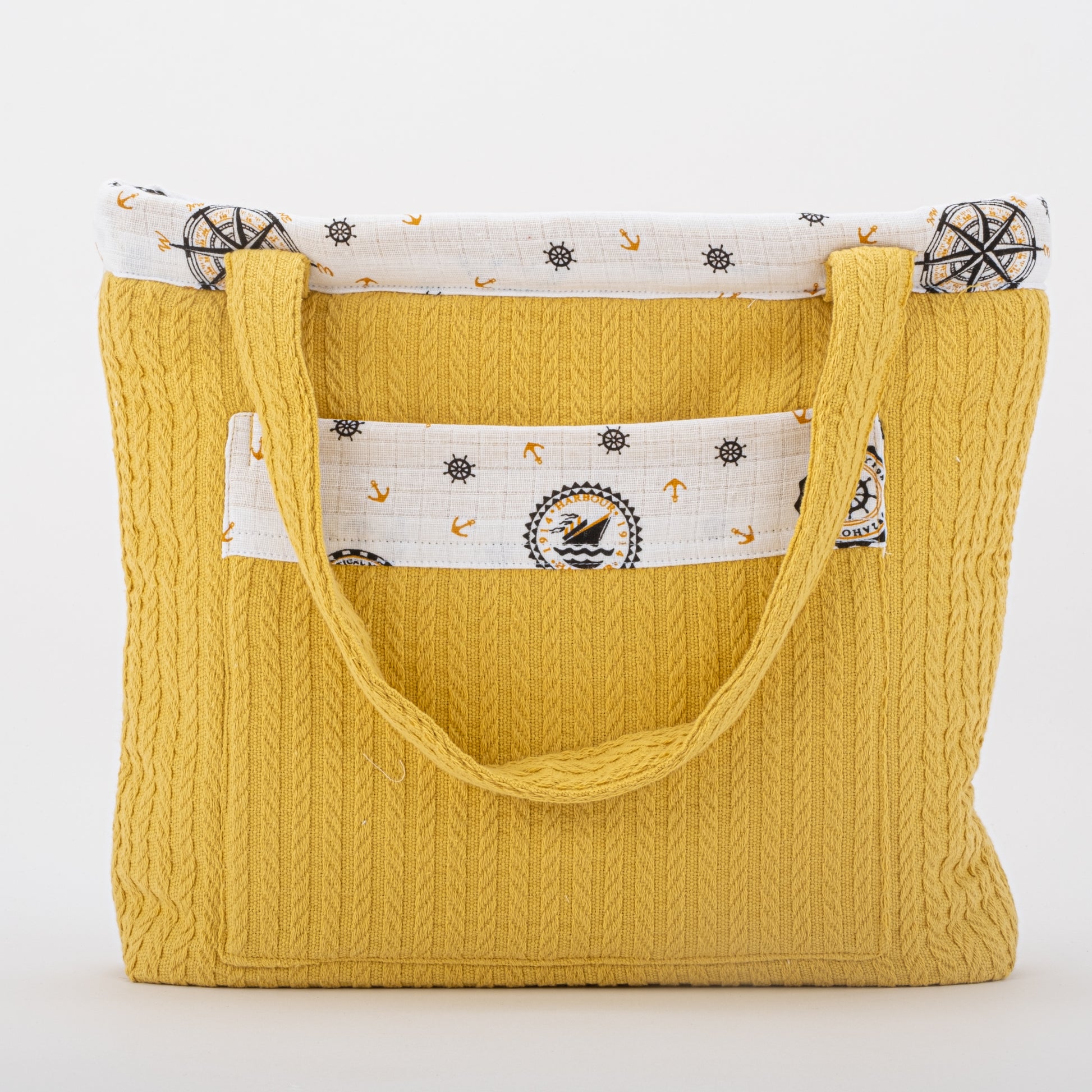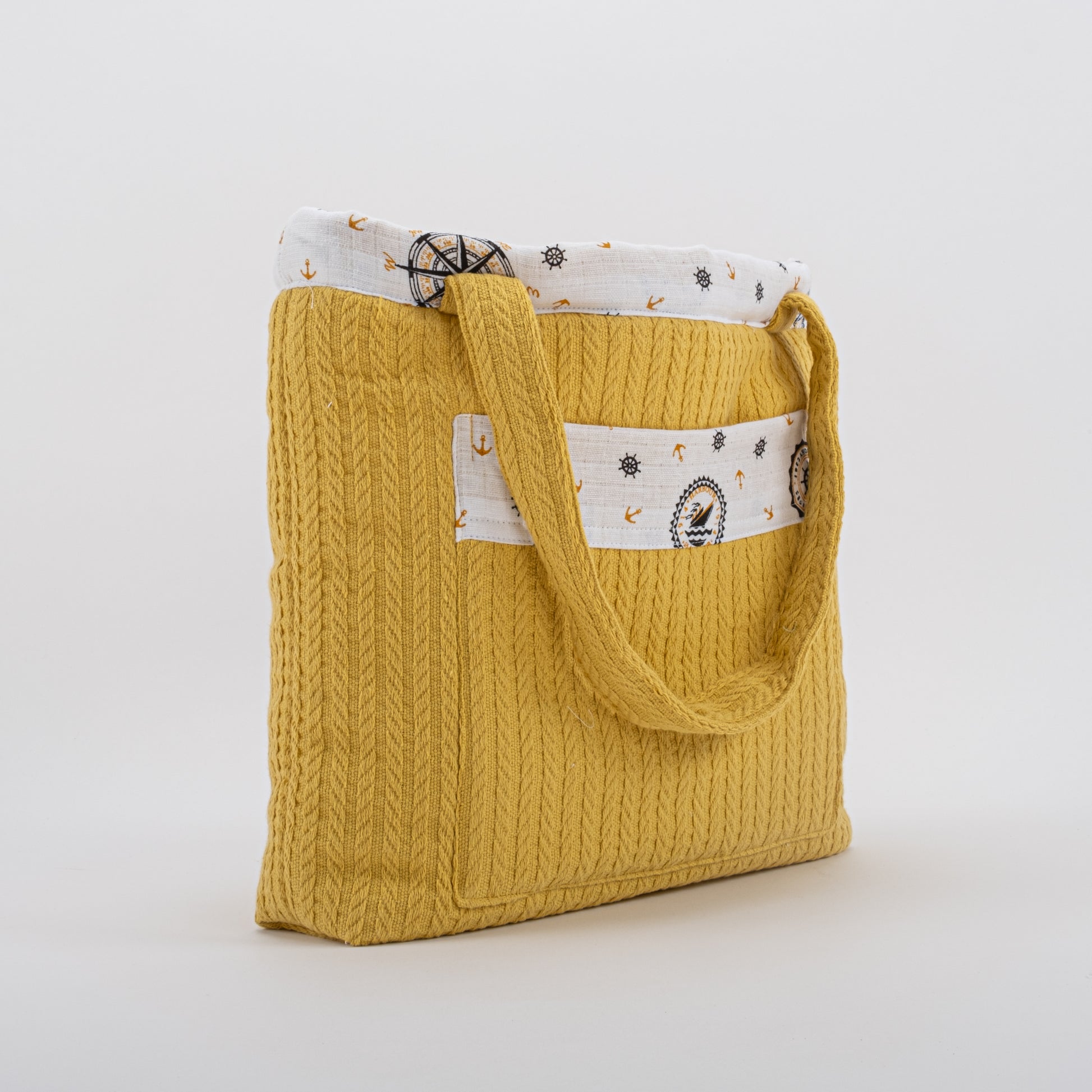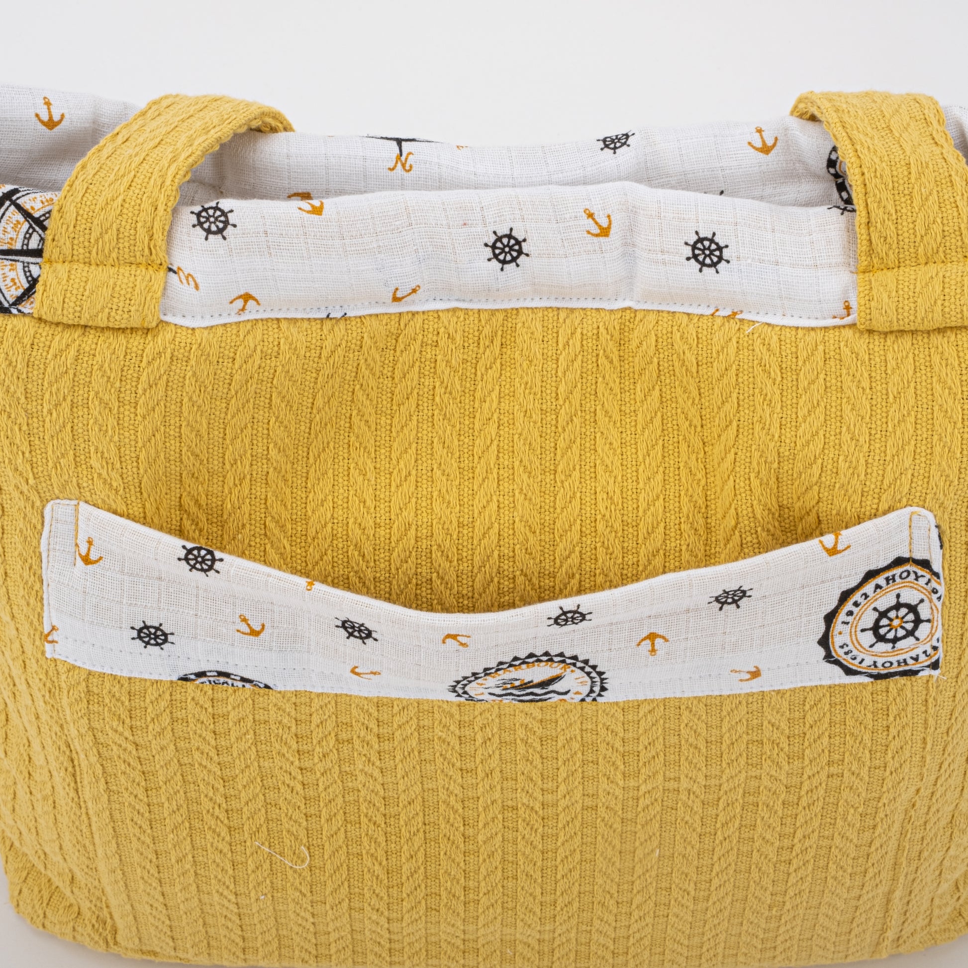 Bebek Bakım Çantası - Hardal Örgü - Sarı Gemili