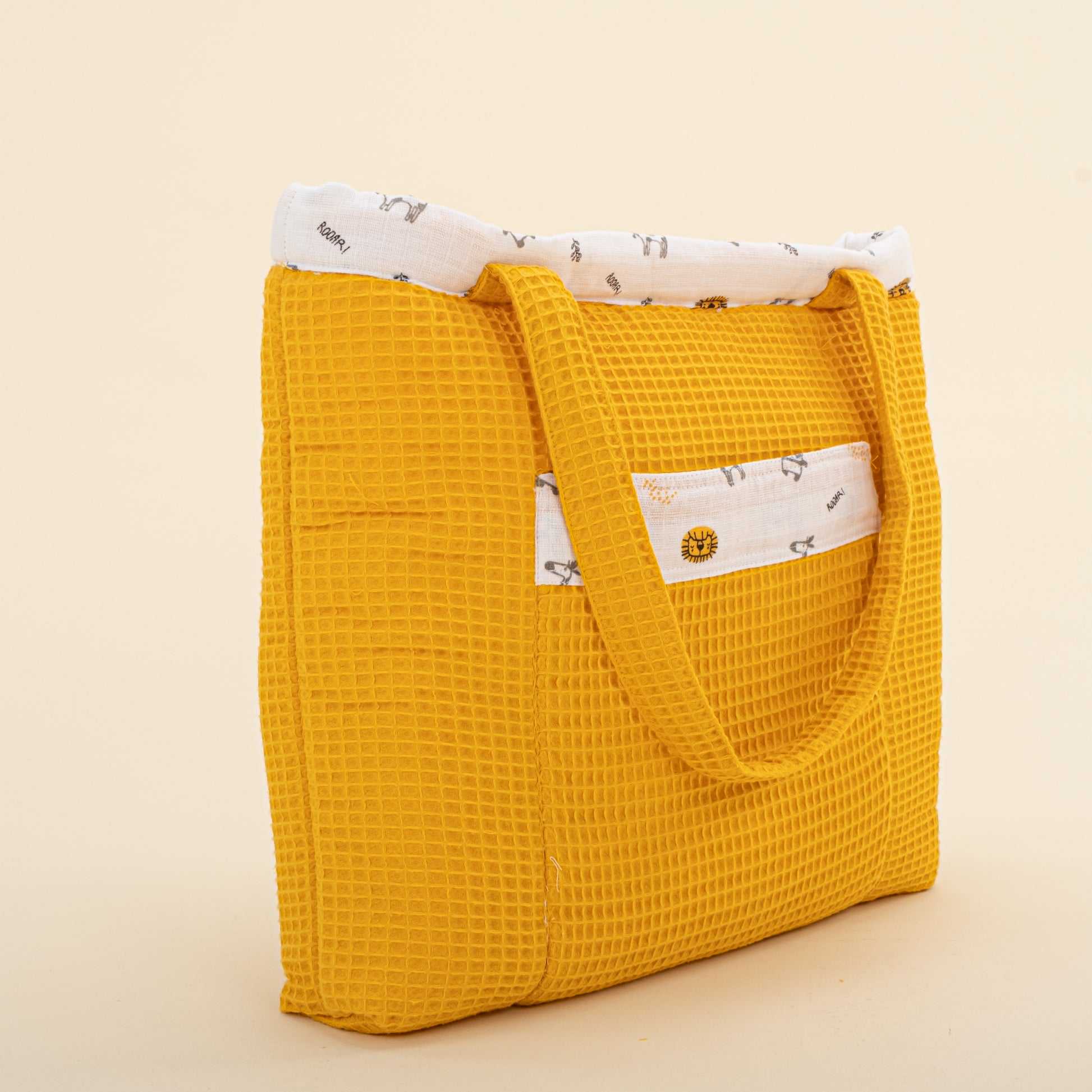 bebek bezi, yedek giysi, ıslak mendil, emzik vb. eşyalarınızı doğal dokulu müslin çantalarımızda taşıyabilirsiniz.