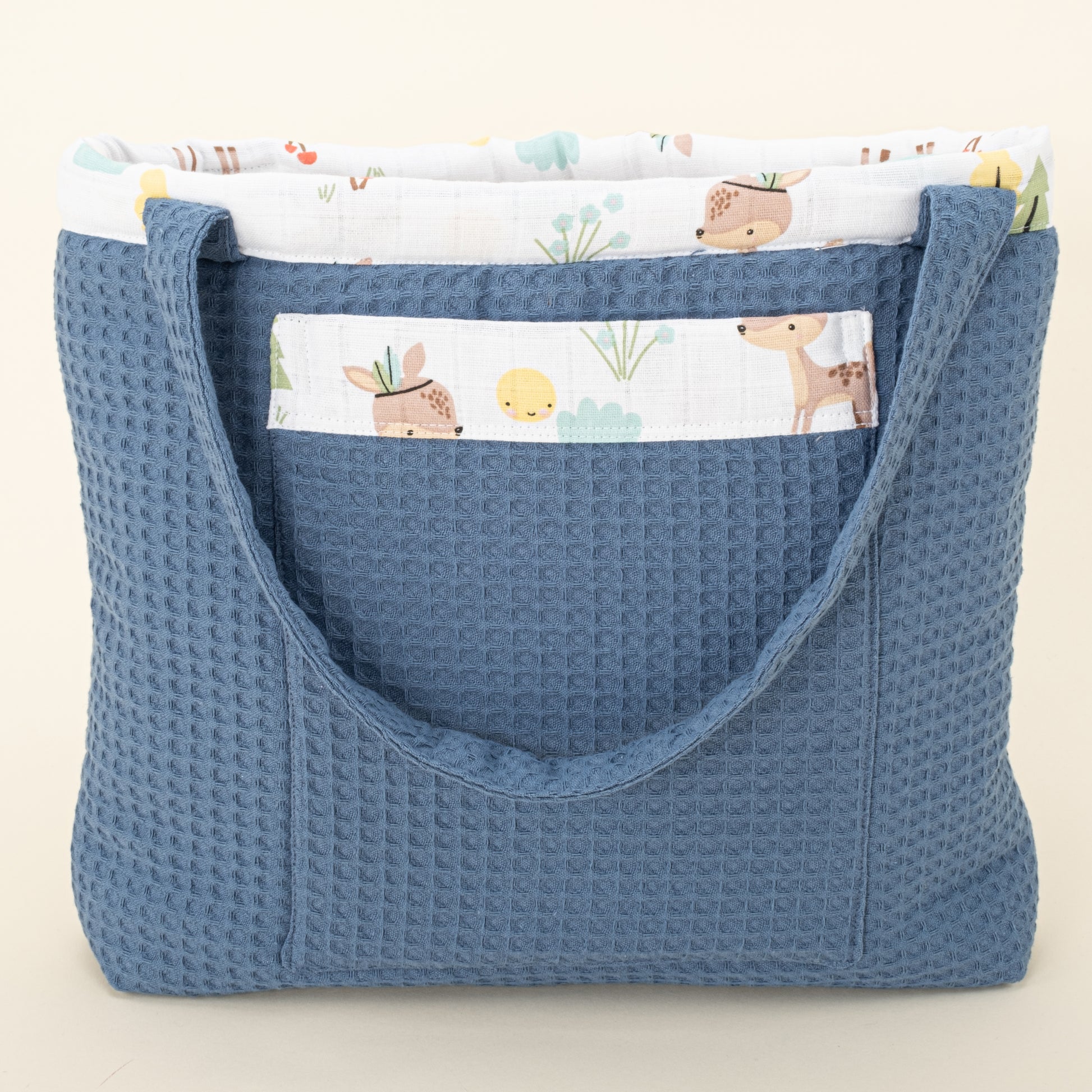 bebek bezi, yedek giysi, ıslak mendil, emzik vb. eşyalarınızı doğal dokulu müslin çantalarımızda taşıyabilirsiniz.