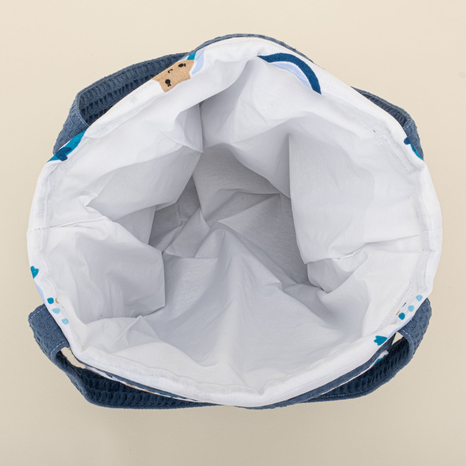 bebek bezi, yedek giysi, ıslak mendil, emzik vb. eşyalarınızı doğal dokulu müslin çantalarımızda taşıyabilirsiniz.