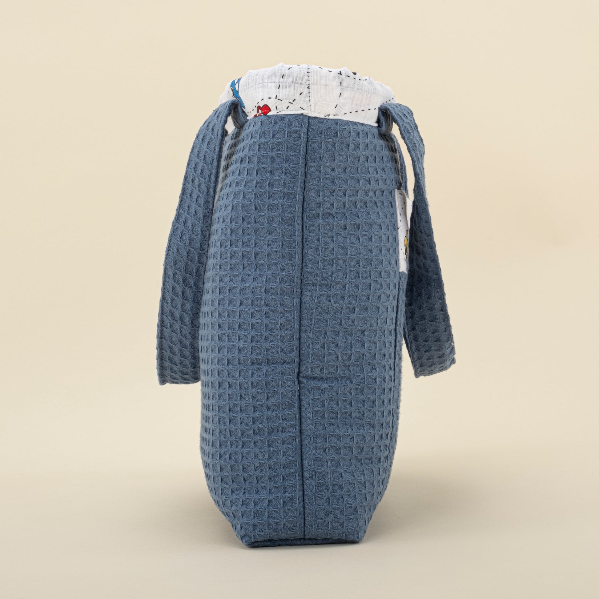bebek bezi, yedek giysi, ıslak mendil, emzik vb. eşyalarınızı doğal dokulu müslin çantalarımızda taşıyabilirsiniz.
