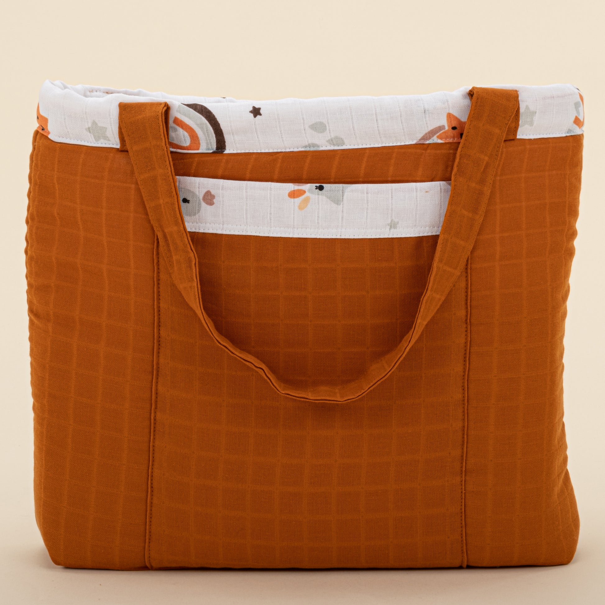 Bebek Bakım Çantası - Kiremit Müslin - Turuncu Gökkuşağı