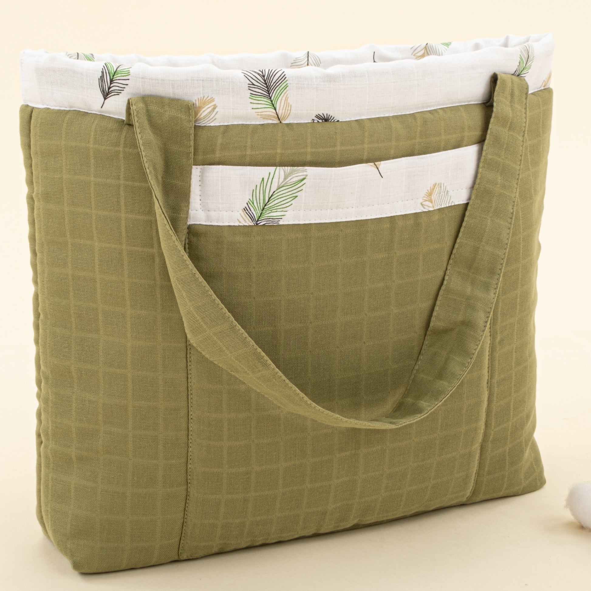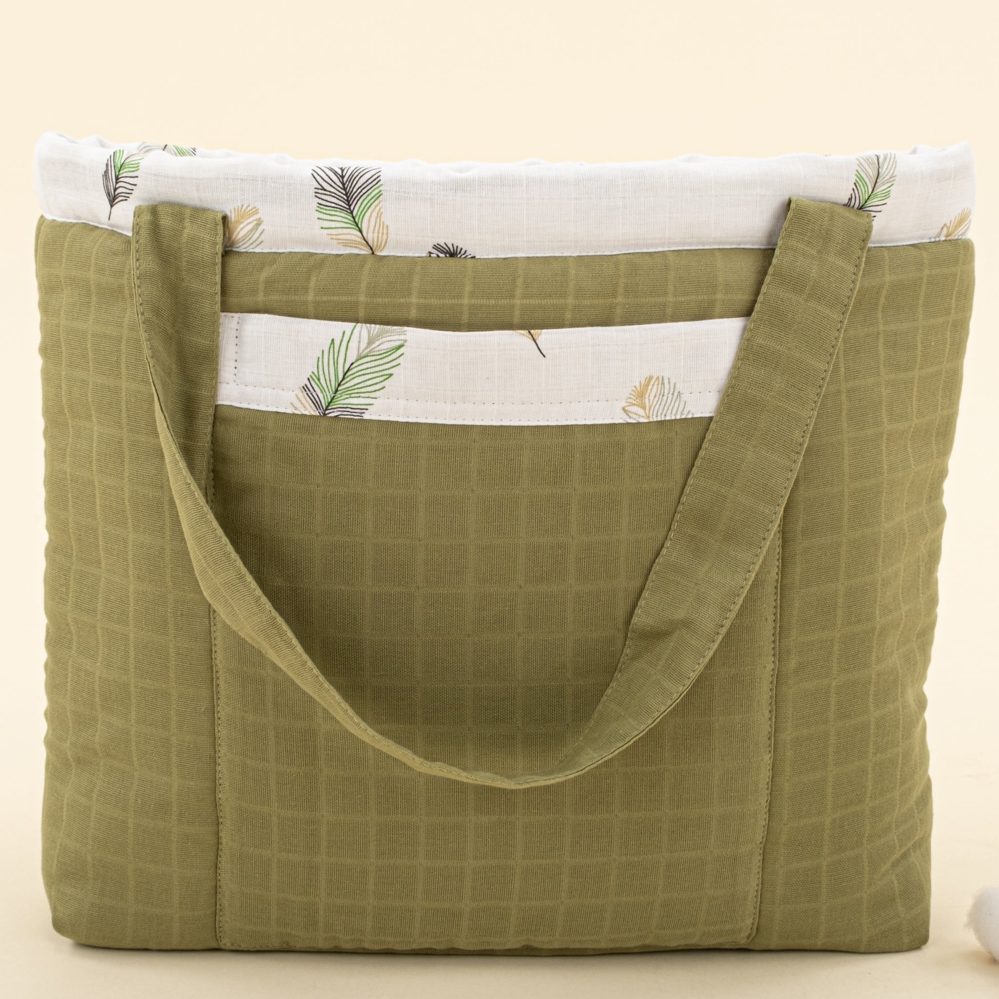Bebek Bakım Çantası - Koyu Fıstık Yeşili Muslin - Yeşil Tüy