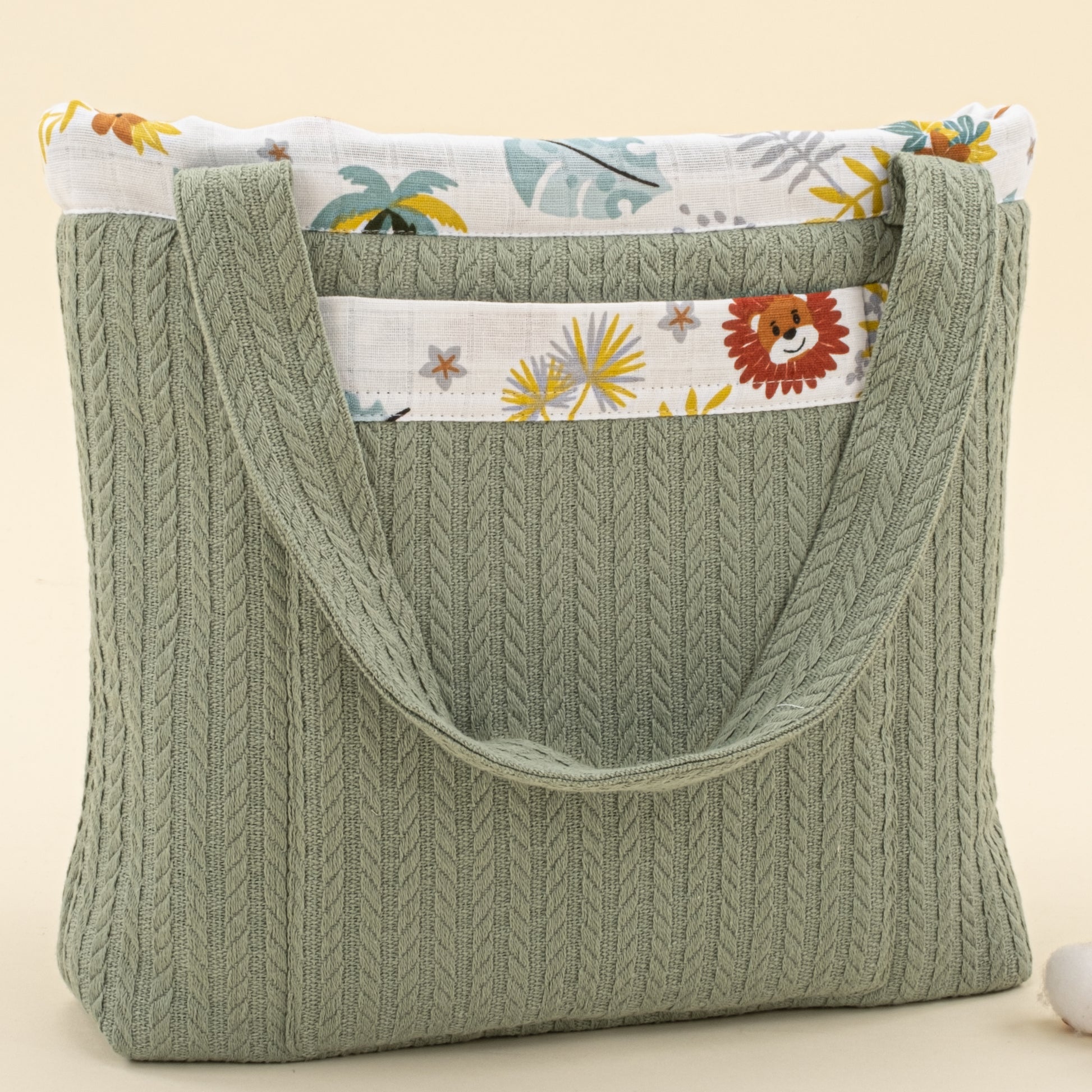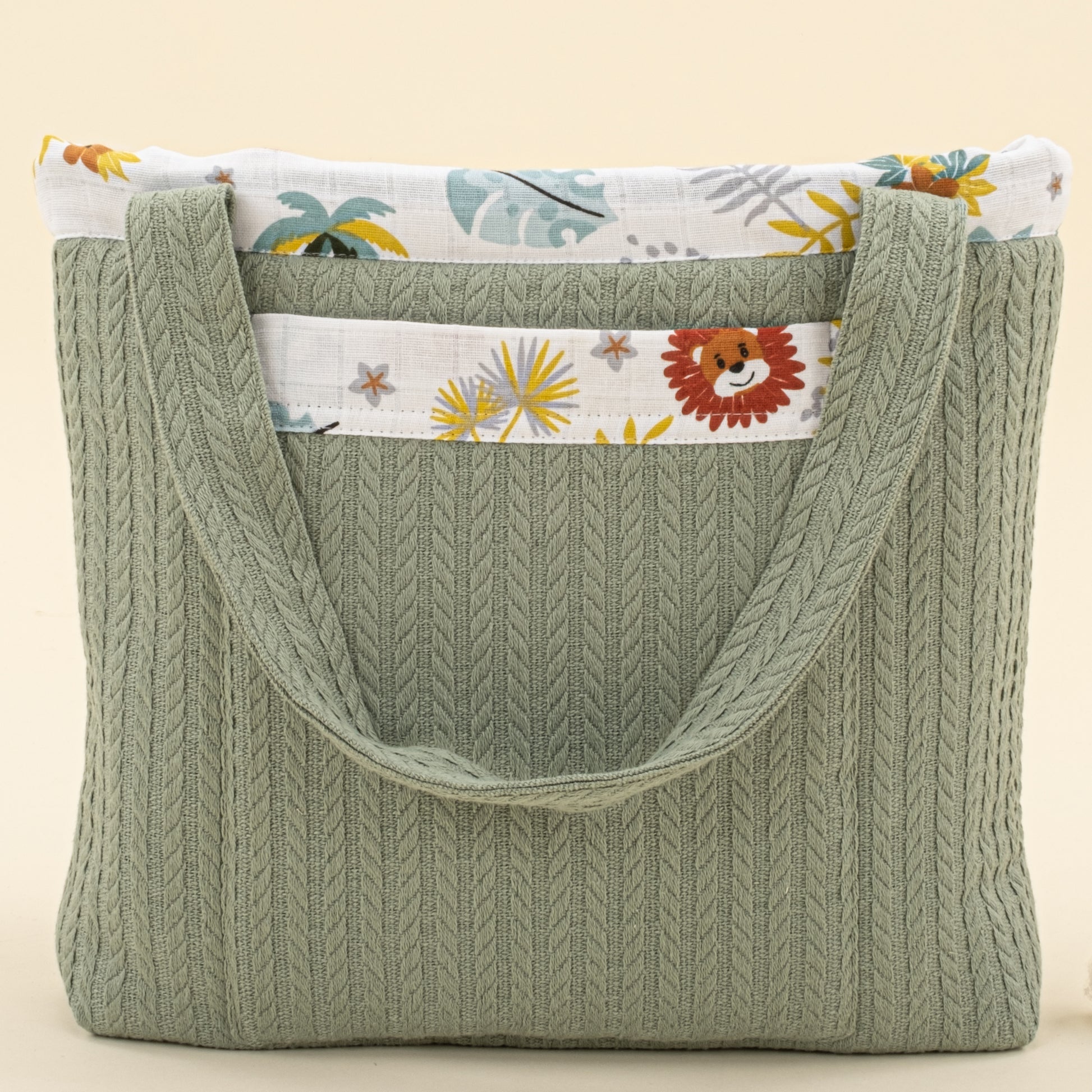 Bebek Bakım Çantası - Koyu Yeşil Örgü - Hayvanat Bahçesi