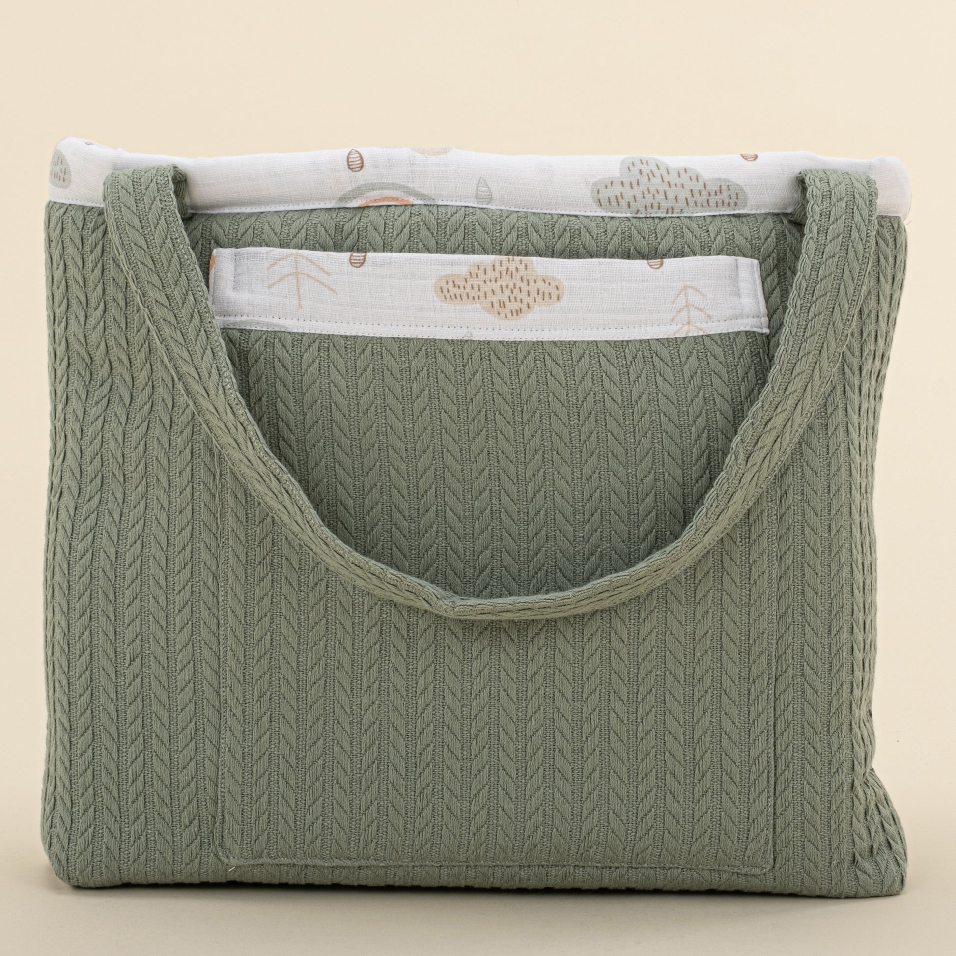 Bebek Bakım Çantası - Koyu Yeşil Örgü - Yeşil Gökkuşağı