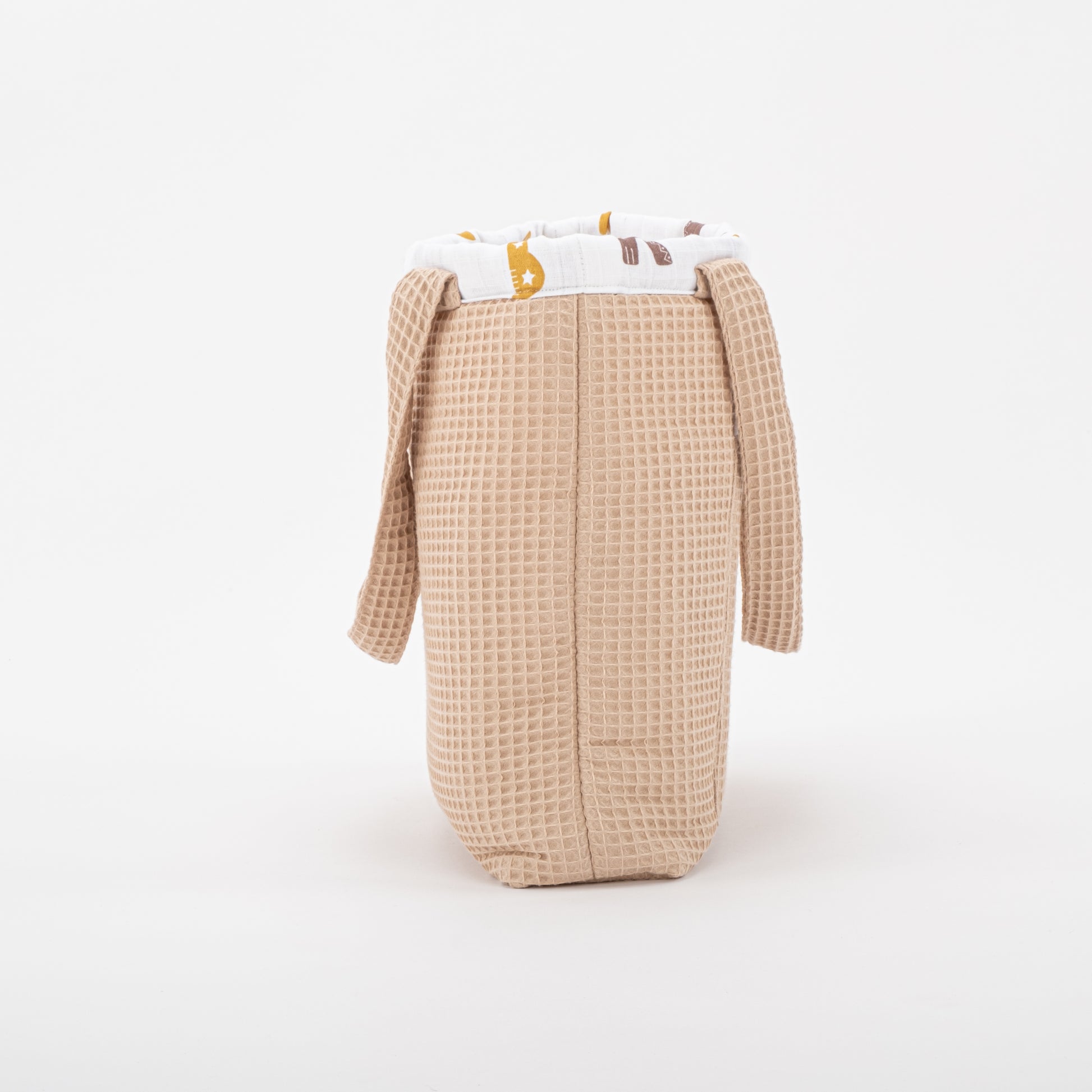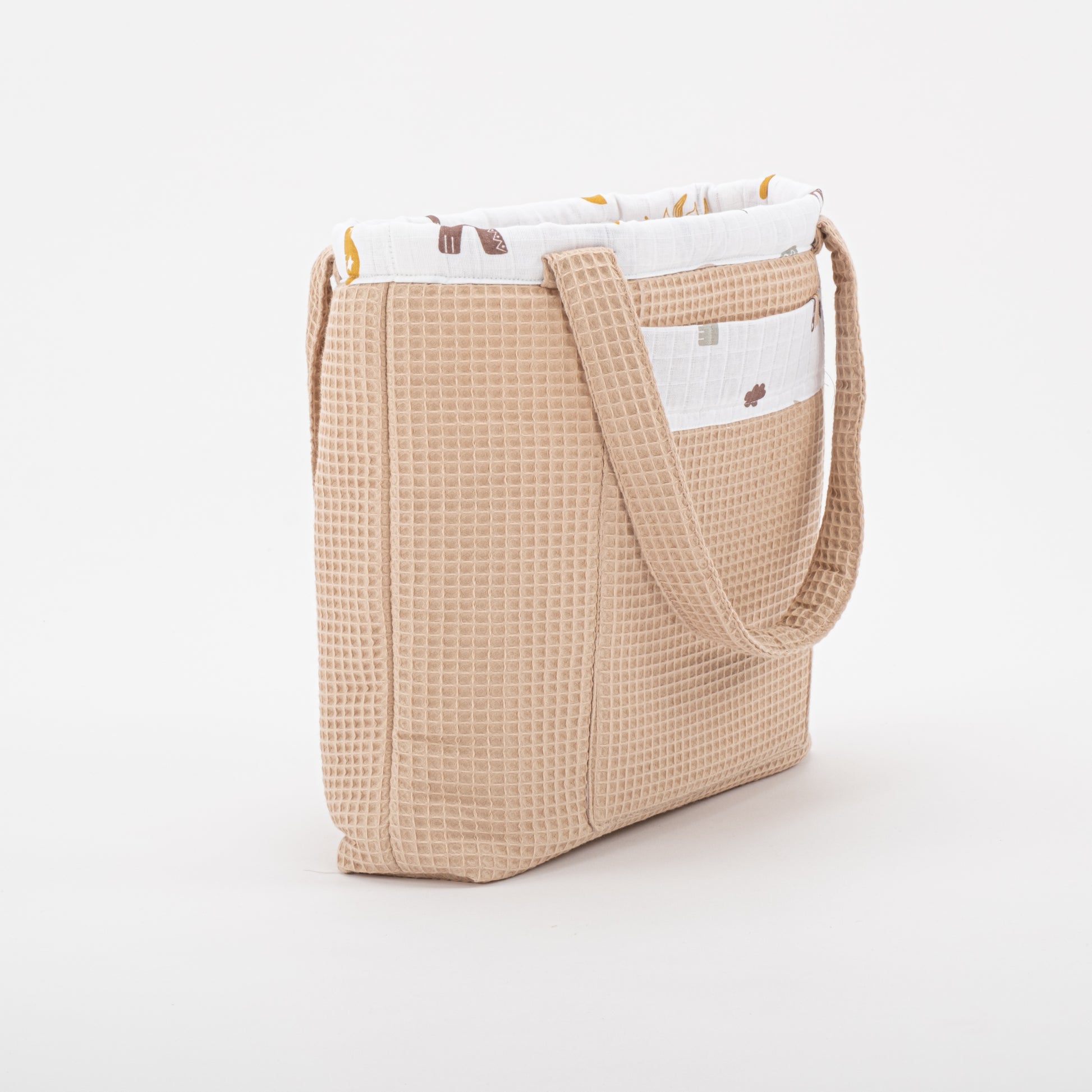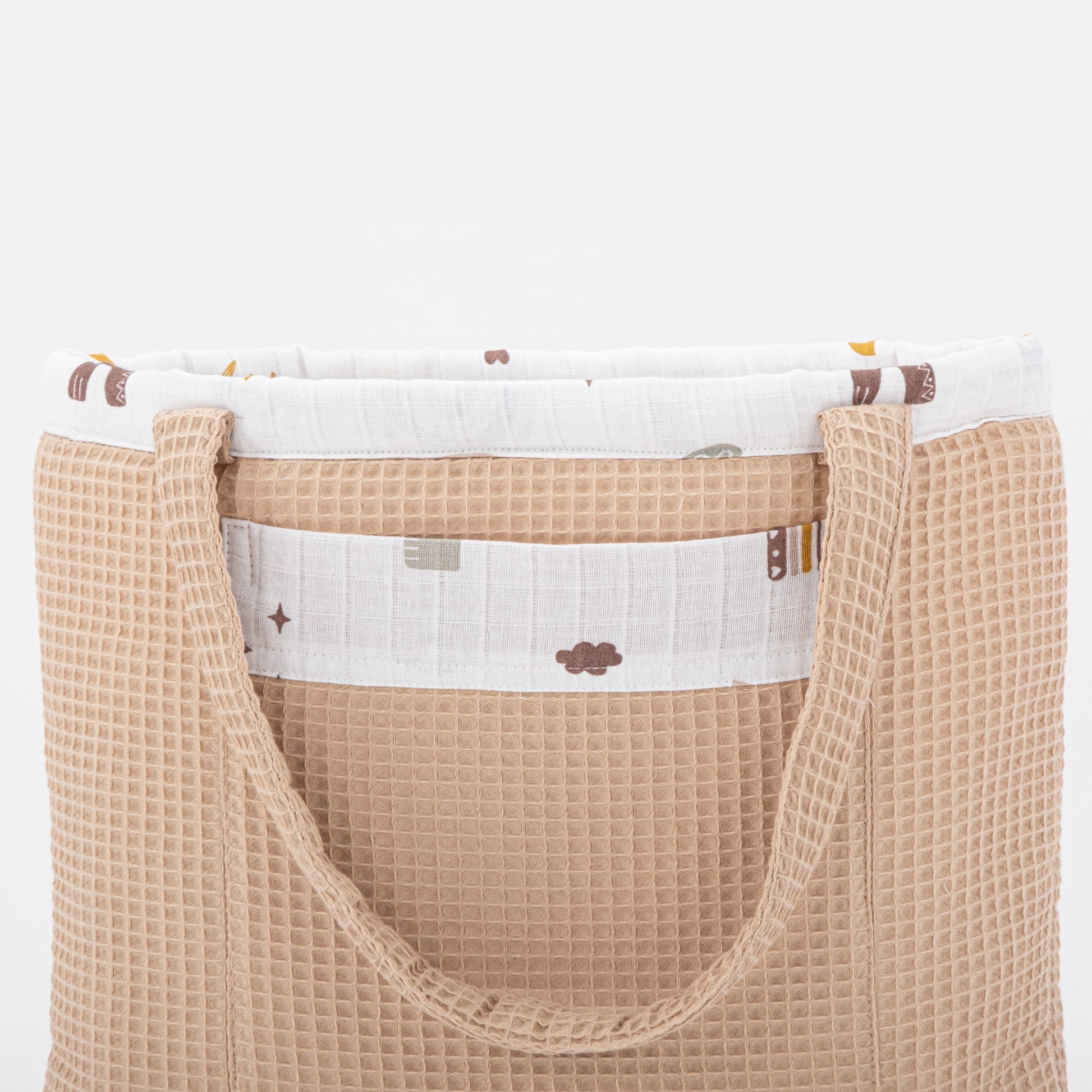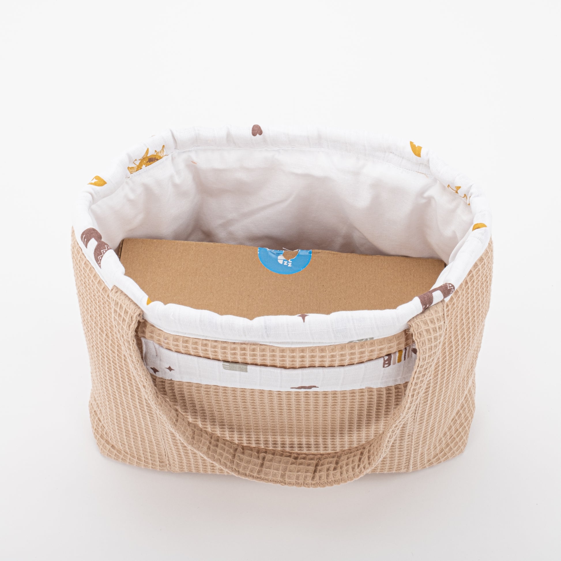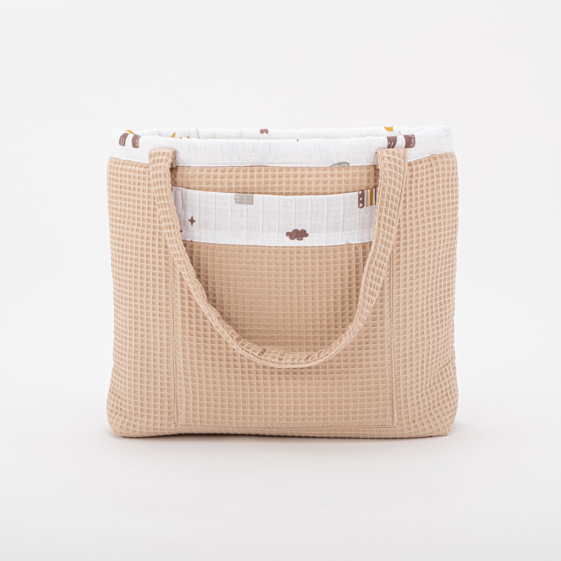 bebek bezi, yedek giysi, ıslak mendil, emzik vb. eşyalarınızı doğal dokulu müslin çantalarımızda taşıyabilirsiniz.