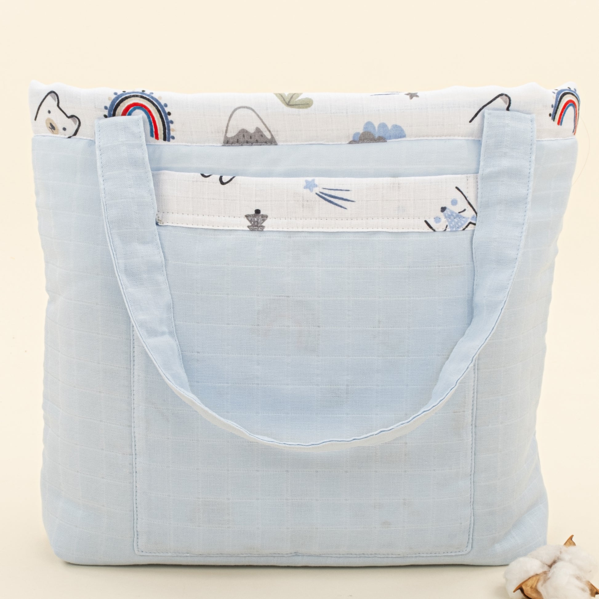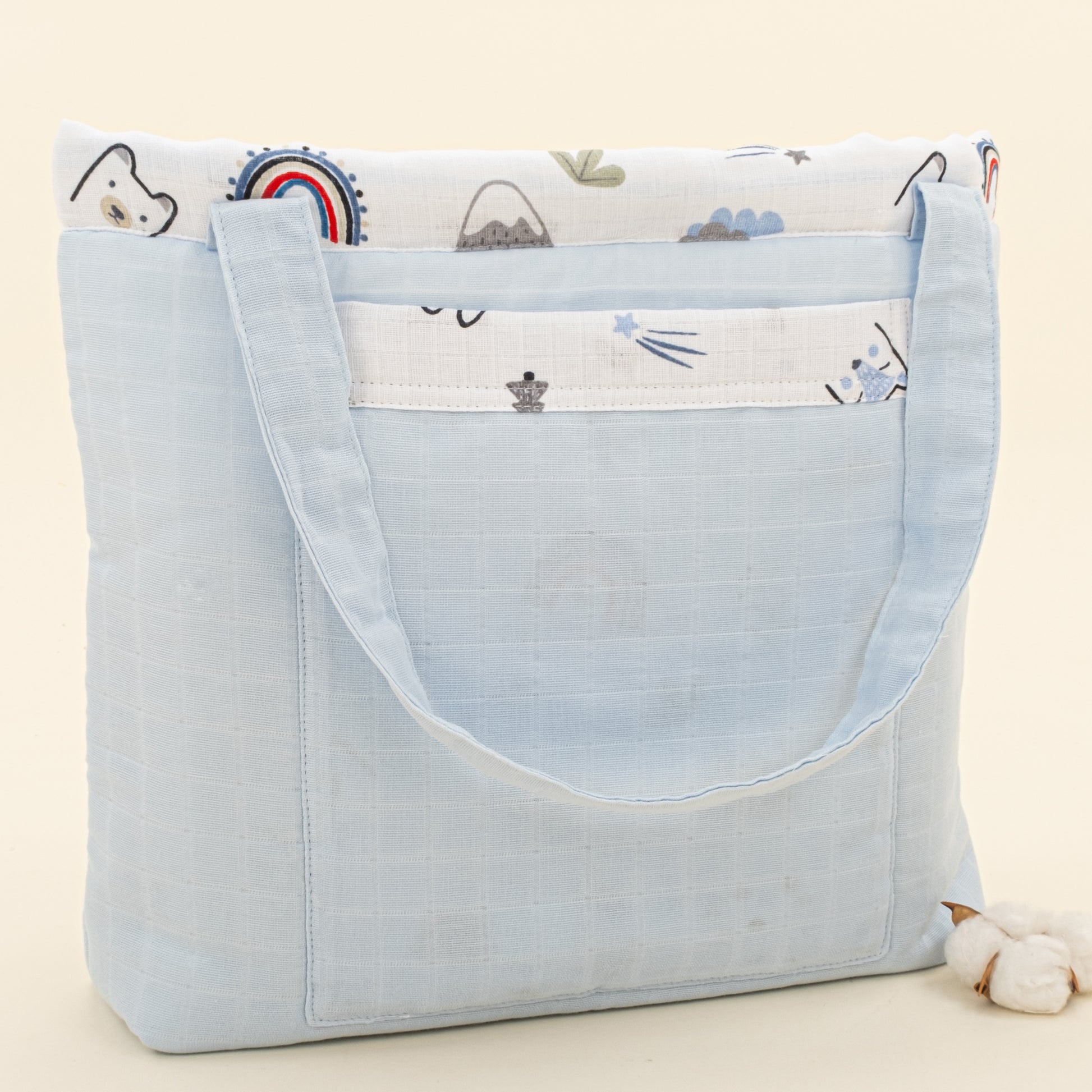 Bebek Bakım Çantası - Mavi Muslin - Mavi Kedi
